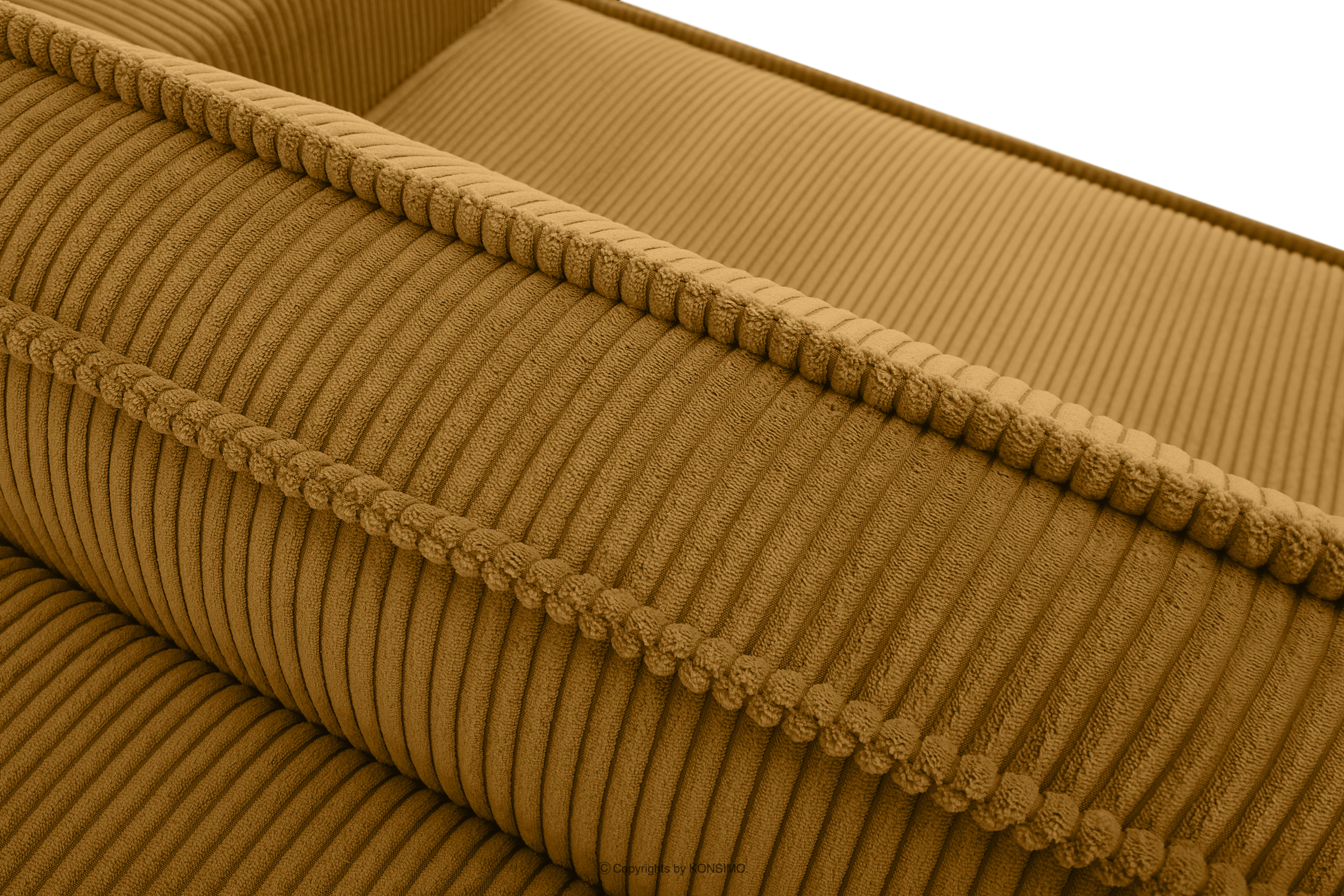 Das 3-Falt-Sofa Kordstoff gelb ist ein Möbelstück im modernistischen Stil. Mit seinen charakteristischen breiten Seiten hebt es sich von der Masse der Standardmöbel ab. Aber das ist nur der Anfang seiner außergewöhnlichen Möglichkeiten. Die Kissen der Rückenlehne stützen Ihren Rücken ideal und sehen dank ihrer Größe auch noch gut aus. Die gesamte Polsterung dieses außergewöhnlichen Möbelstücks besteht aus Kordstoff, der sich nicht nur angenehm anfühlt, sondern auch lange Zeit sein makelloses Aussehen bewahrt.