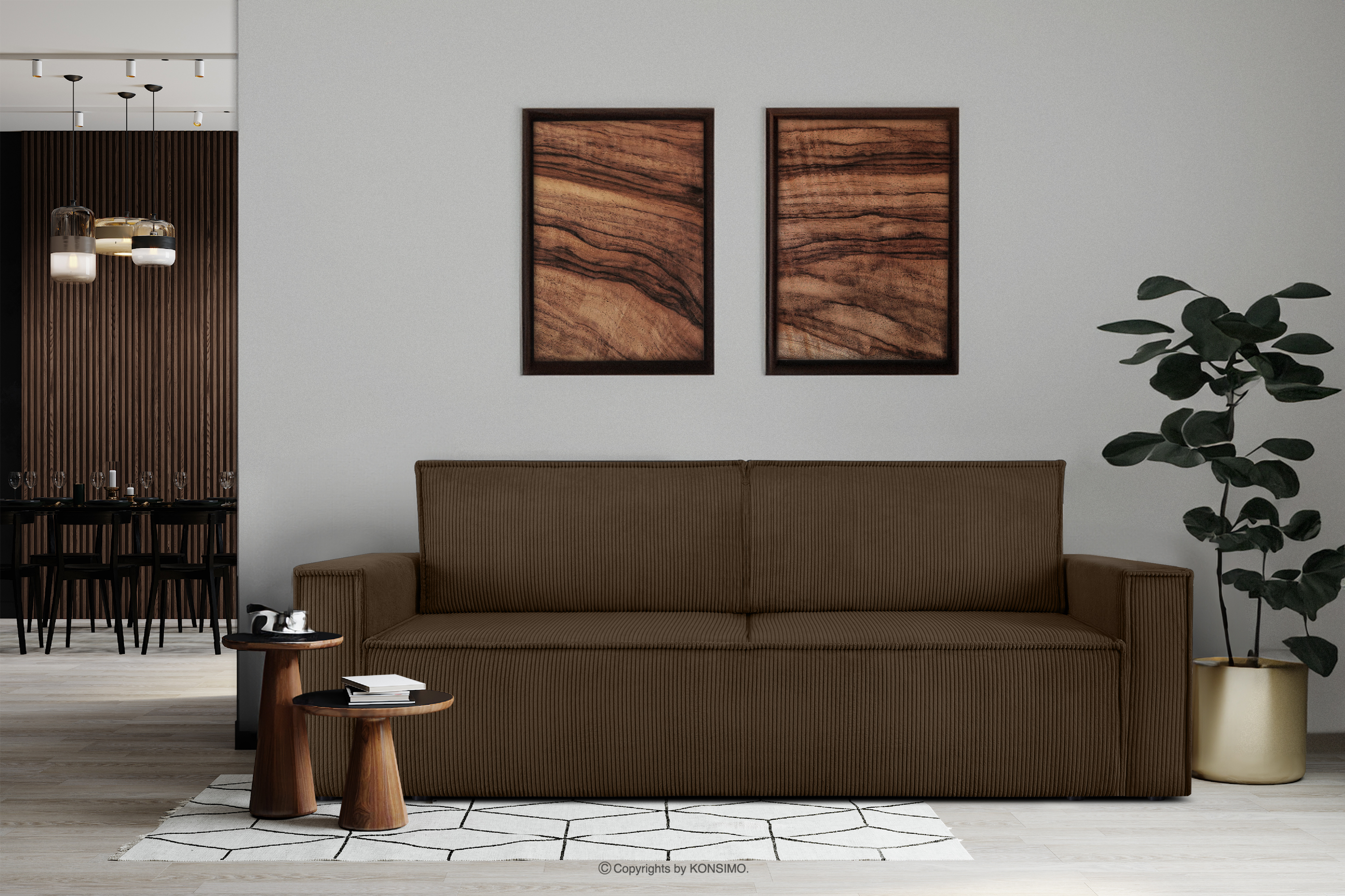 NAPI Mehr aus der Kollektion Dreisitzer-Kordstoffsofa ausklappbar mit Schlaffunktion in dunkelbraun- Farbe Dunkelbraun