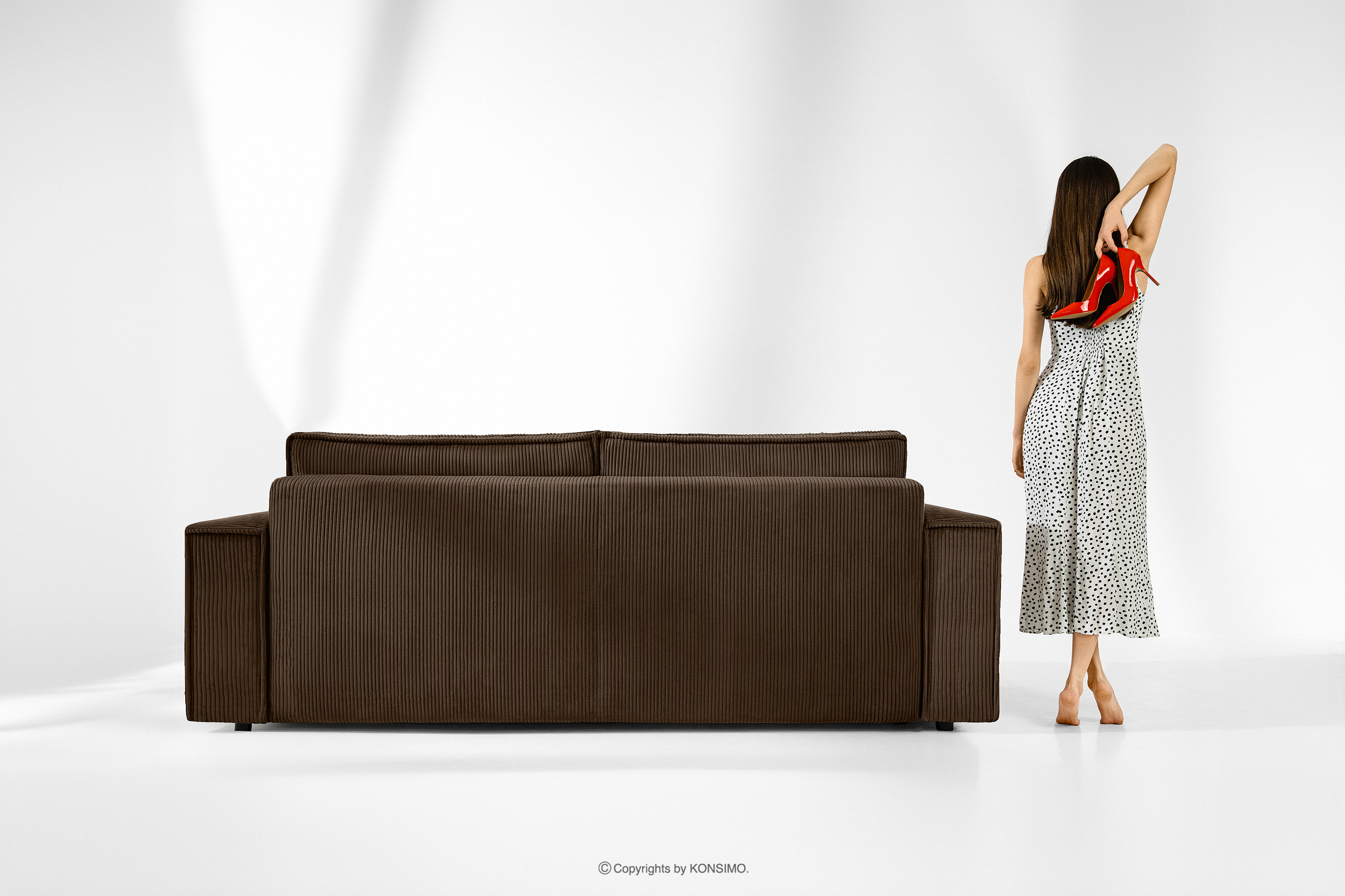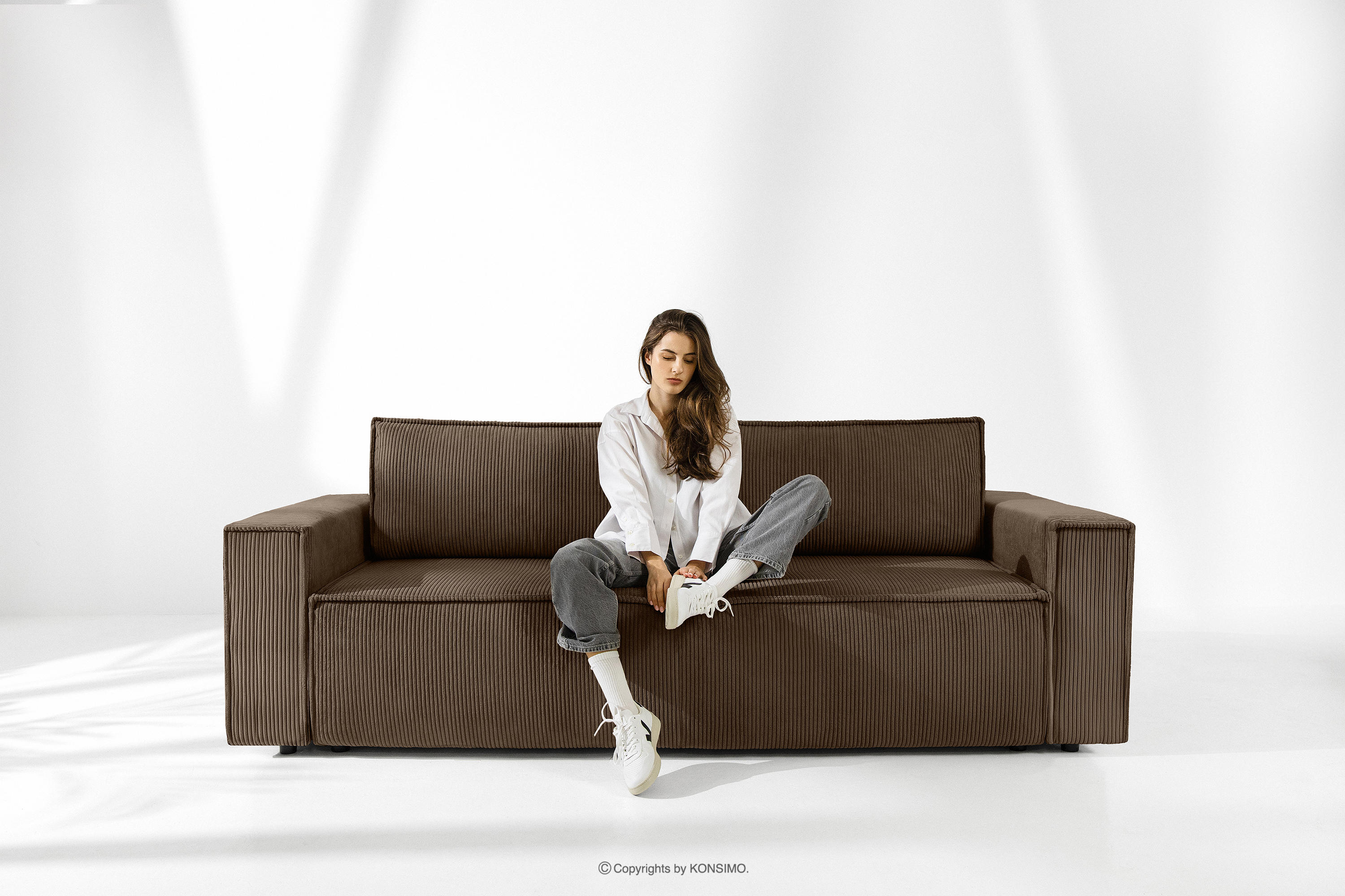 Sofa 3 Schlafsofa Kordstoff dunkelbraun ist ein Möbelstück im modernistischen Stil. Mit seinen charakteristischen breiten Seiten hebt es sich von der Masse der Standardmöbel ab. Aber das ist nur der Anfang seiner außergewöhnlichen Möglichkeiten. Die Kissen der Rückenlehne sind die perfekte Stütze für Ihren Rücken und sehen dank ihrer Größe auch noch gut aus.
