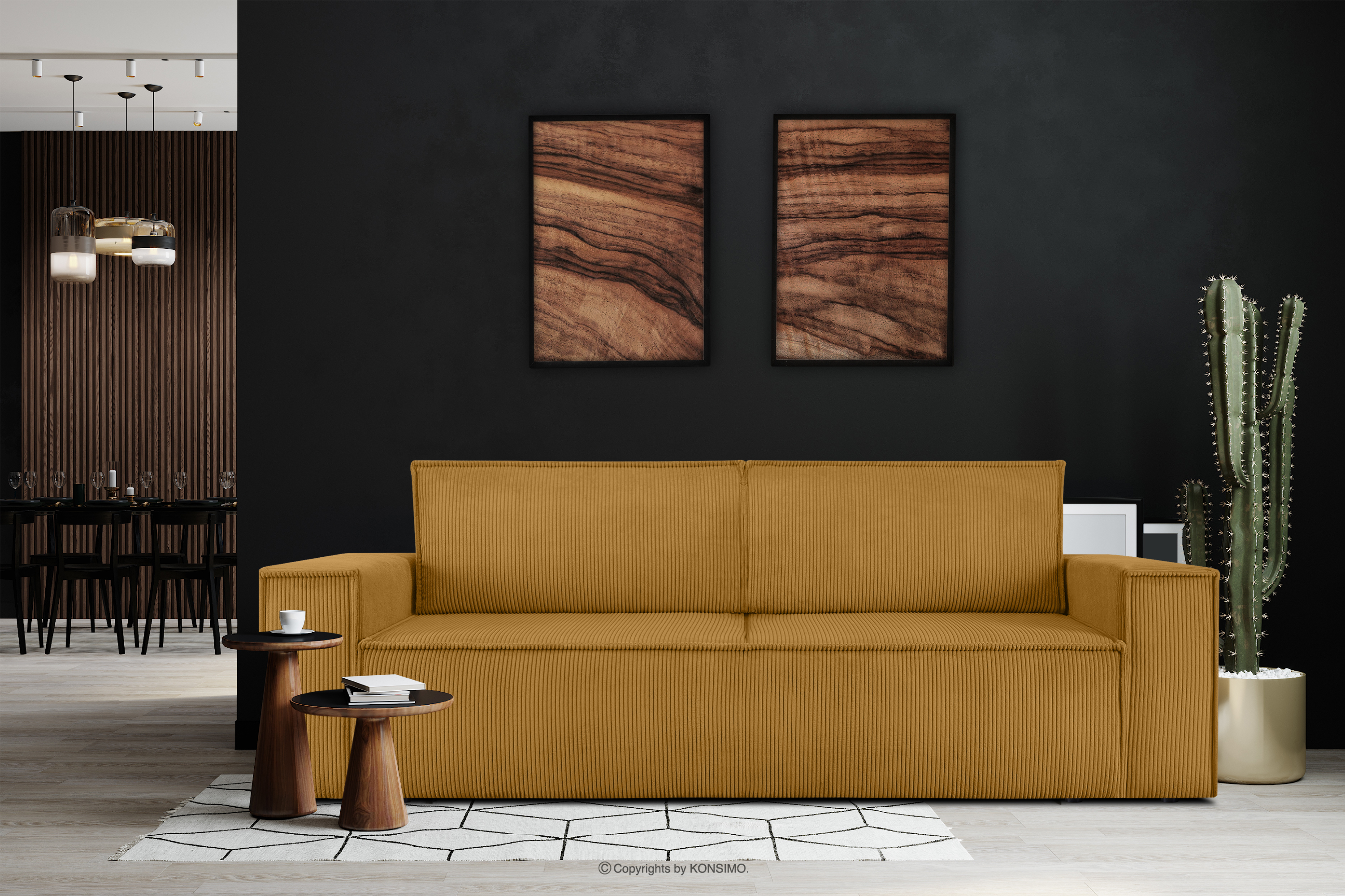 Die gesamte Polsterung dieses außergewöhnlichen Möbelstücks besteht aus Kordstoff, der sich nicht nur angenehm anfühlt, sondern auch lange Zeit sein makelloses Aussehen bewahrt. Dieser Stoff ist eine Garantie dafür, dass Ihr NAPI-Sofa immer perfekt aussehen wird.