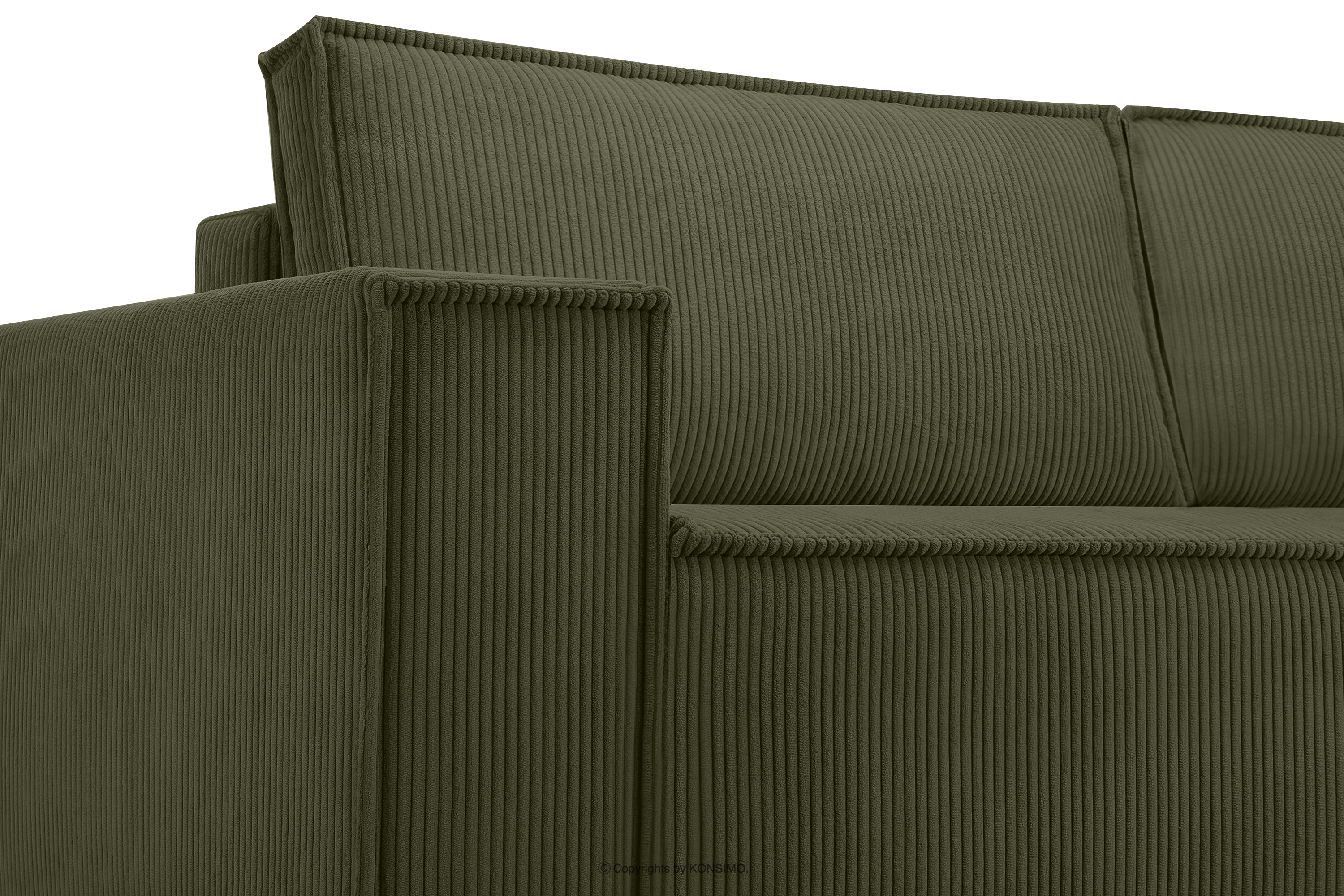 Das 3-Sitzer-Sofa mit Bettkasten oliv ist ein Möbelstück im modernistischen Stil. Mit seinen charakteristischen breiten Seiten hebt es sich von der Masse der Standardmöbel ab. Aber das ist nur der Anfang seiner außergewöhnlichen Möglichkeiten. Die Kissen der Rückenlehne sind die perfekte Stütze für Ihren Rücken und sehen dank ihrer Größe auch noch gut aus.