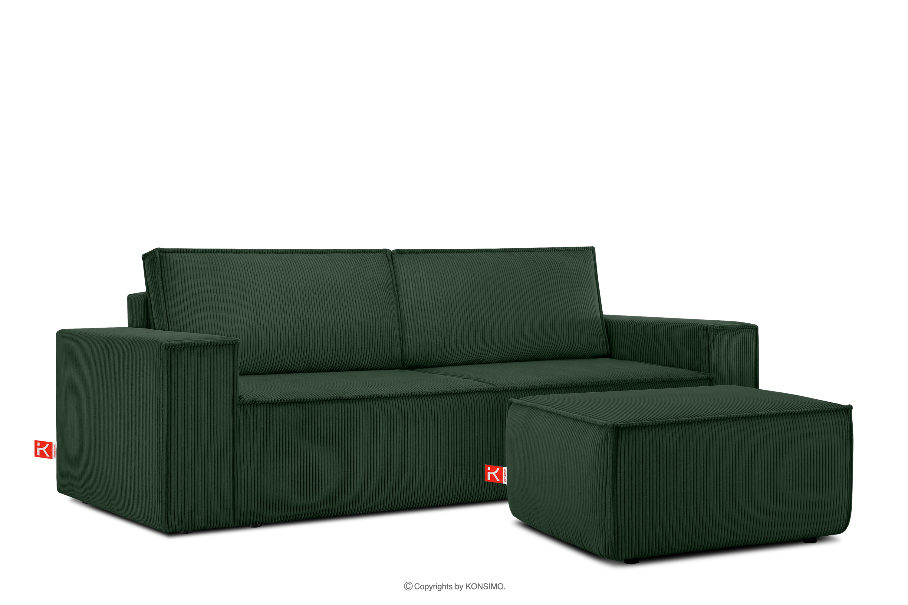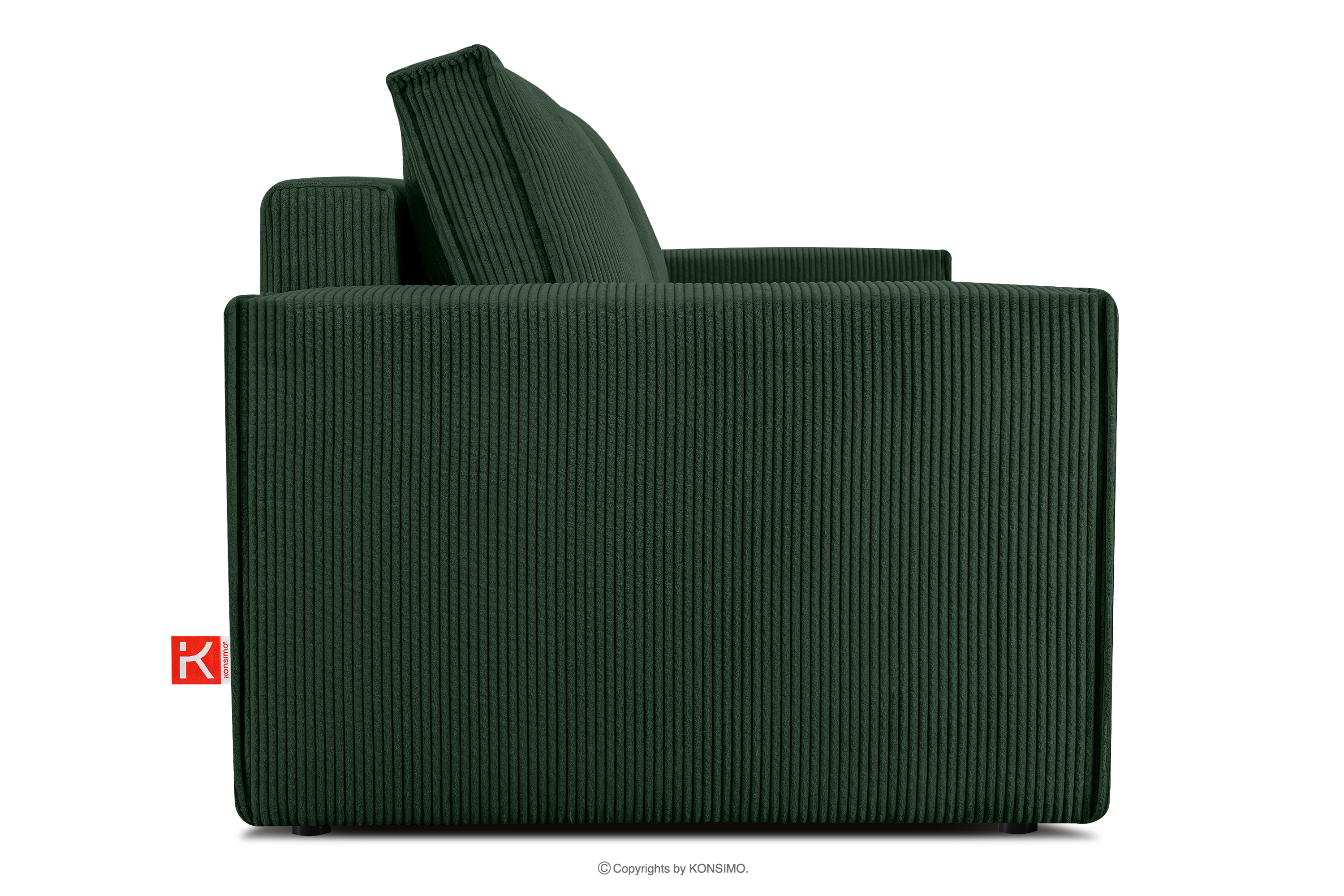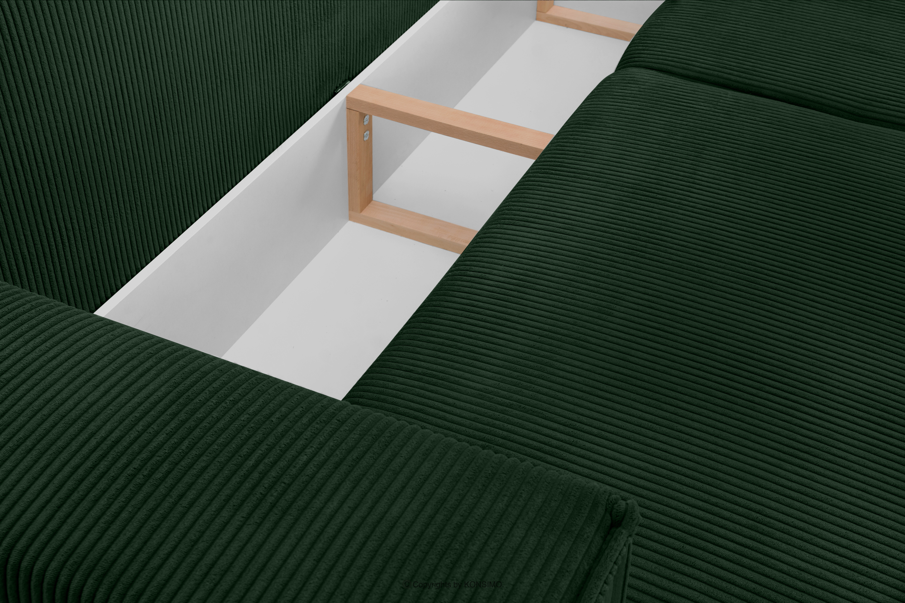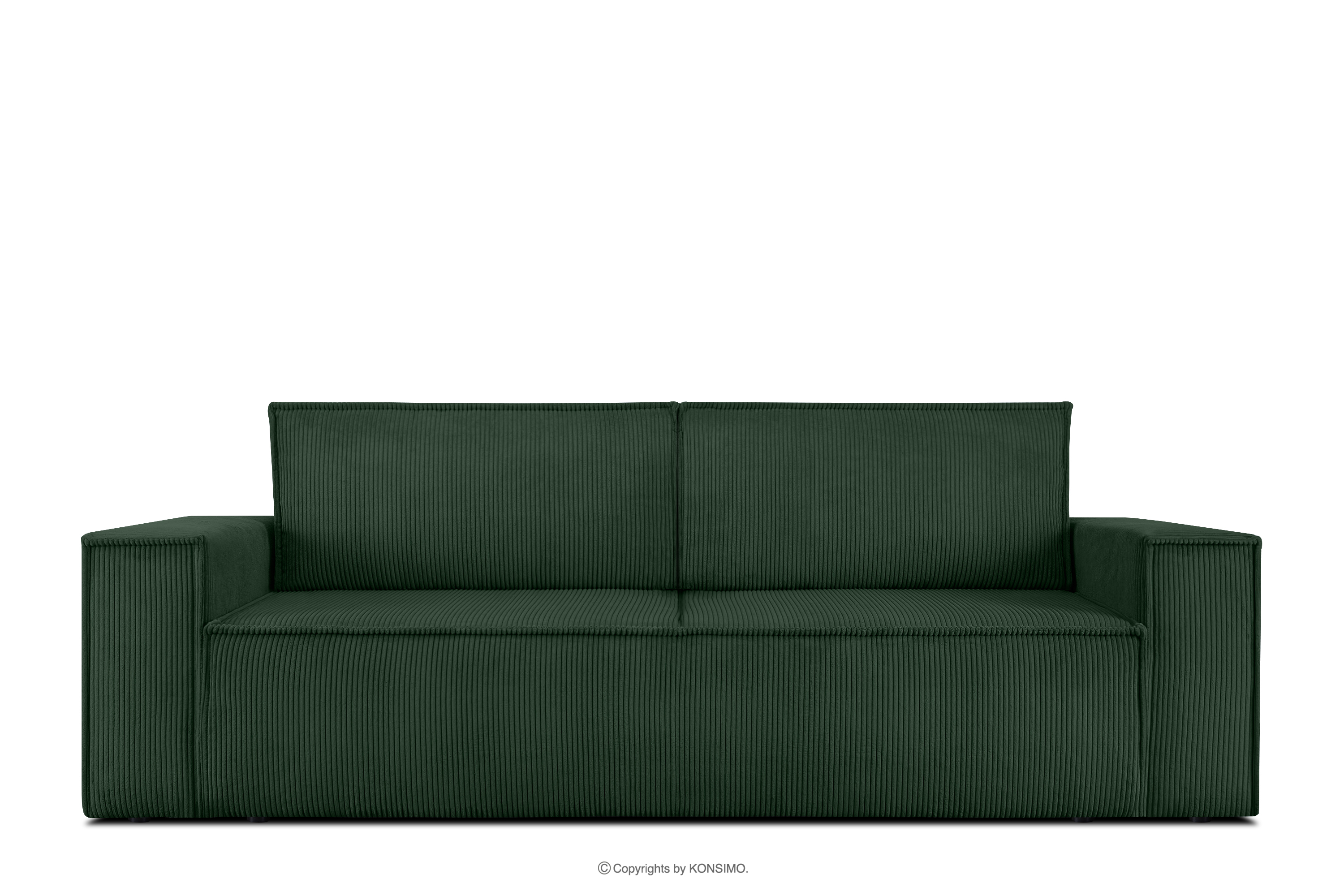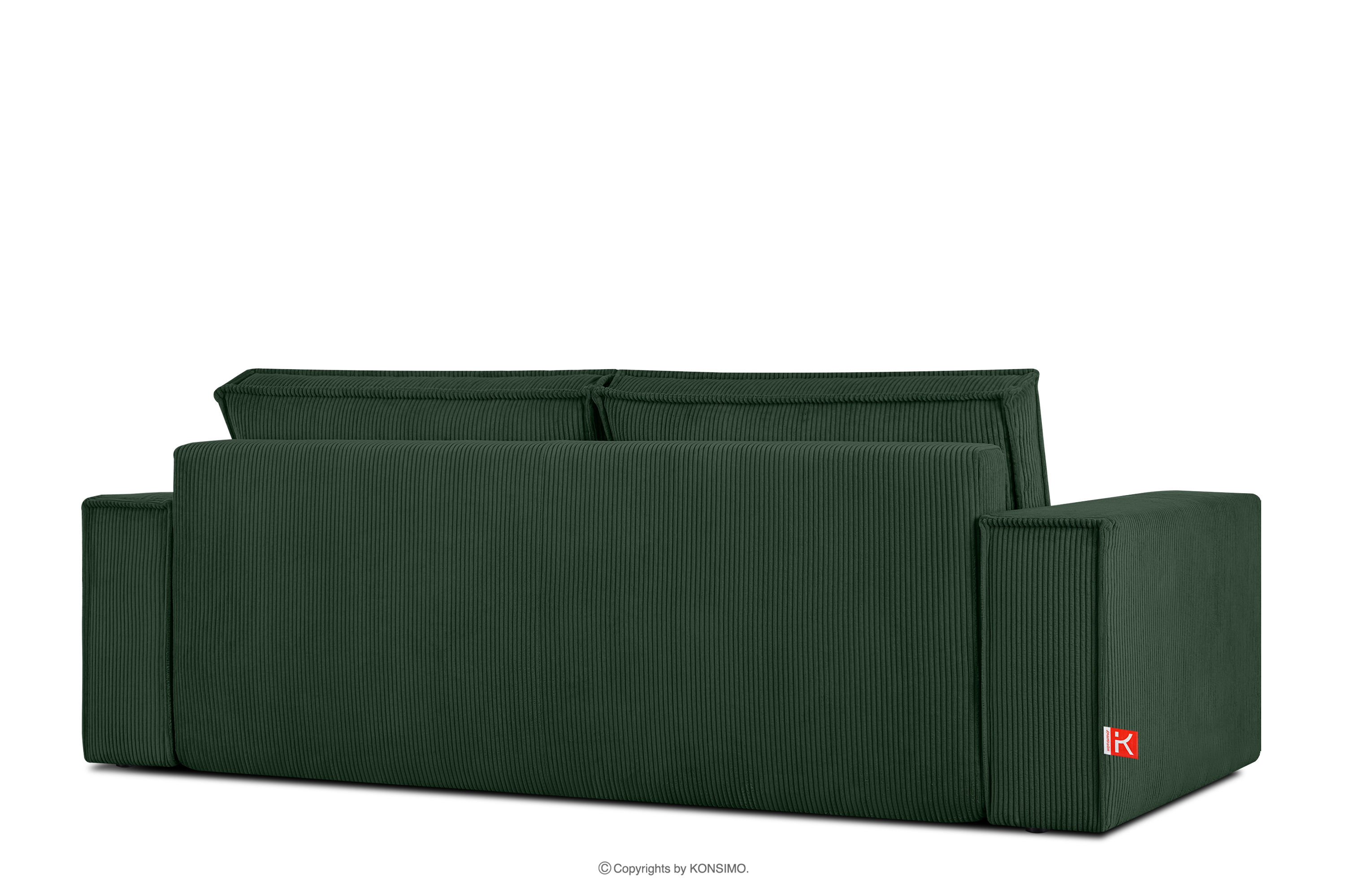 Das 3-Sitzer-Sofa mit Bettkasten in Dunkelgrün ist ein Möbelstück im modernistischen Stil. Mit seinen charakteristischen breiten Seiten hebt es sich von der Masse der Standardmöbel ab. Aber das ist nur der Anfang seiner außergewöhnlichen Möglichkeiten. Die Kissen der Rückenlehne sind die perfekte Stütze für Ihren Rücken und sehen dank ihrer Größe auch noch gut aus.