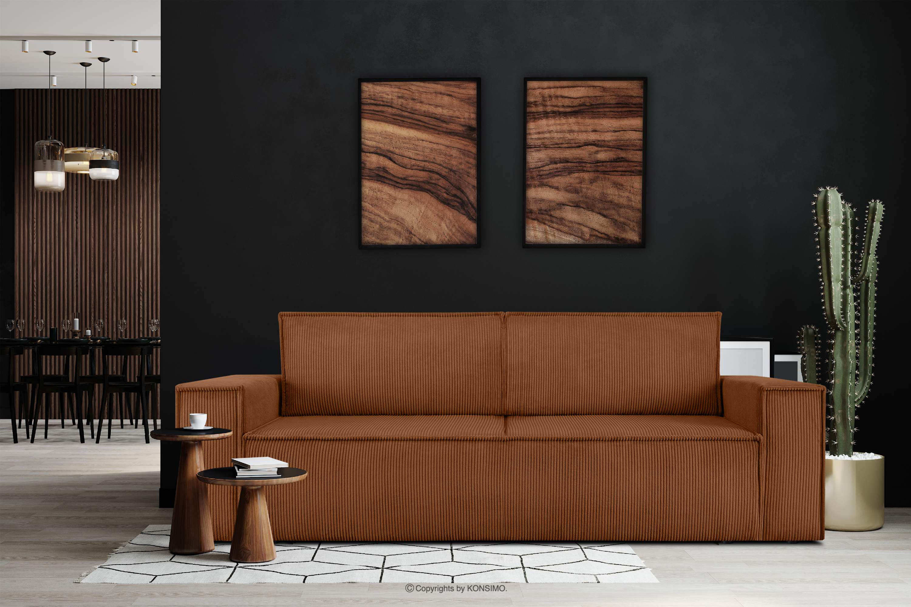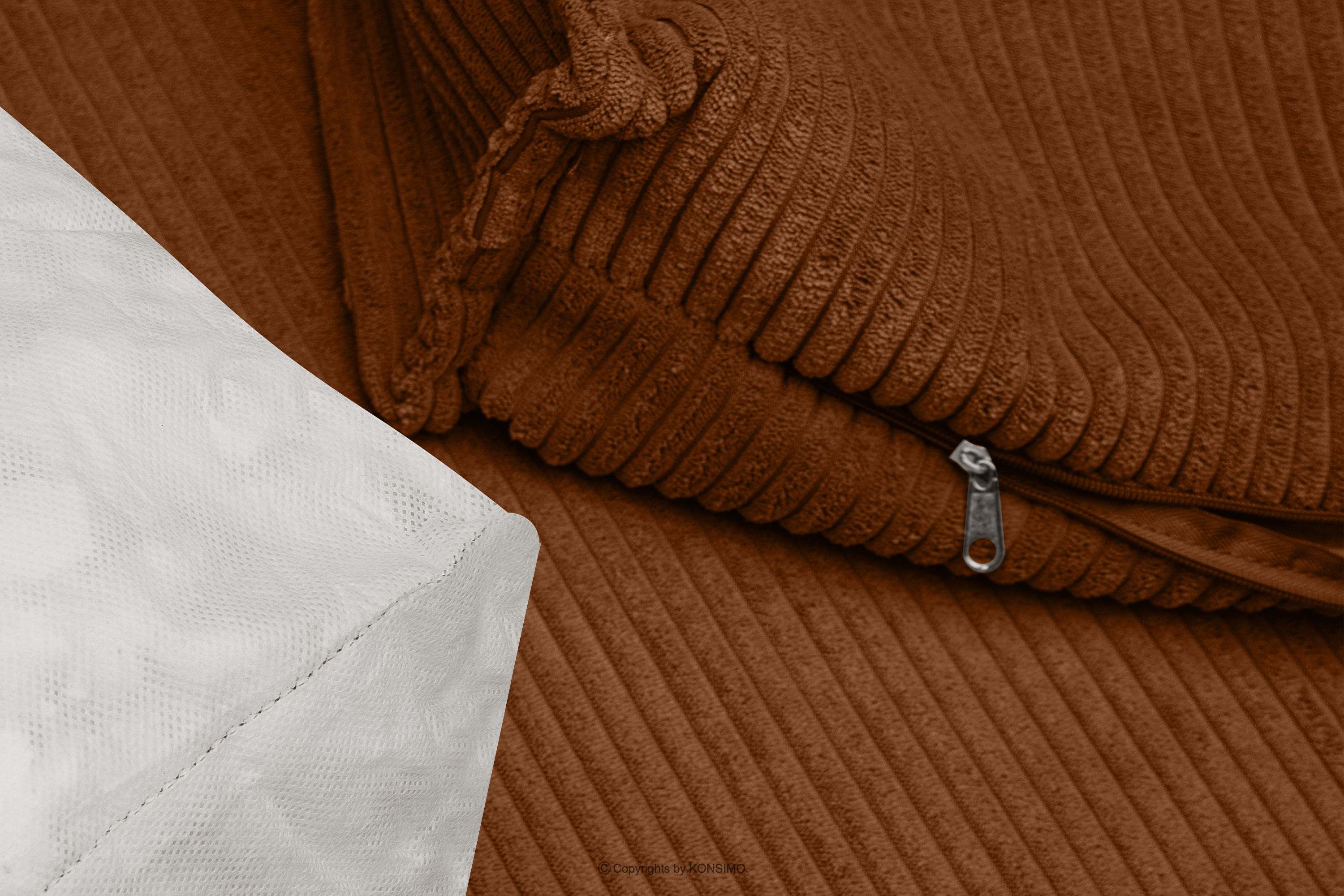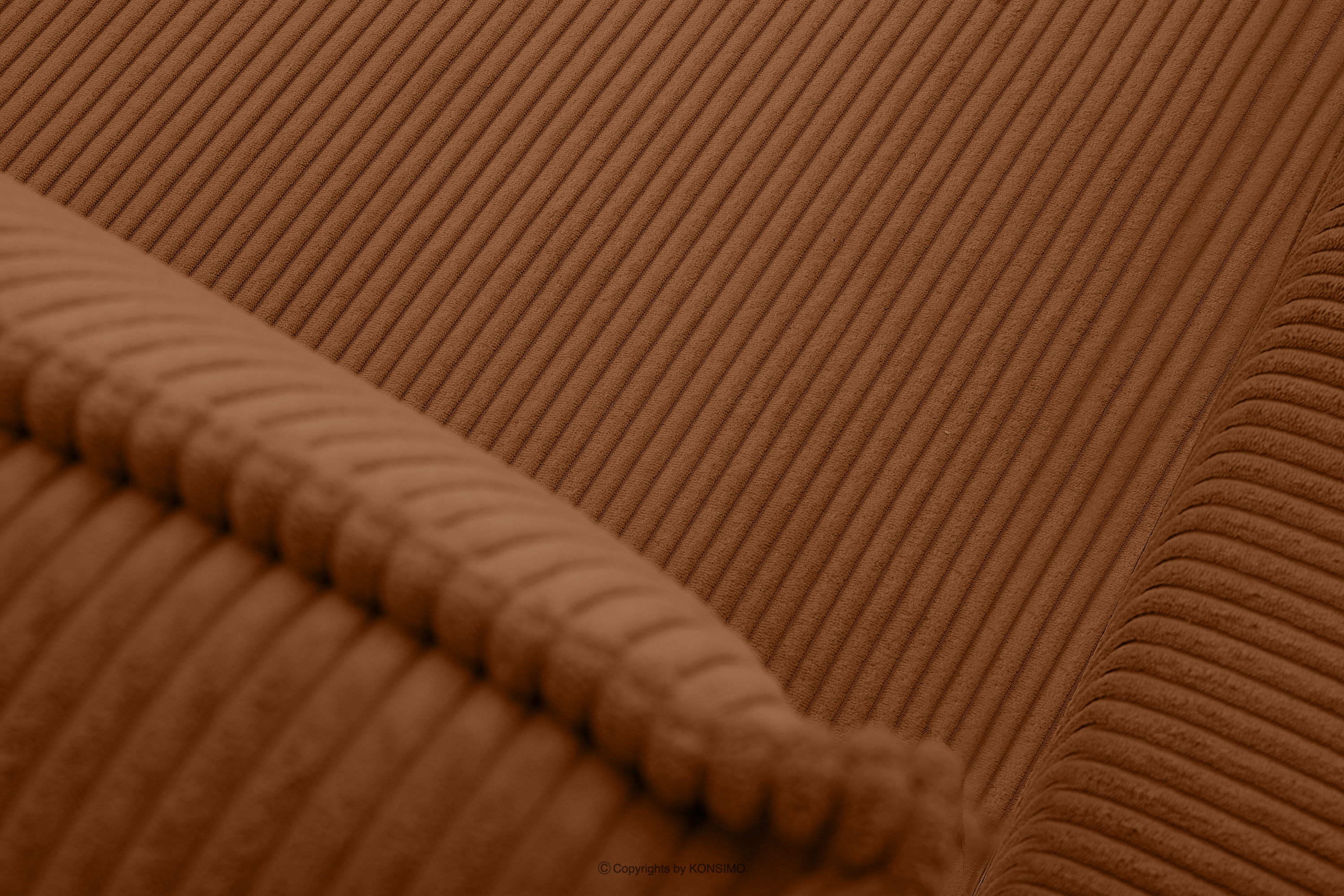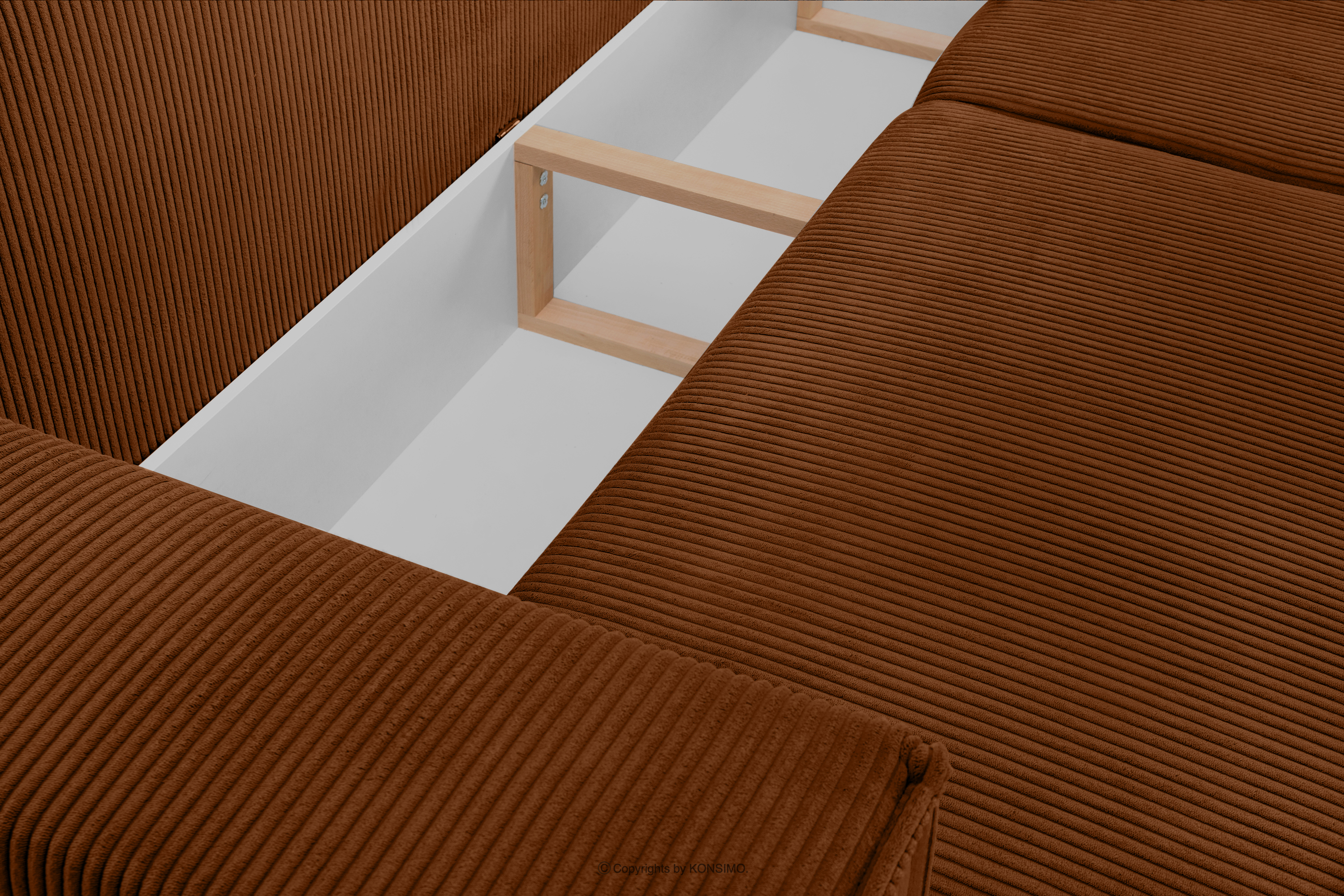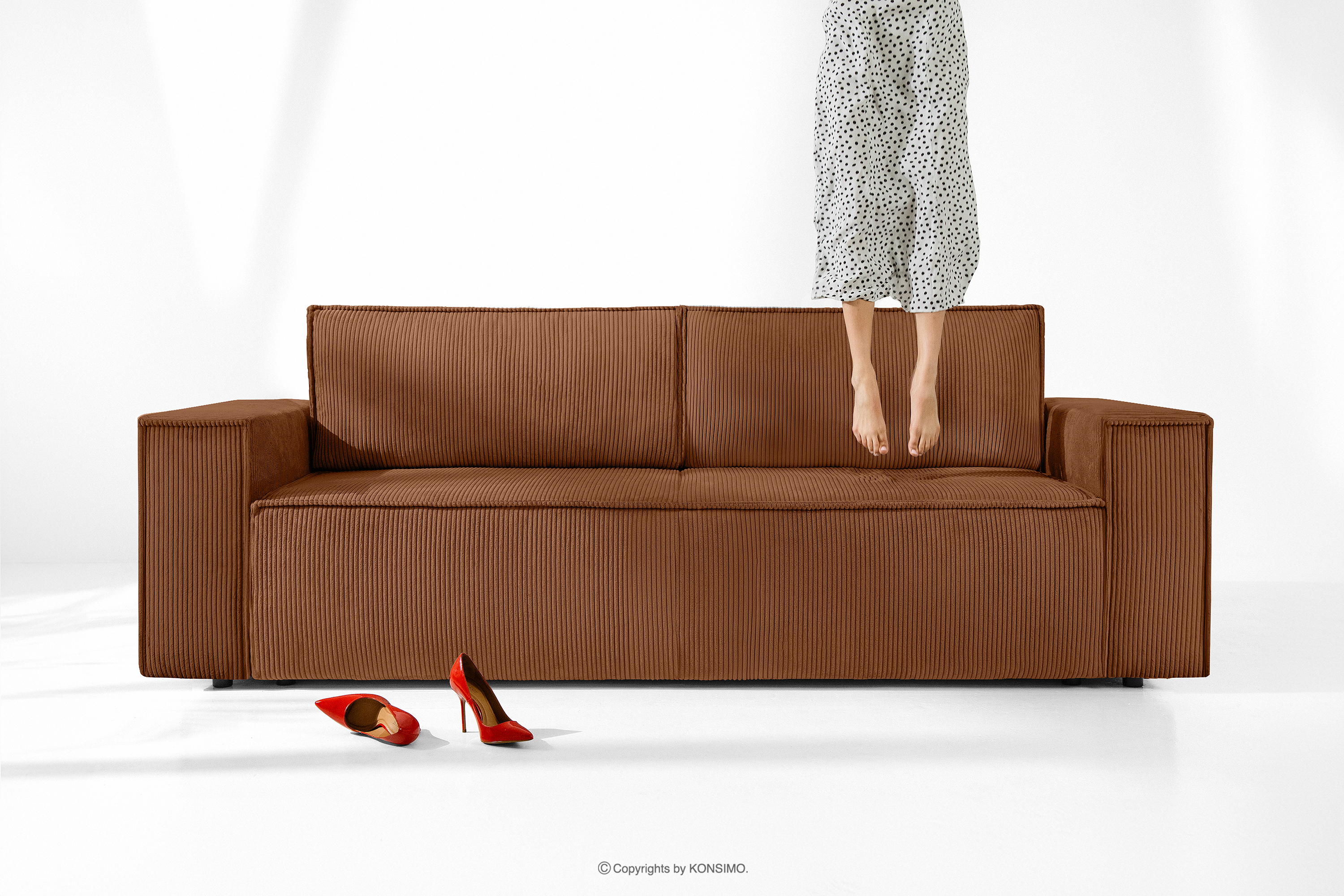 Die gesamte Polsterung dieses außergewöhnlichen Möbelstücks besteht aus Kordstoff, der sich nicht nur angenehm anfühlt, sondern auch lange Zeit sein makelloses Aussehen bewahrt. Dieser Stoff ist eine Garantie dafür, dass Ihr NAPI-Sofa immer perfekt aussehen wird.