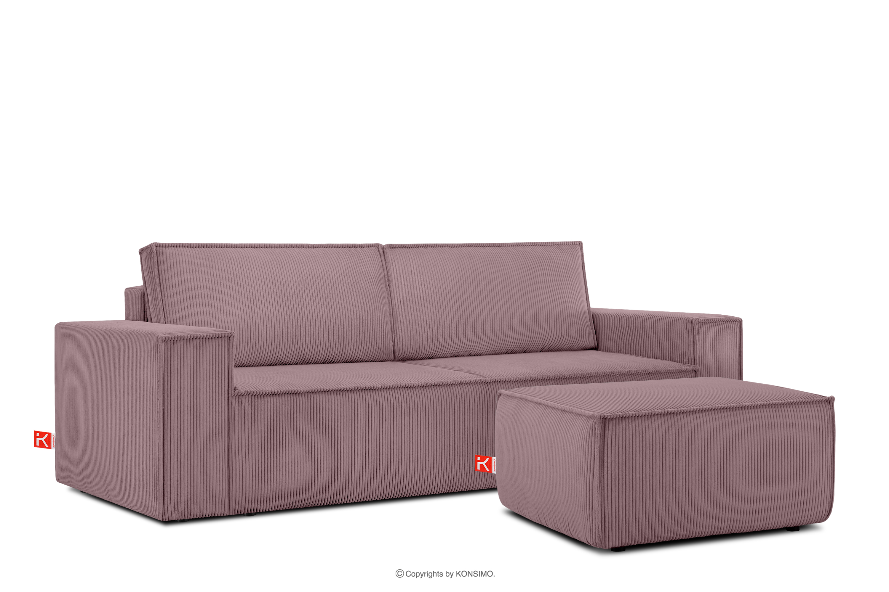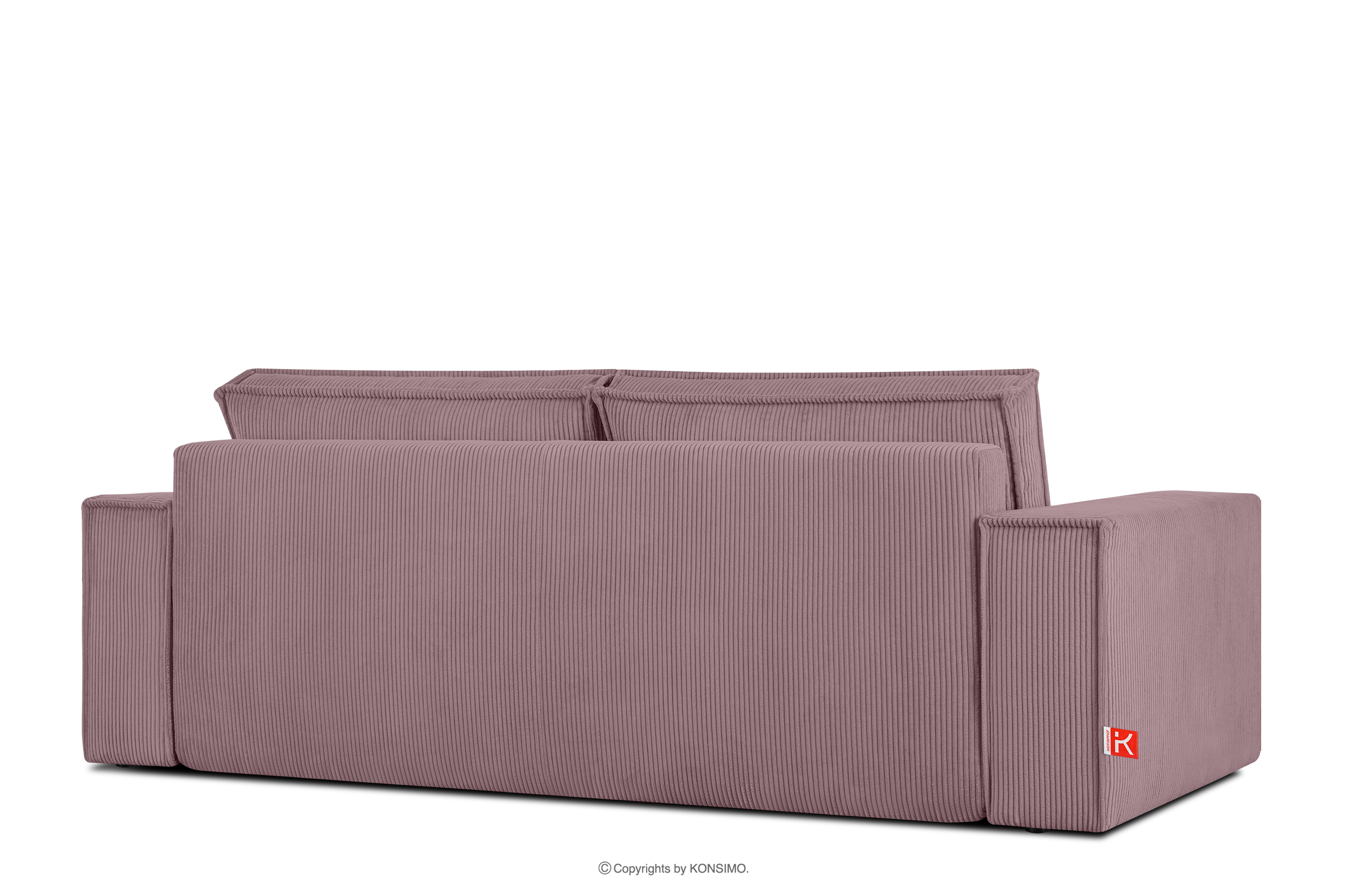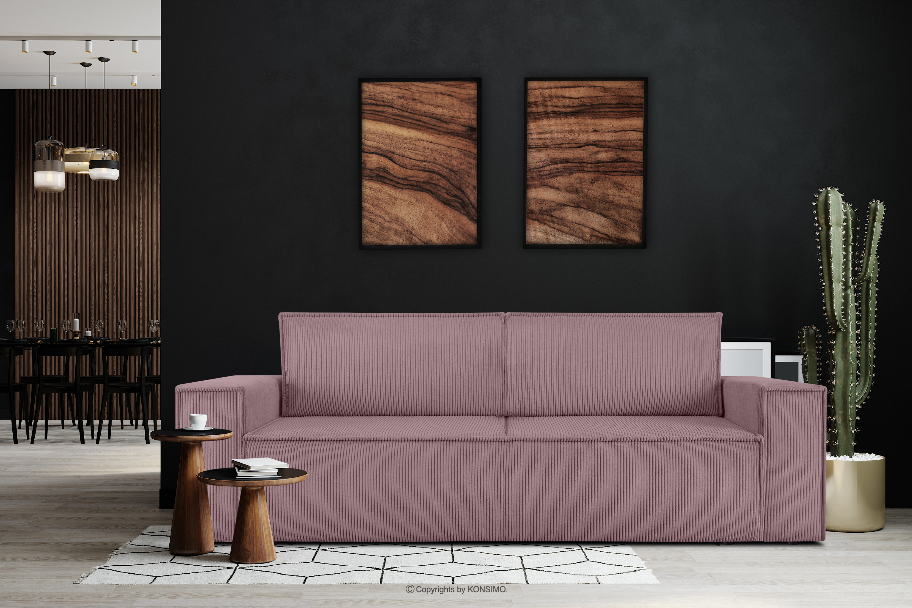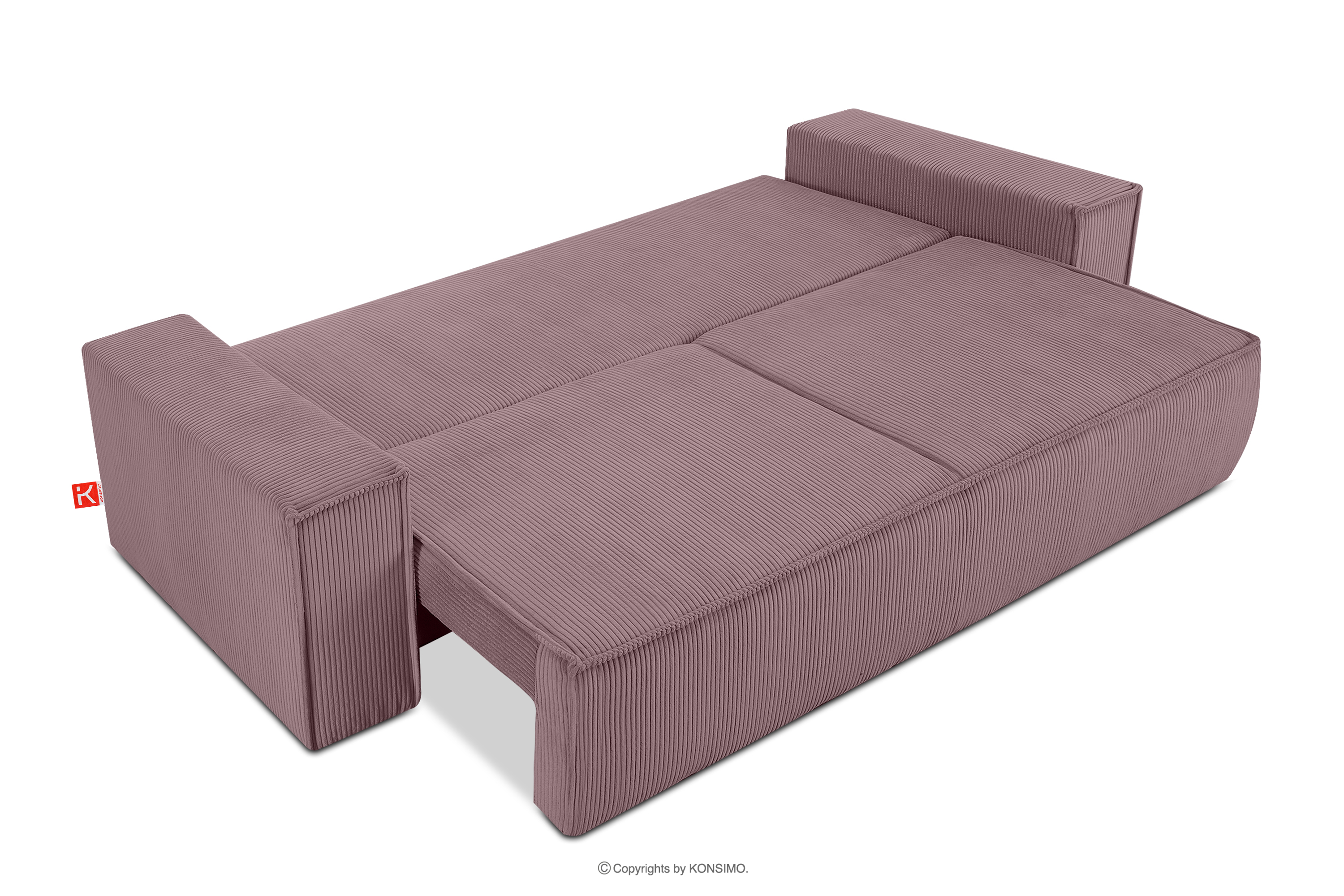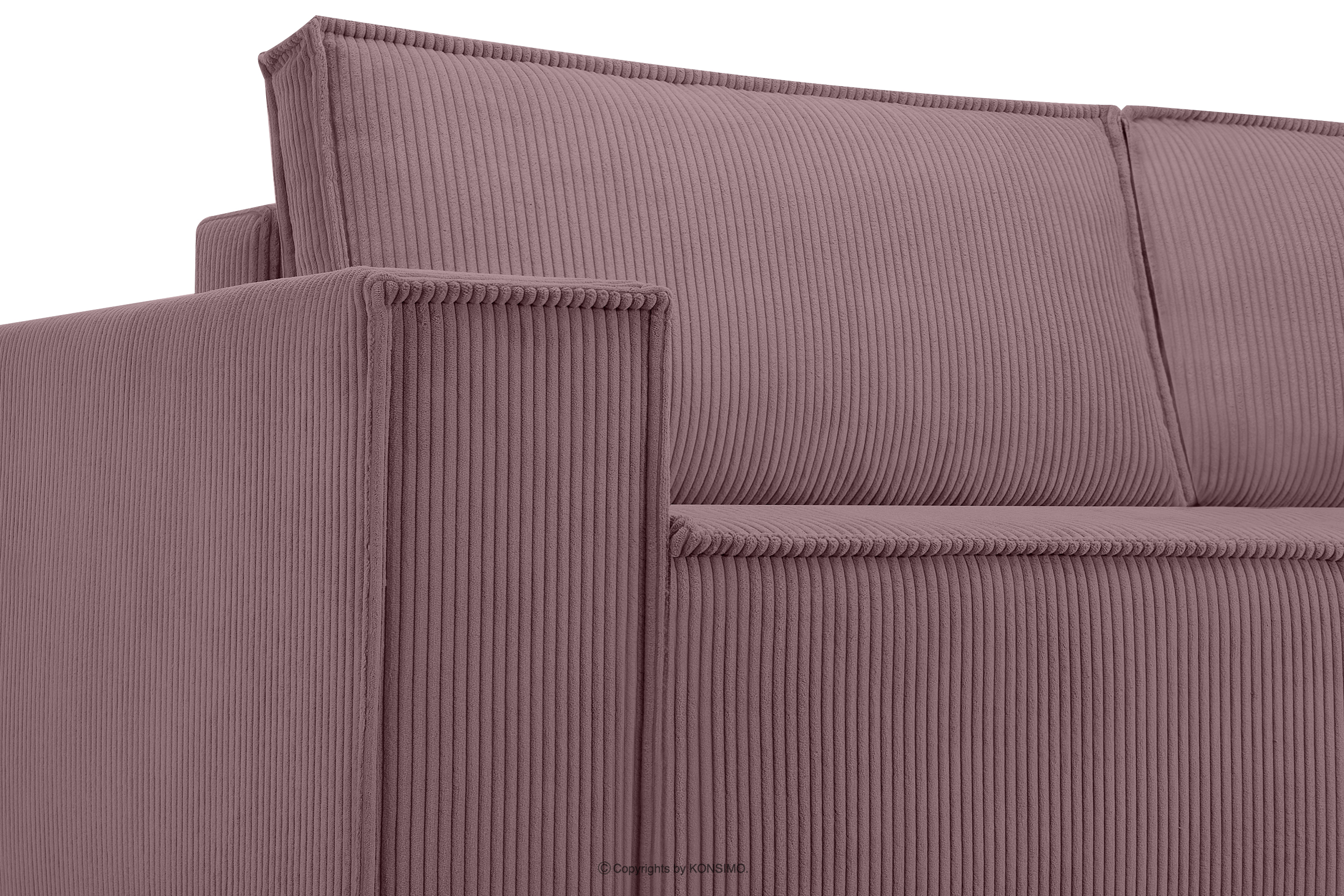 Das 3-Sitzer-Sofa mit Bettkasten in Hellviolett ist ein Möbelstück im modernistischen Stil. Mit seinen charakteristischen breiten Seiten hebt es sich von der Masse der Standardmöbel ab. Aber das ist nur der Anfang seiner außergewöhnlichen Möglichkeiten. Die Kissen der Rückenlehne sind die perfekte Stütze für Ihren Rücken und sehen dank ihrer Größe auch noch gut aus.