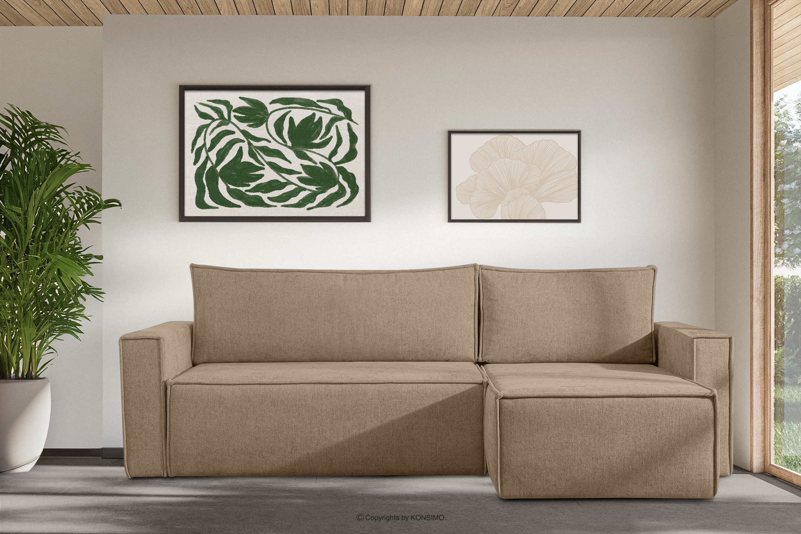 NAPI II Ecksofa mit Schlaffunktion in Gewebestoff hellbraun links/rechts