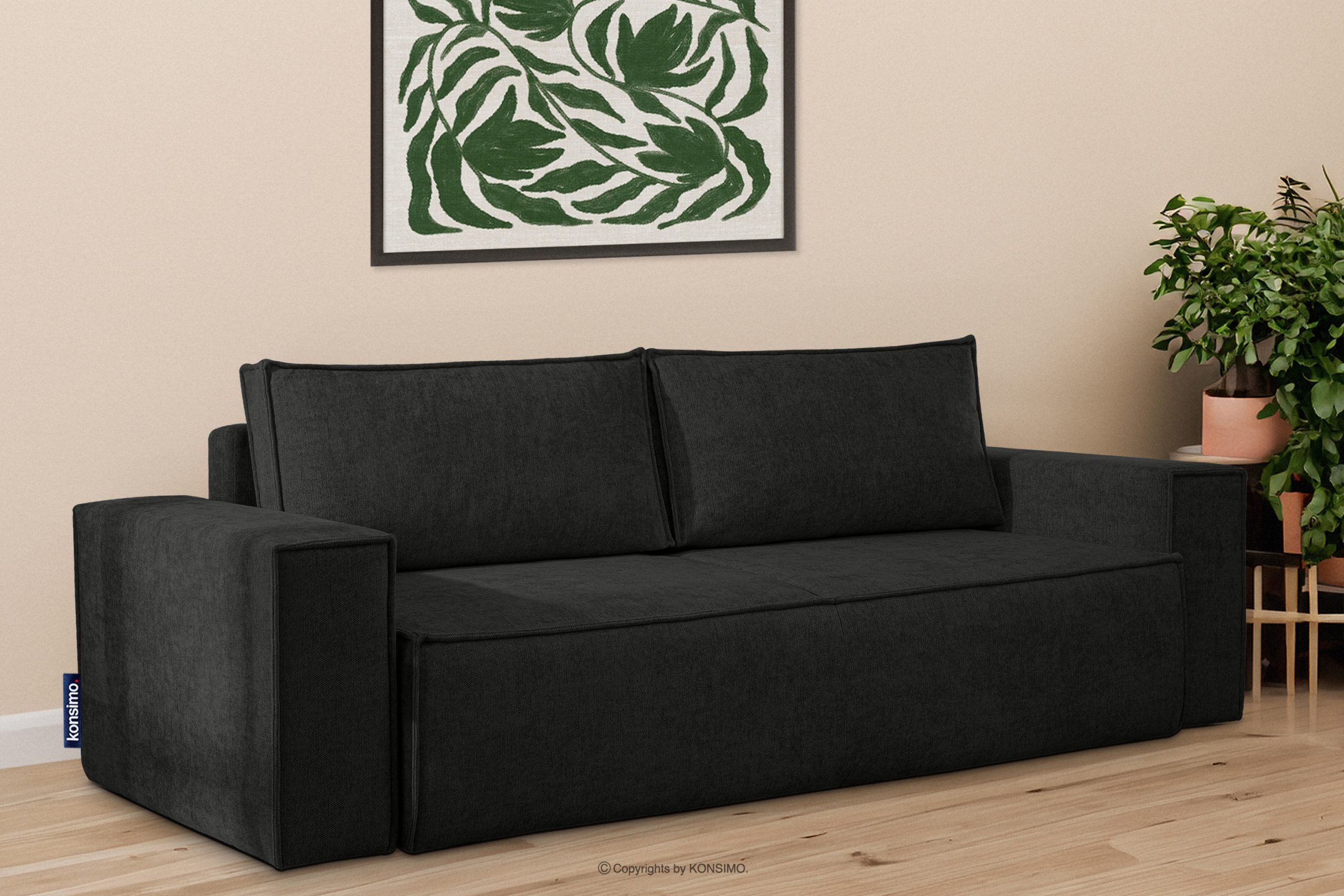 Sofa 3 in Webstoff mit Schlaffunktion anthrazit ist ein Möbelstück im modernistischen Stil in Grau. Es hat schmale französische HAWAII-Seiten, wodurch es sich besser für kleinere Räume eignet. Die Polsterung ist ein angenehm zu berührender Webstoff, der leicht zu reinigen ist und lange Zeit sein Aussehen behält. Das Sofa wird mit zwei extra großen Kissen geliefert, die auf Wunsch abgenommen werden können.
