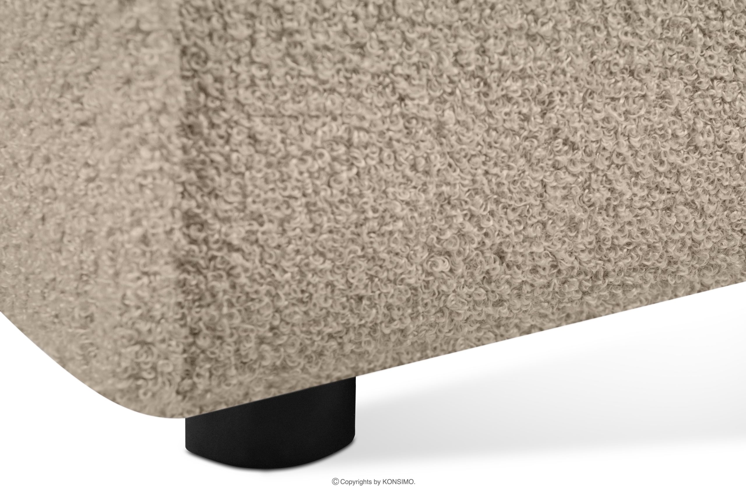 Sie können die Seite auch nach einer Weile selbst wechseln. Sie bestimmen die Seite des Ecksofas, indem Sie sich mit Blick auf die Sitzfläche vor die Liege stellen. Die Polsterung ist ein angenehm zu berührender Bouclestoff, der leicht zu reinigen ist und lange sein Aussehen bewahrt.