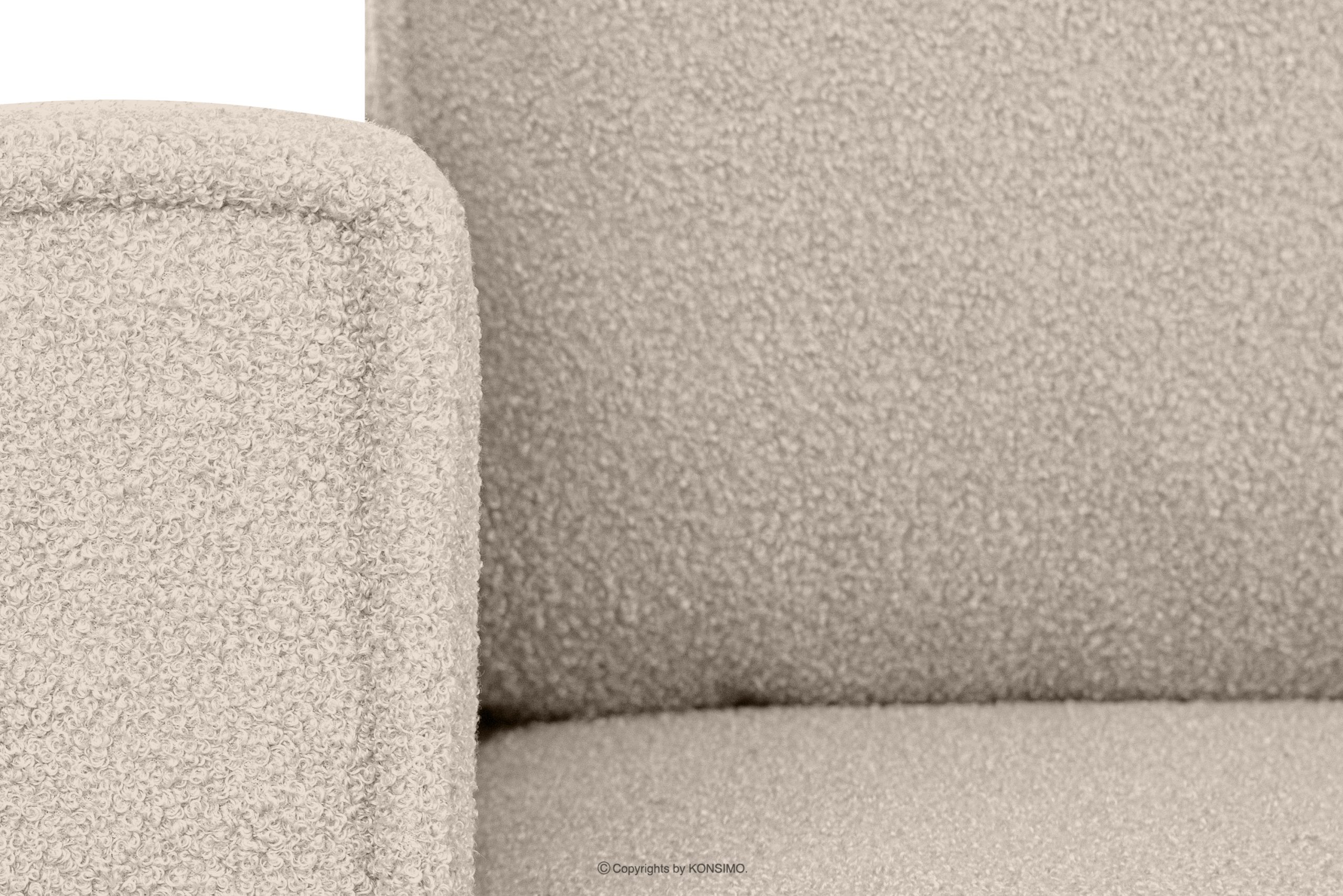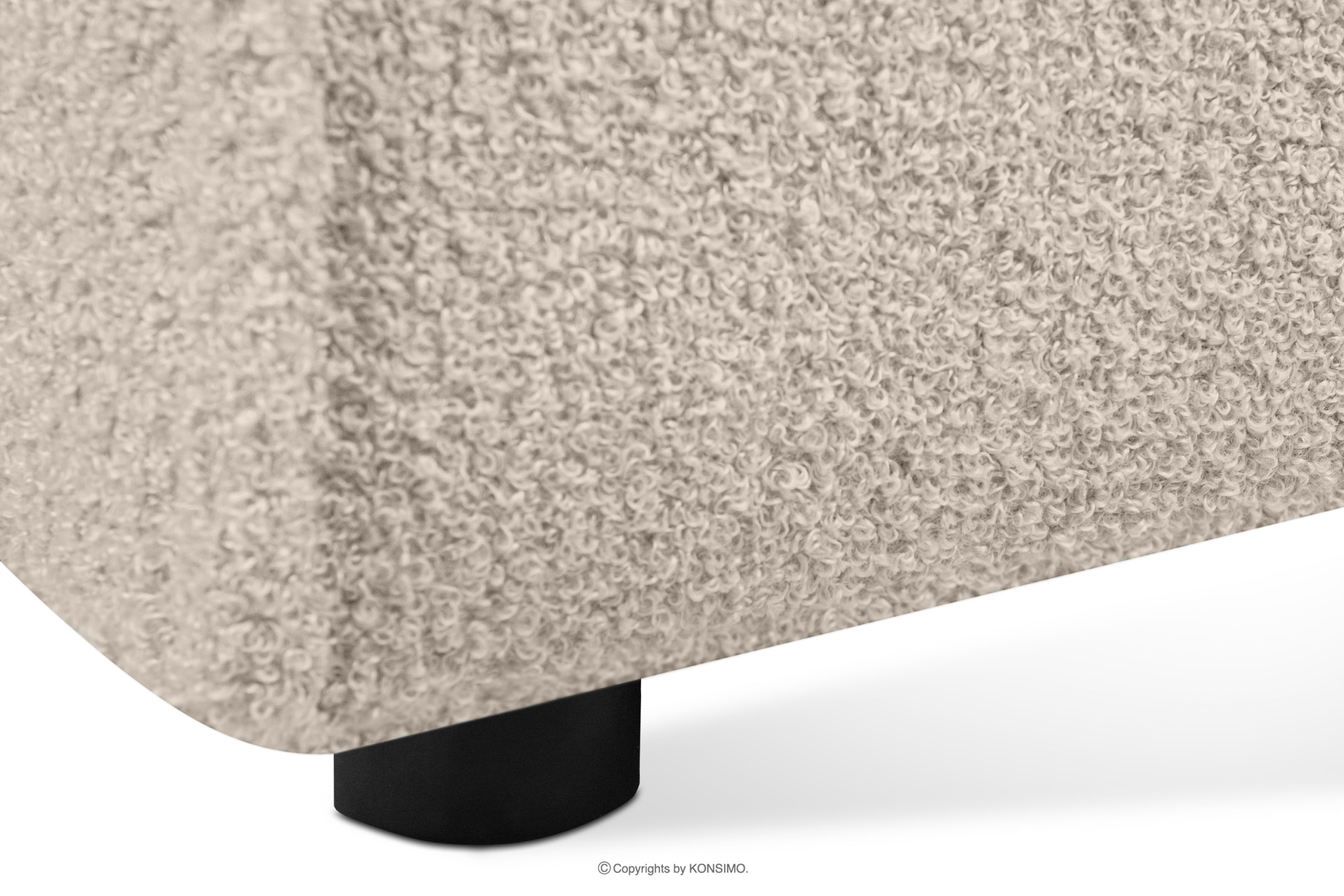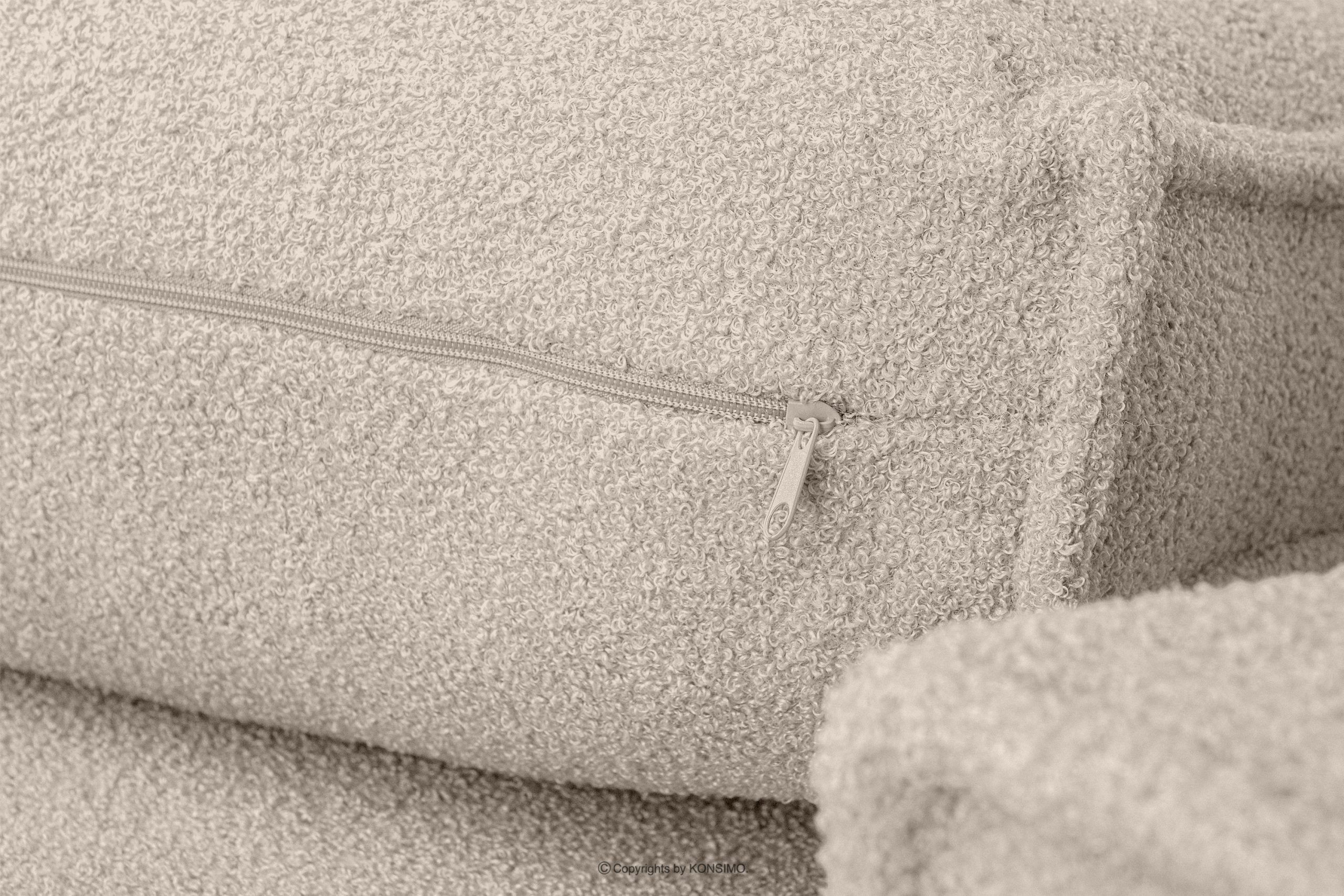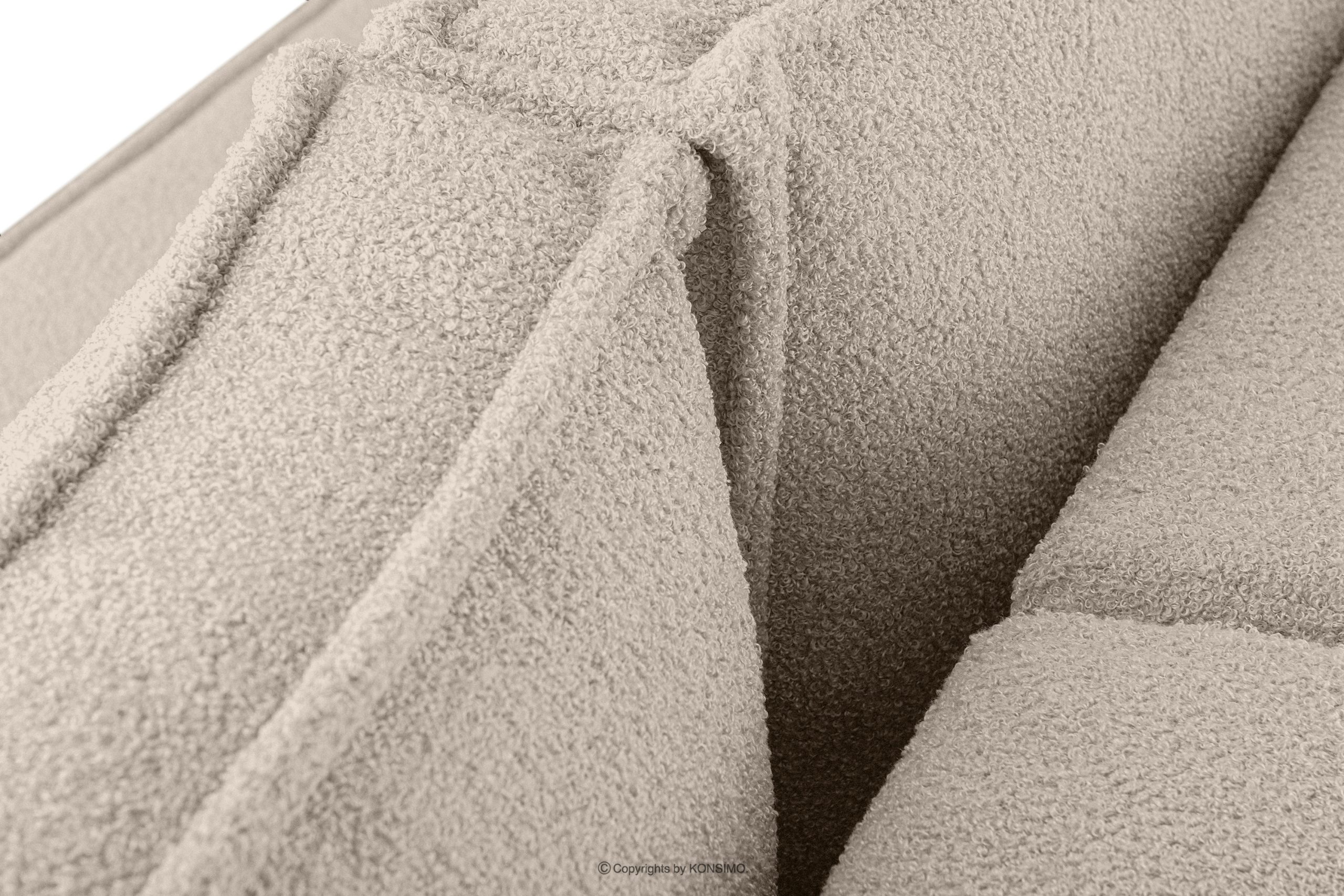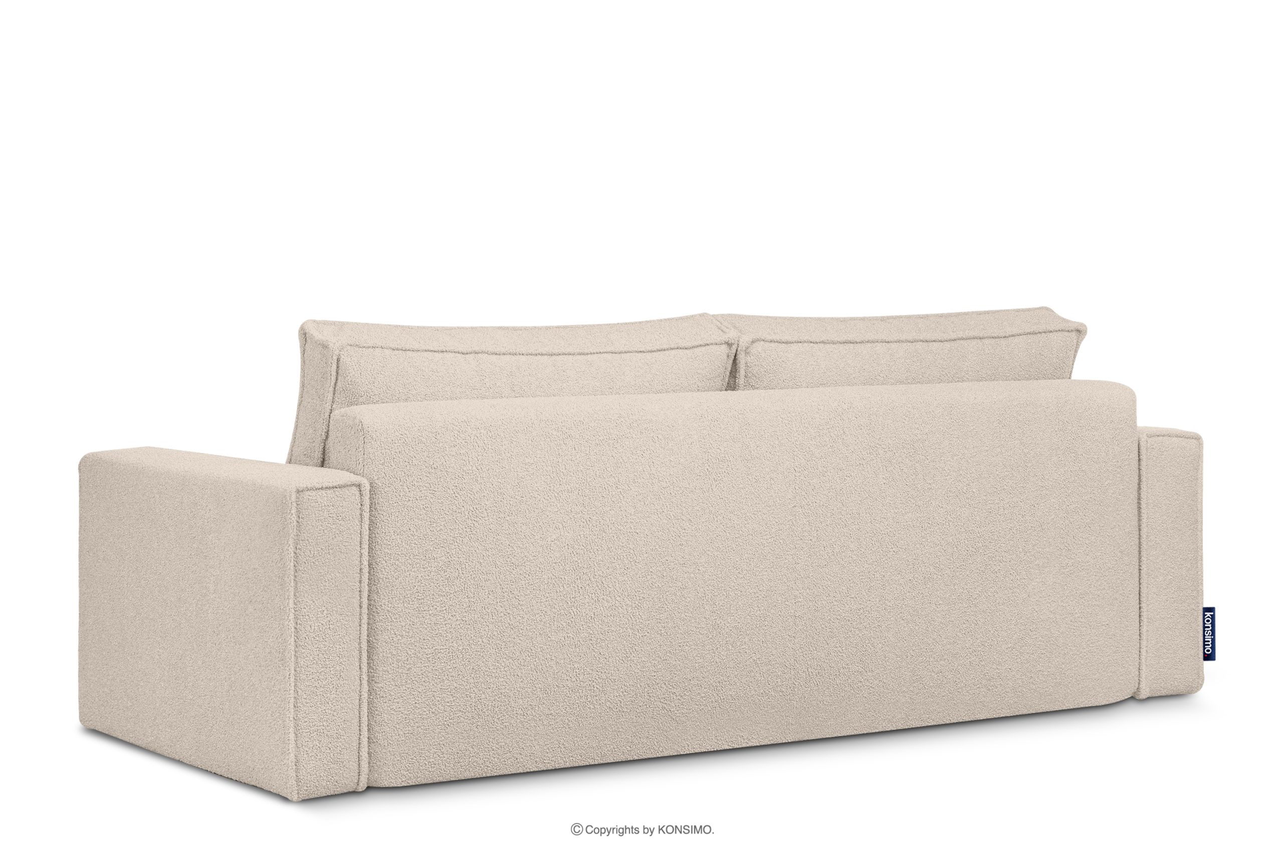 Das Dreisitzer-Sofa Boucle mit Schlaffunktion Elfenbein ist ein Möbelstück im modernistischen Stil in Grau. Es hat schmale französische HAWAII-Seiten, wodurch es sich besser für kleinere Räume eignet. Die Polsterung besteht aus einem angenehmen Boucle-Stoff, der leicht zu reinigen ist und sein Aussehen lange bewahrt. Das Sofa wird mit zwei extra großen Kissen geliefert, die auf Wunsch abgenommen werden können.