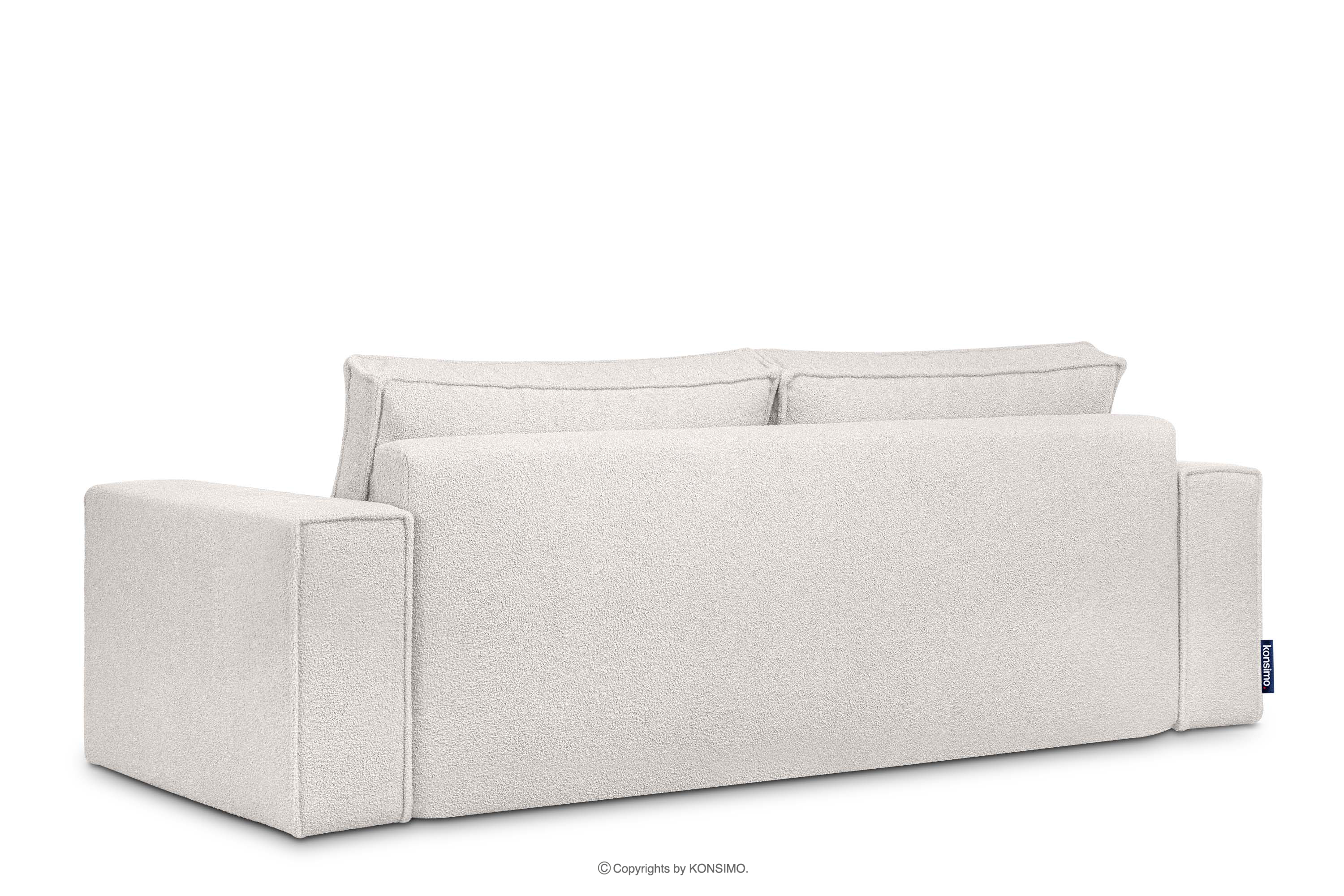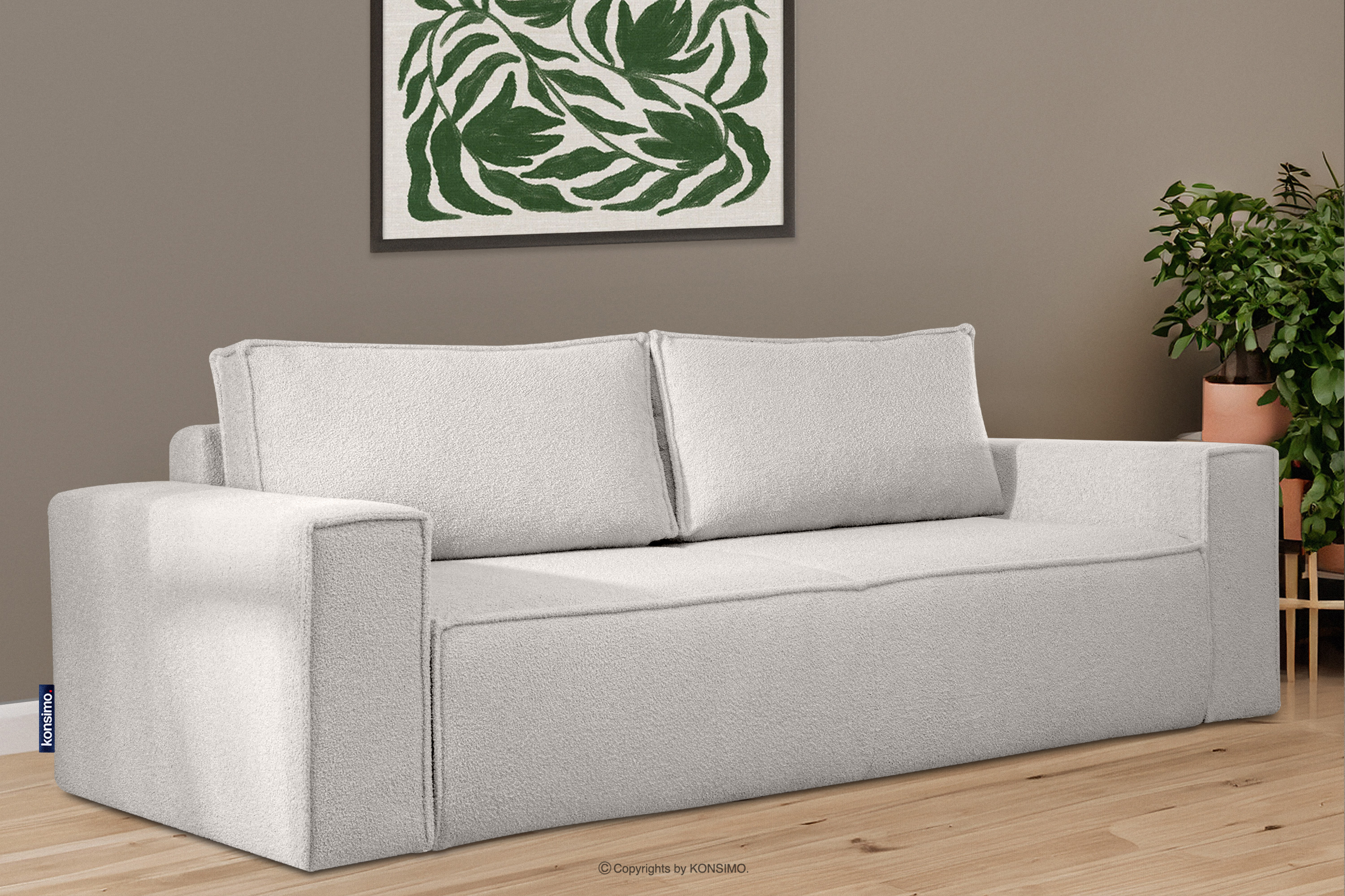 Das 3-Boucle-Sofa mit Schlaffunktion weiß ist ein Möbelstück im modernistischen Stil in Grau. Es hat schmale französische HAWAII-Seiten, wodurch es sich besser für kleinere Räume eignet. Die Polsterung besteht aus einem angenehmen Boucle-Stoff, der leicht zu reinigen ist und lange Zeit sein Aussehen bewahrt. Das Sofa wird mit zwei extra großen Kissen geliefert, die auf Wunsch abgenommen werden können.