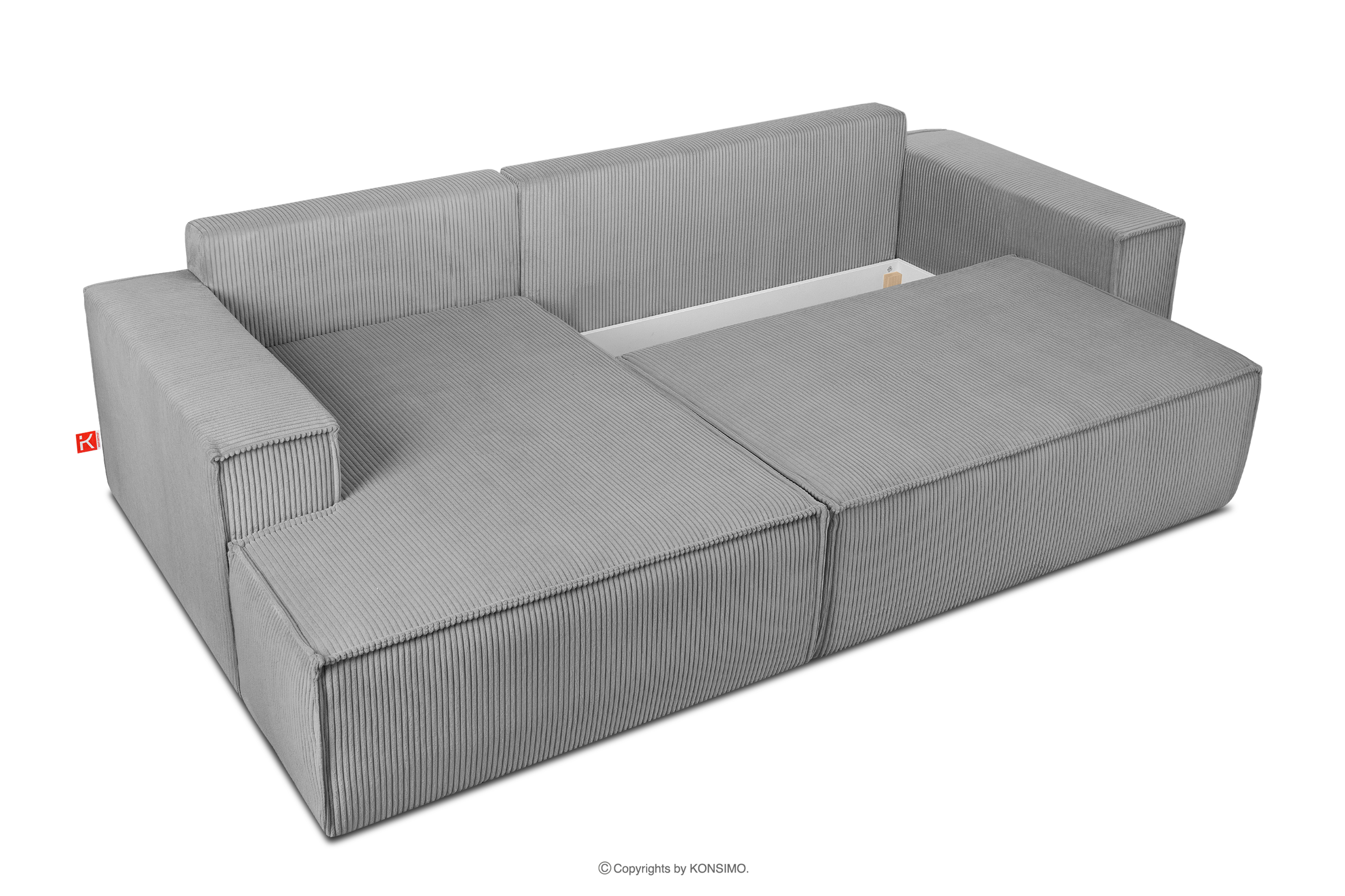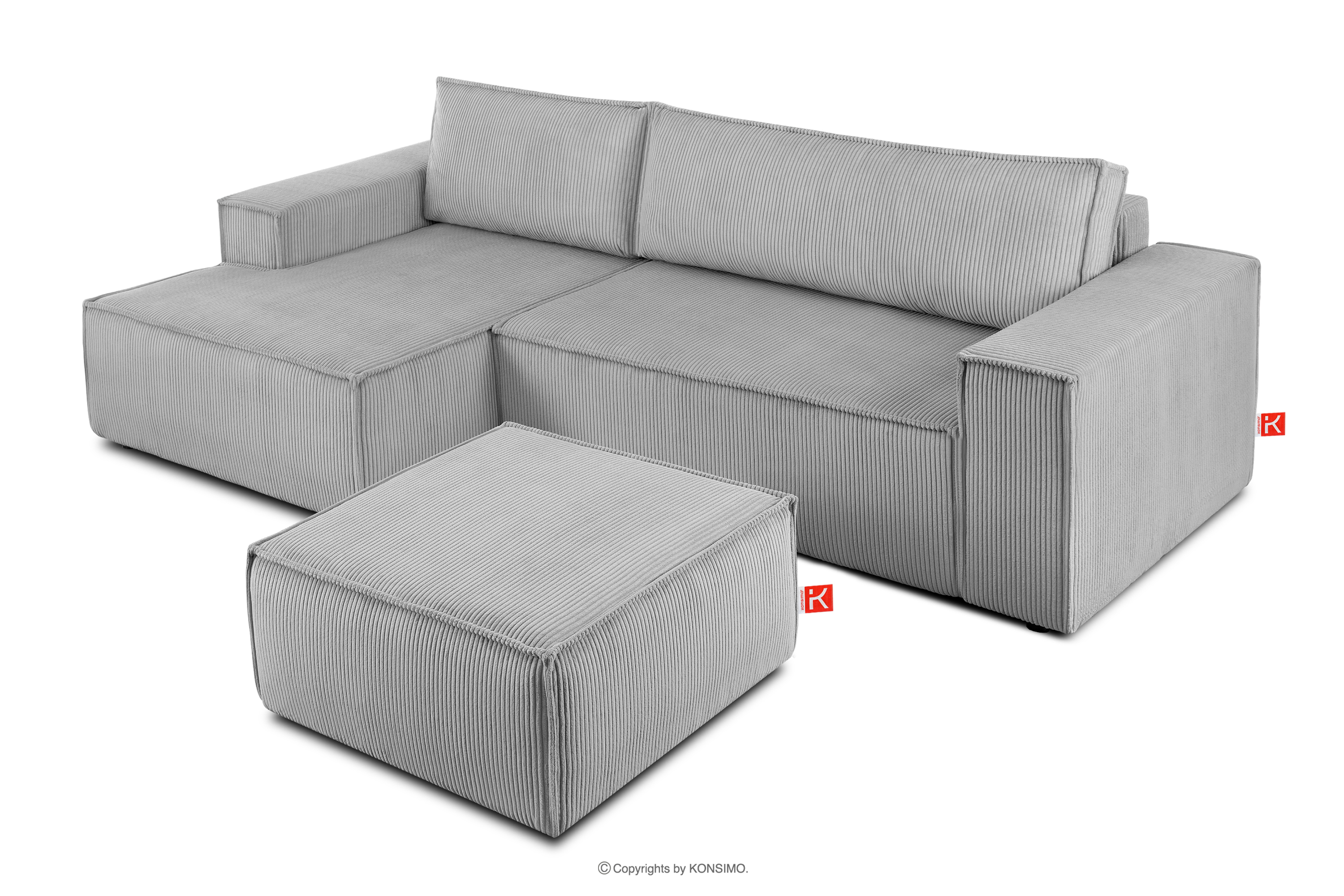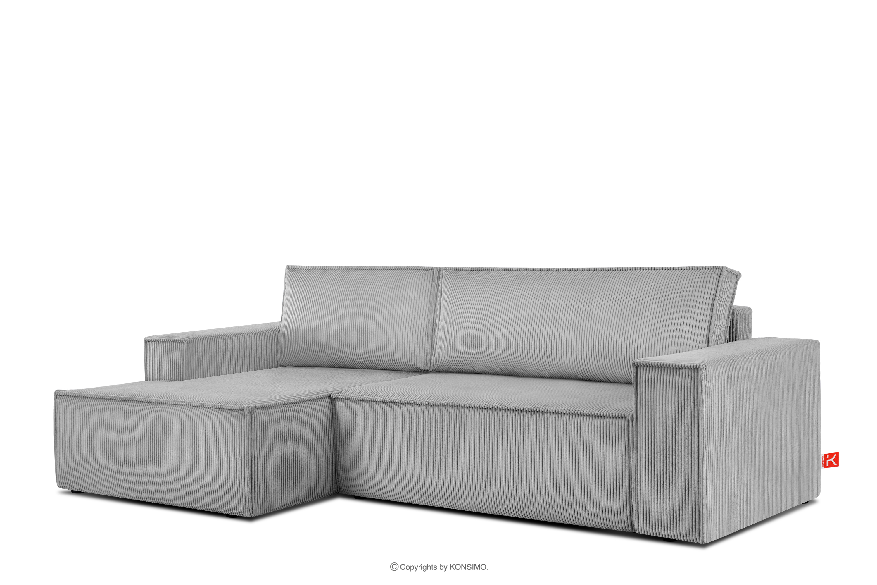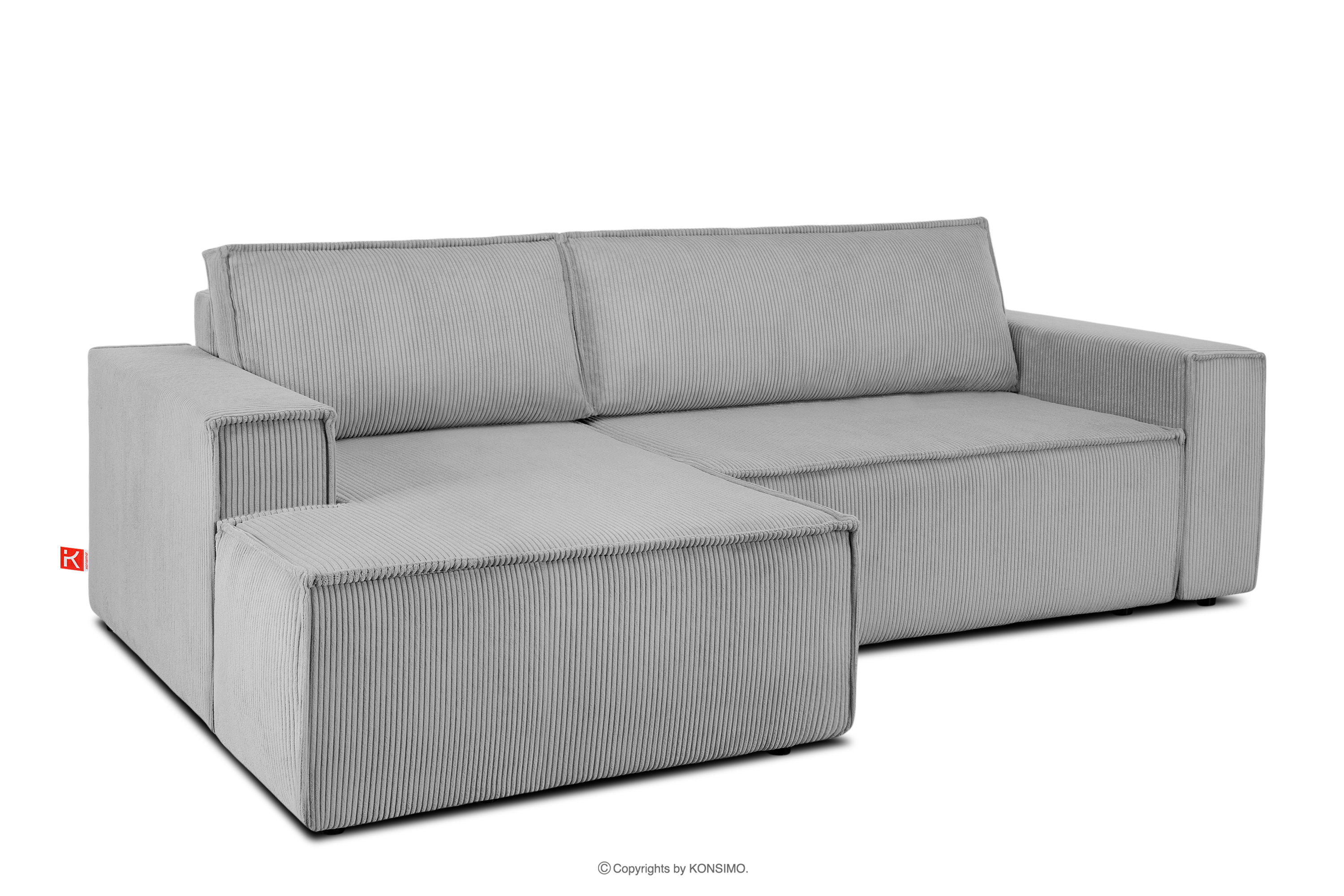Kordstoff-Ecksofa links fürs Wohnzimmer mit Schlaffunktion & Bettkasten in hellgrau NAPI - Farbe hellgrau