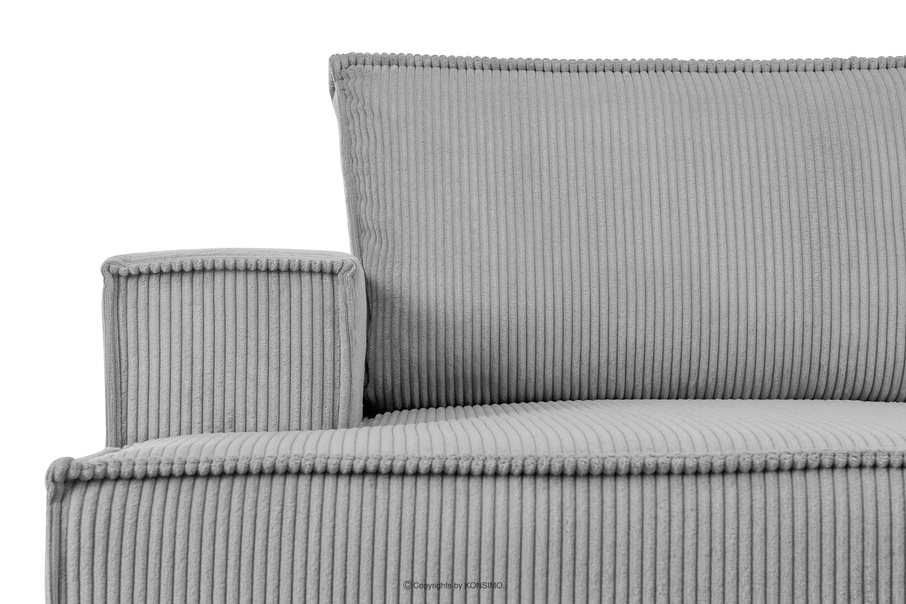 Das hellgraue Kordstoff-Liegesofa für das Wohnzimmer zieht die Blicke auf sich und hebt sich so von anderen Möbeln ab. Die gesamte Polsterung dieses außergewöhnlichen Möbelstücks ist aus feinem Kordstoff gefertigt, der nicht nur einen angenehmen Komfort, sondern auch eine lang anhaltende, makellose Ästhetik garantiert. Mit diesem Stoff sieht Ihre NAPI-Ecke immer perfekt aus, unabhängig von der Zeit und den Bedingungen der Nutzung.