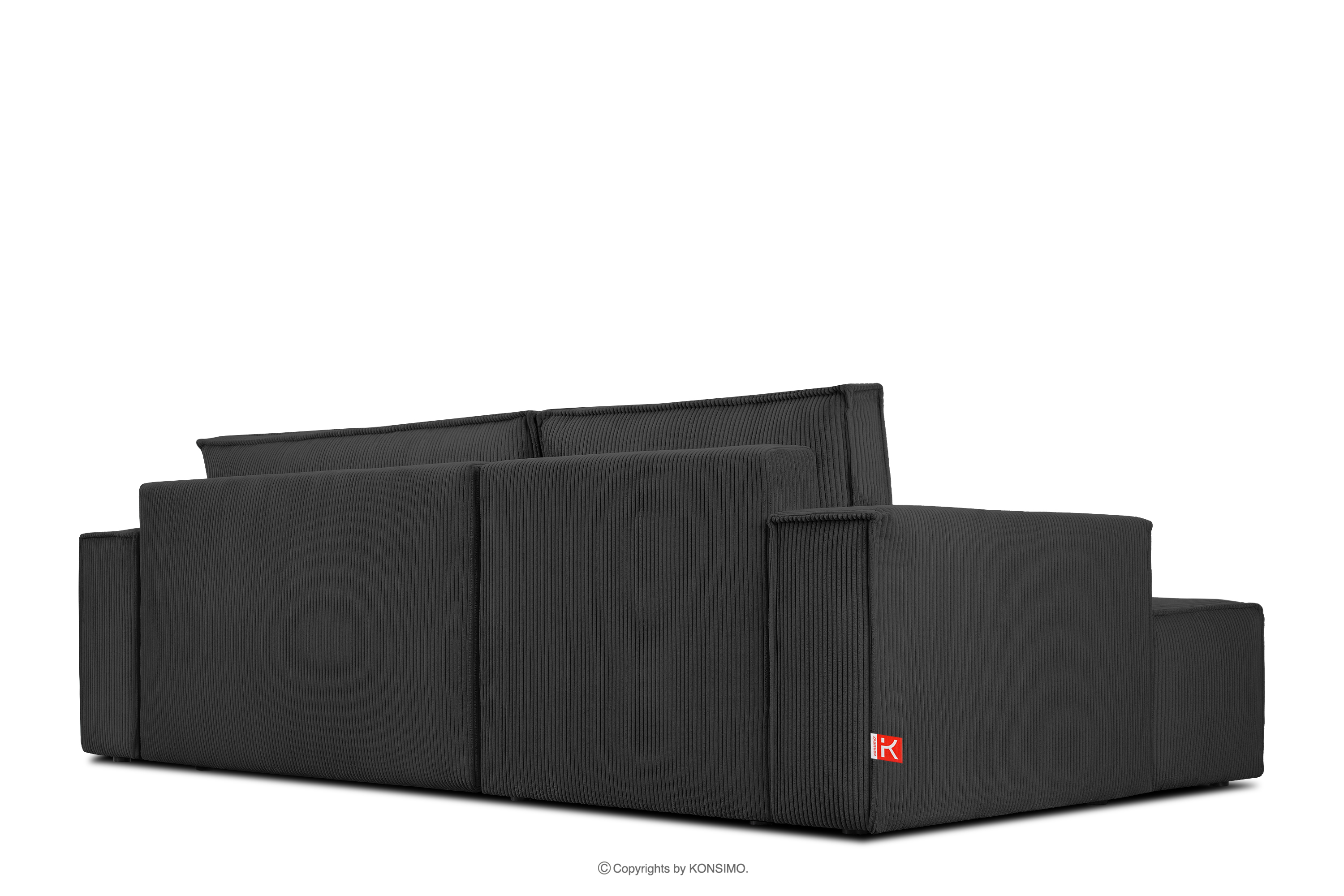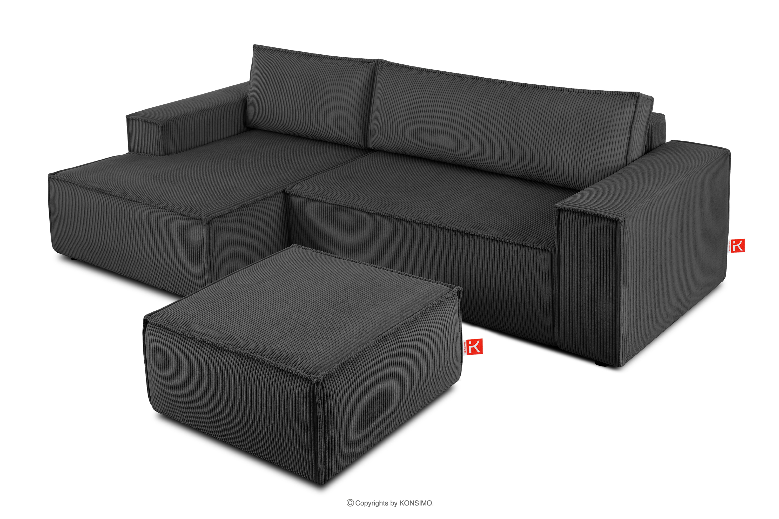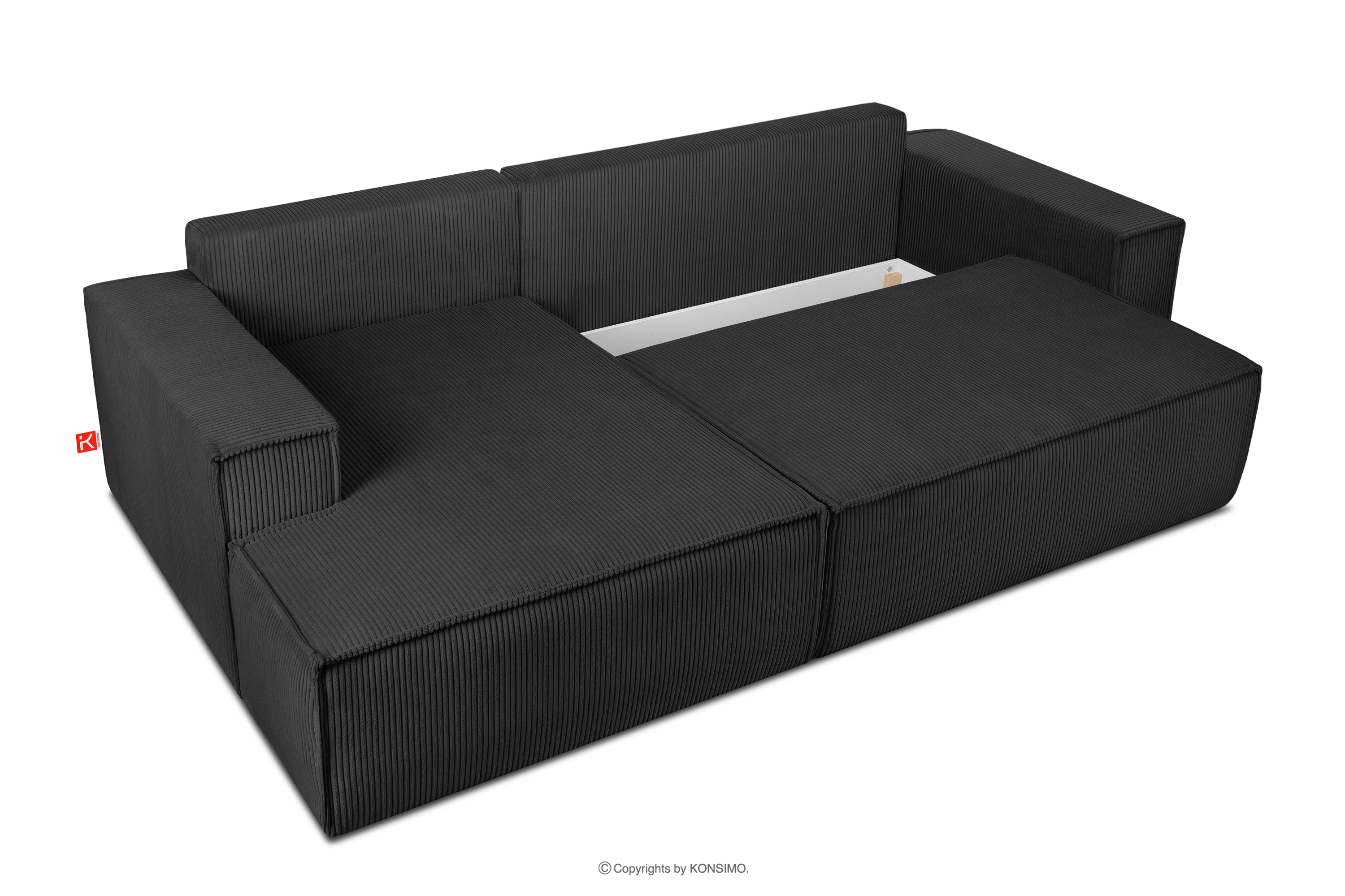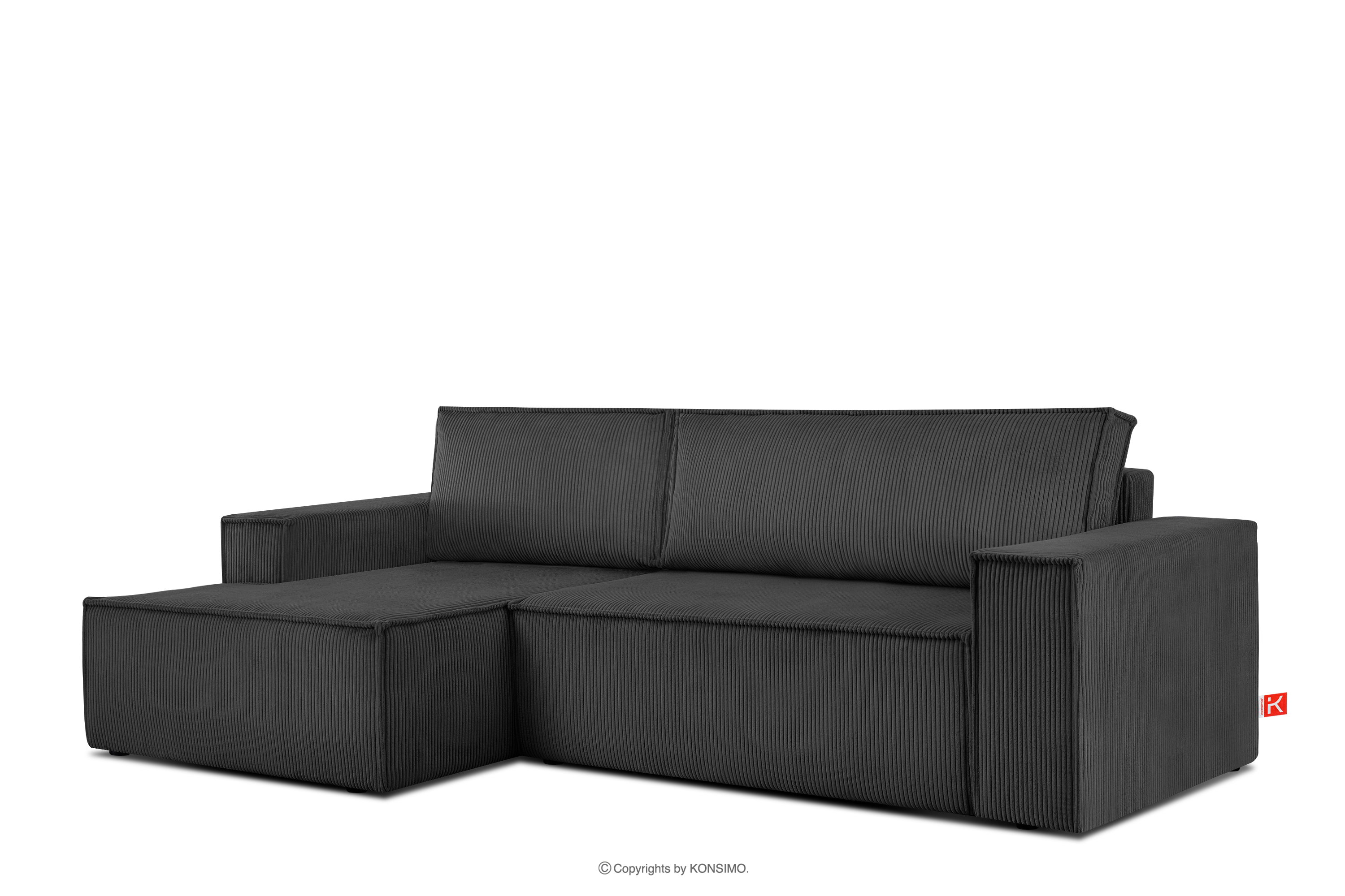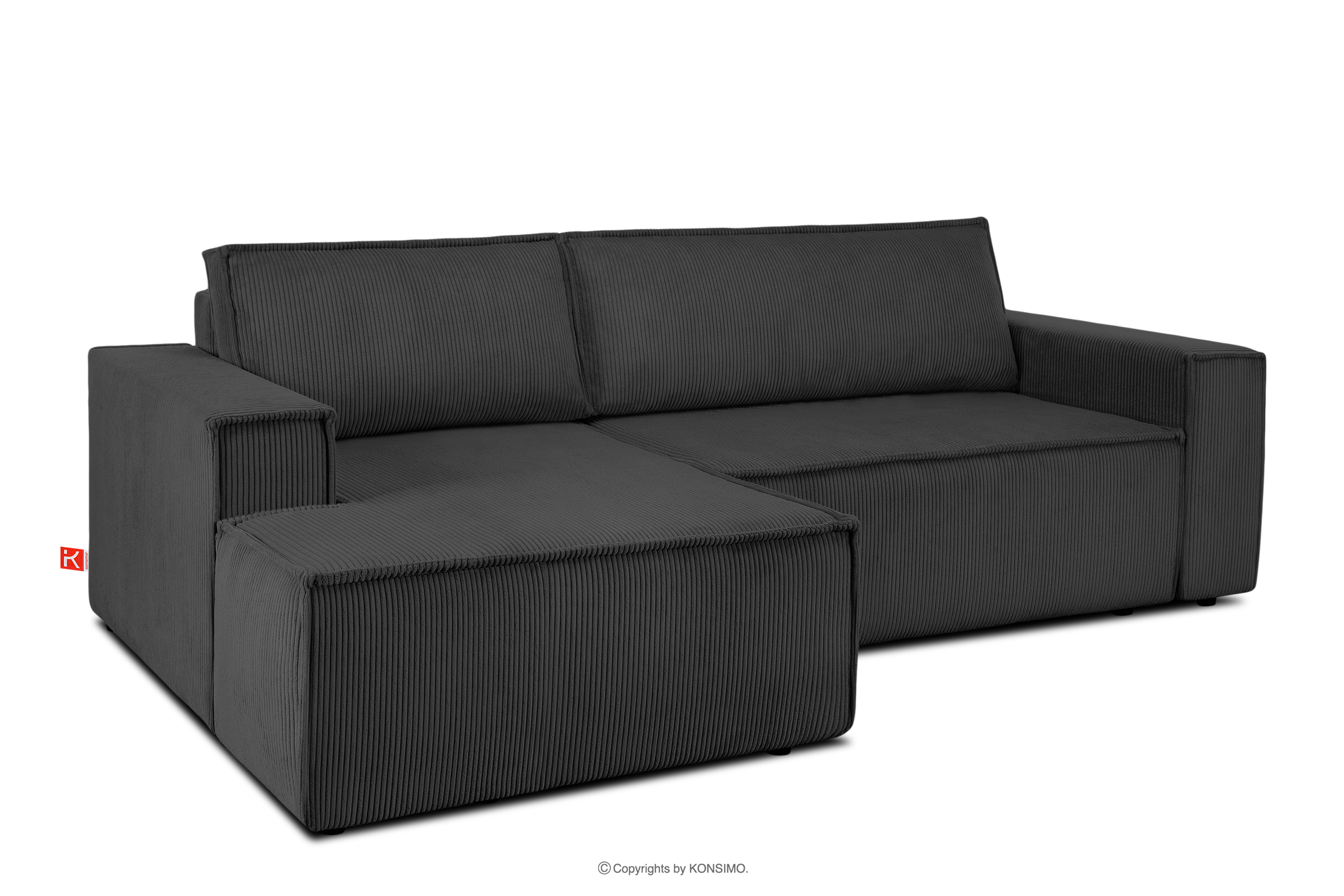 Kordstoff-Ecksofa links fürs Wohnzimmer mit Schlaffunktion & Bettkasten in dunkelgrau NAPI - Farbe dunkelgrau