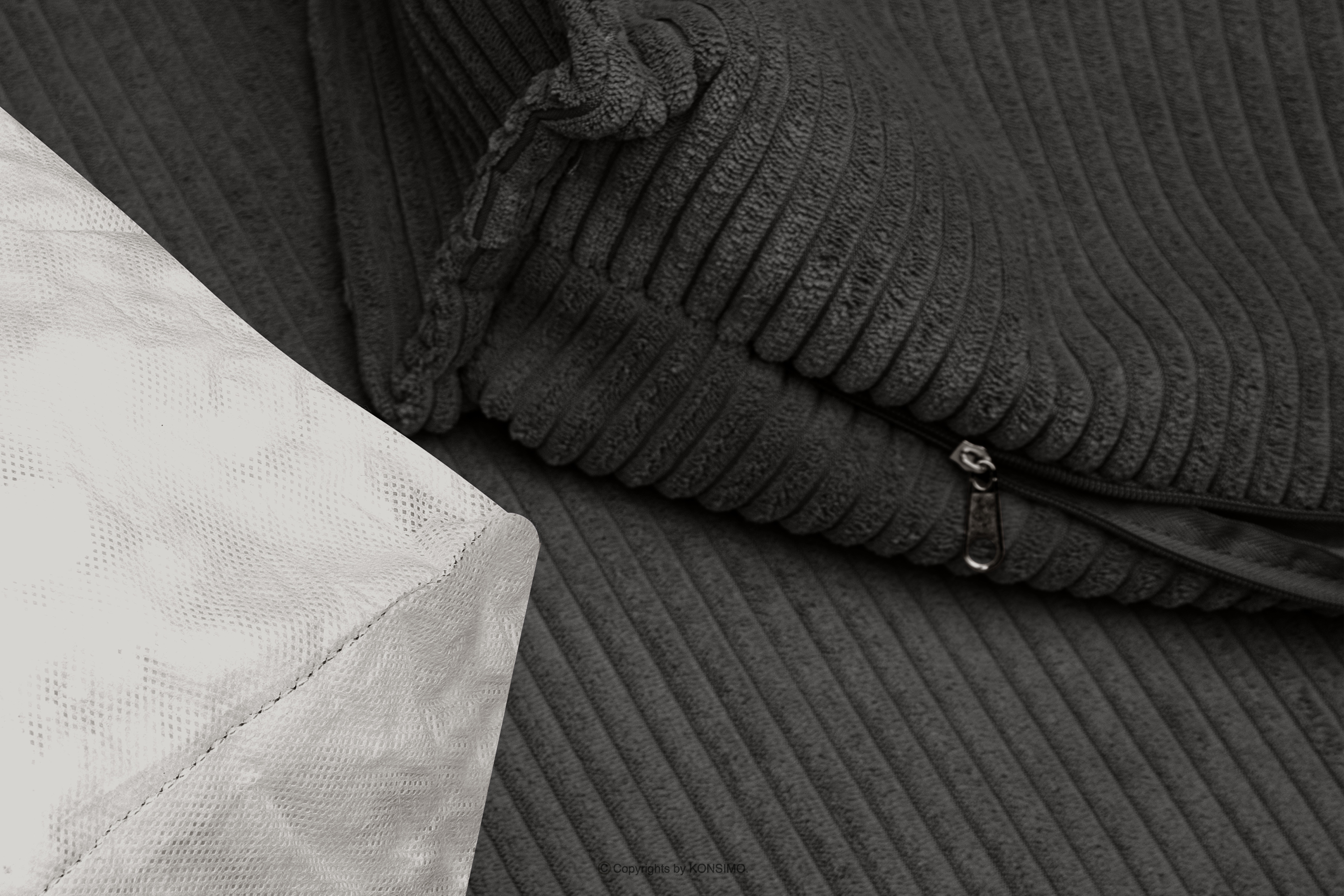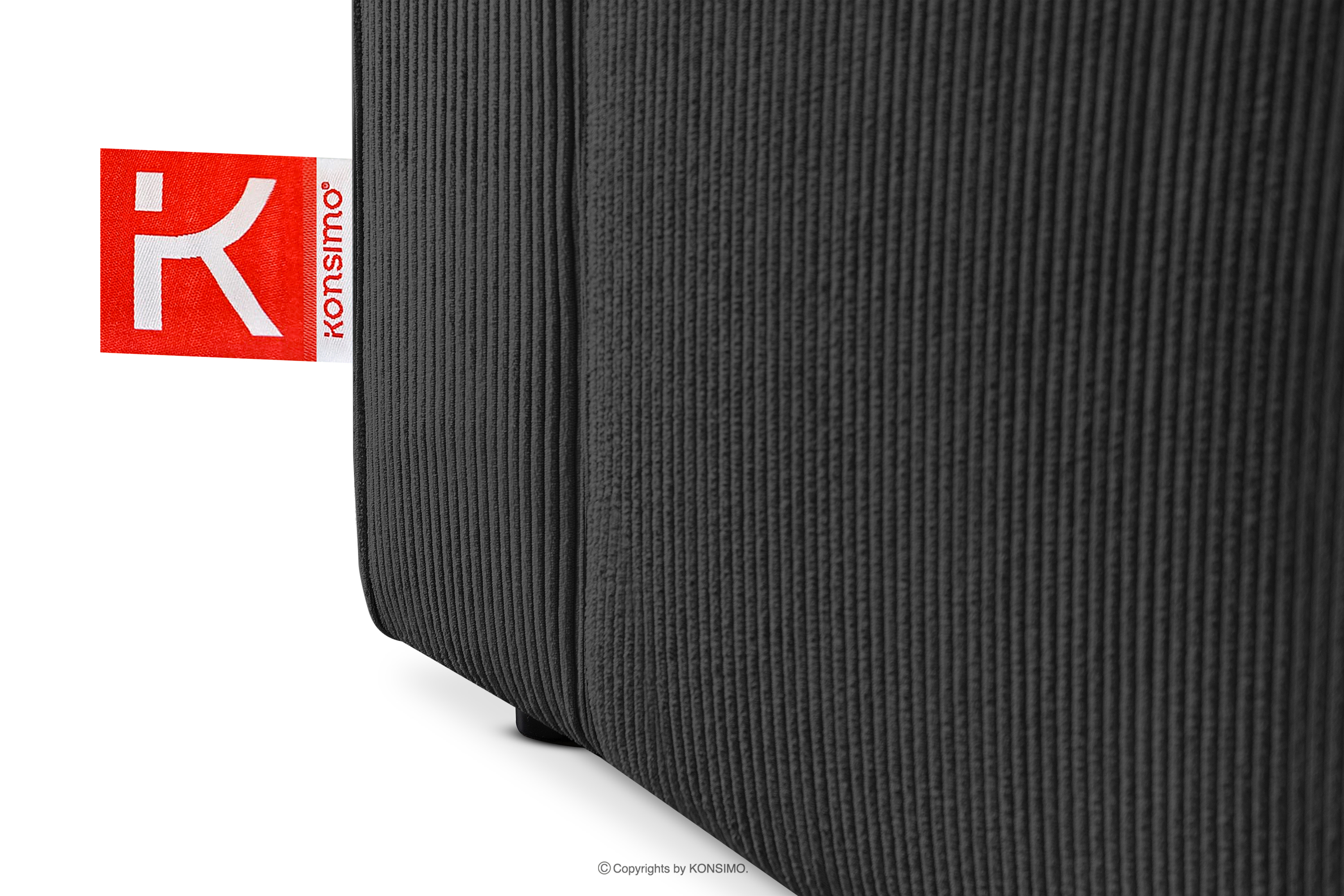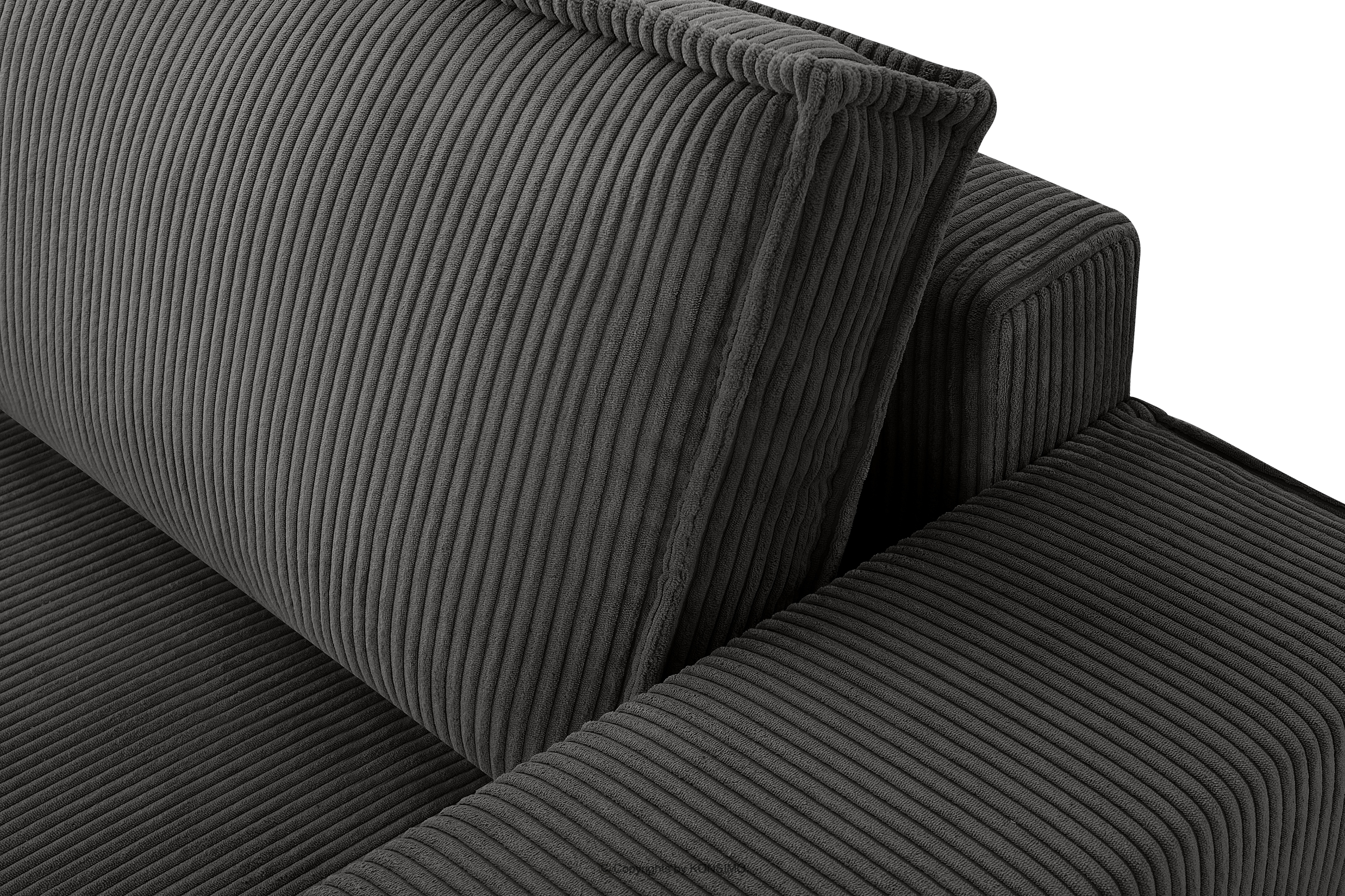 Das dunkelgraue Kordstoff-Liegesofa für das Wohnzimmer zieht die Aufmerksamkeit auf sich und hebt sich so von anderen Möbeln ab. Die gesamte Polsterung dieses außergewöhnlichen Möbelstücks ist aus feinem Kordstoff gefertigt, der nicht nur einen angenehmen Komfort, sondern auch eine lang anhaltende, makellose Ästhetik garantiert. Mit diesem Stoff sieht Ihre NAPI-Ecke immer perfekt aus, unabhängig von der Zeit und den Bedingungen der Nutzung.