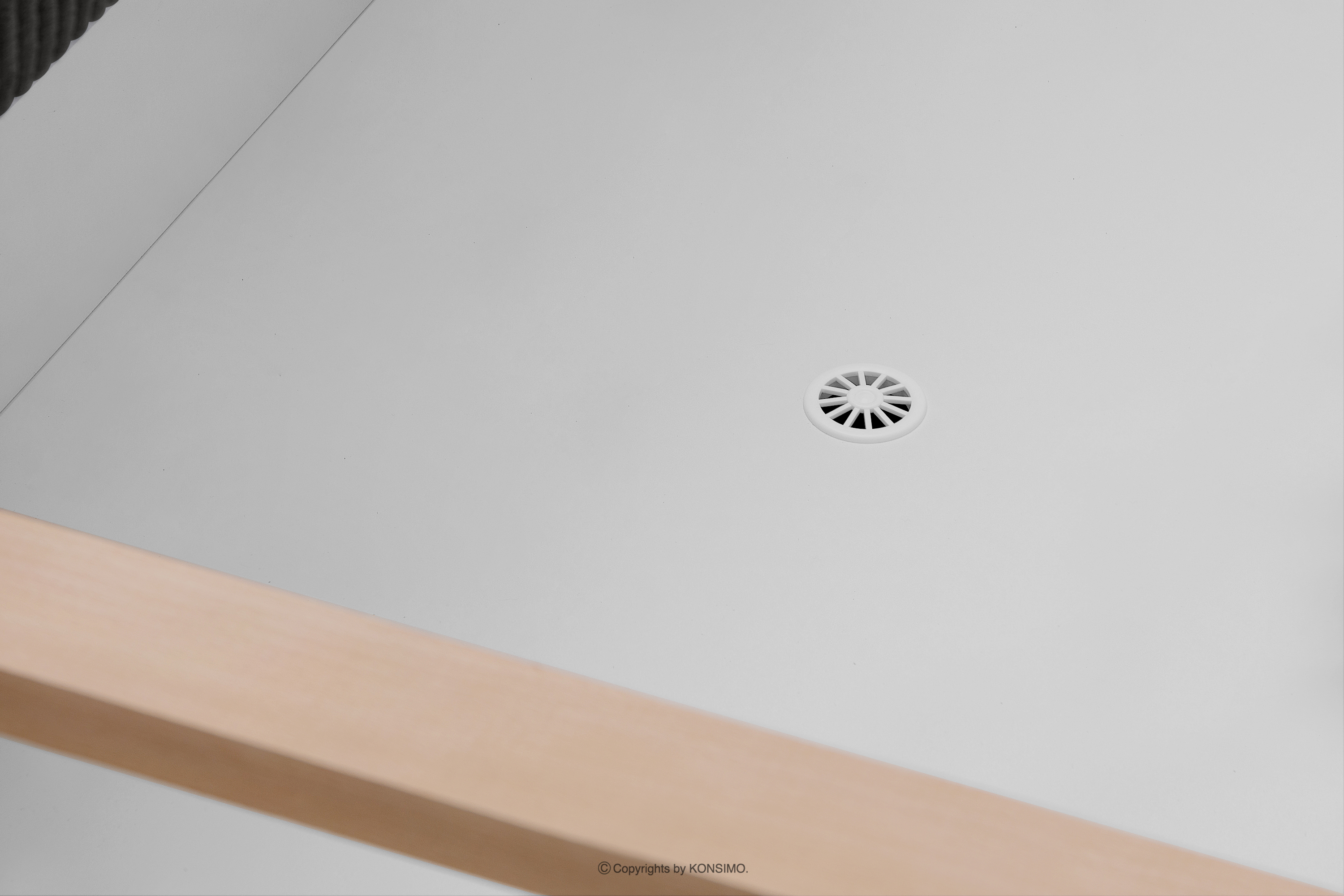 Unser Ecksofa NAPI sieht nicht nur einzigartig aus, es ist auch eine solide Konstruktion. Die Sitzfläche ist mit Schaumstoff T30/45 80 gefüllt und mit einer Wellenunterfederung versehen, die für lang anhaltenden Komfort und Elastizität sorgt. Diese Kombination macht das Ecksofa auch sehr verformungsbeständig. Es handelt sich um ein Möbelstück, das viele Jahre lang seine Form behält. Das Sofa ist mit einem Bettzeugkasten ausgestattet, der viel Platz für zusätzliche Bettwaren, Decken oder Kissen bietet. Die Schlaffunktion ist sicherlich einer der größten Vorzüge dieses Ecksofas. Bei dem verwendeten DL-System wird die Sitzfläche leicht angehoben und nach vorne geschoben, um die Rückenlehne in den freien Raum zu stellen.
