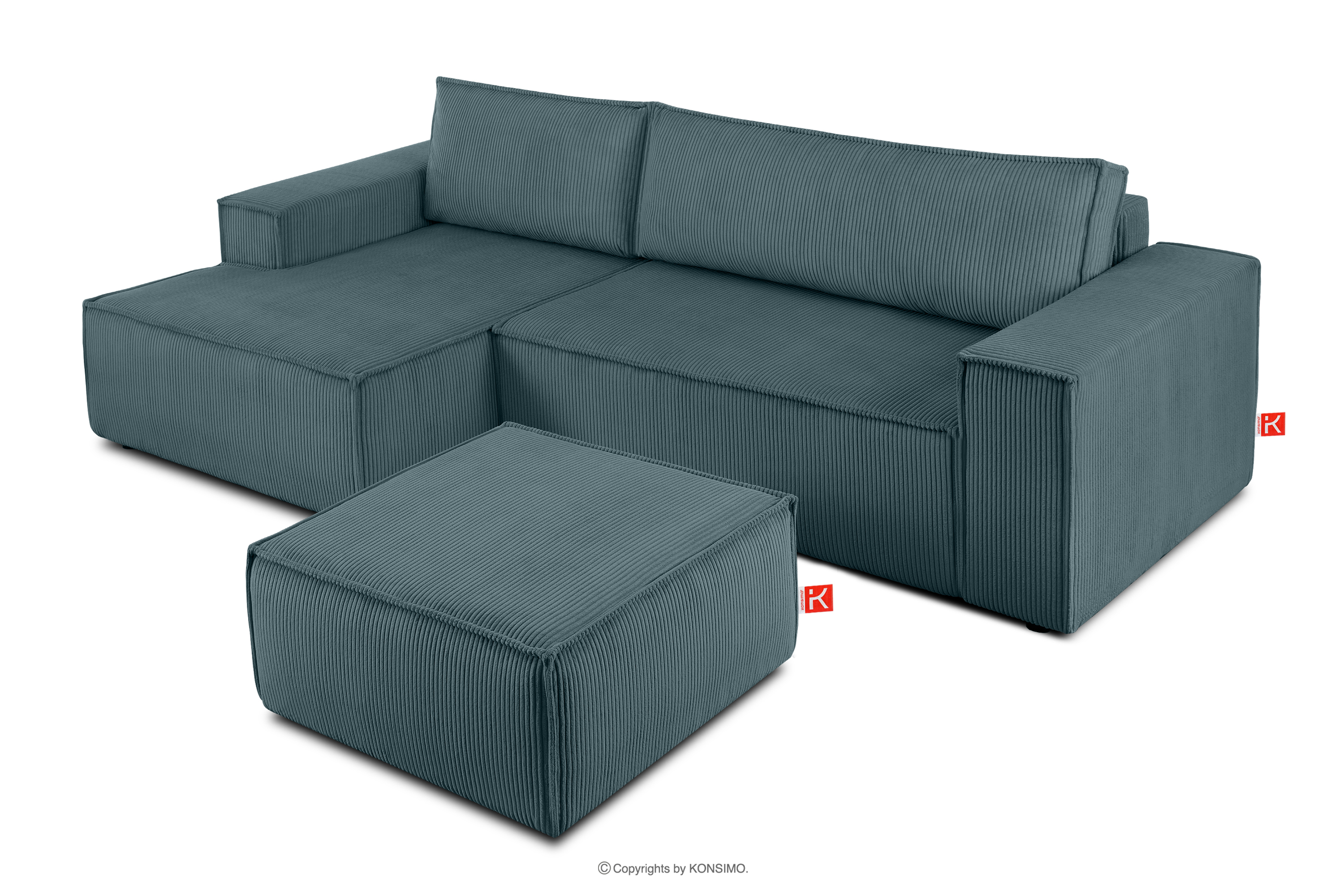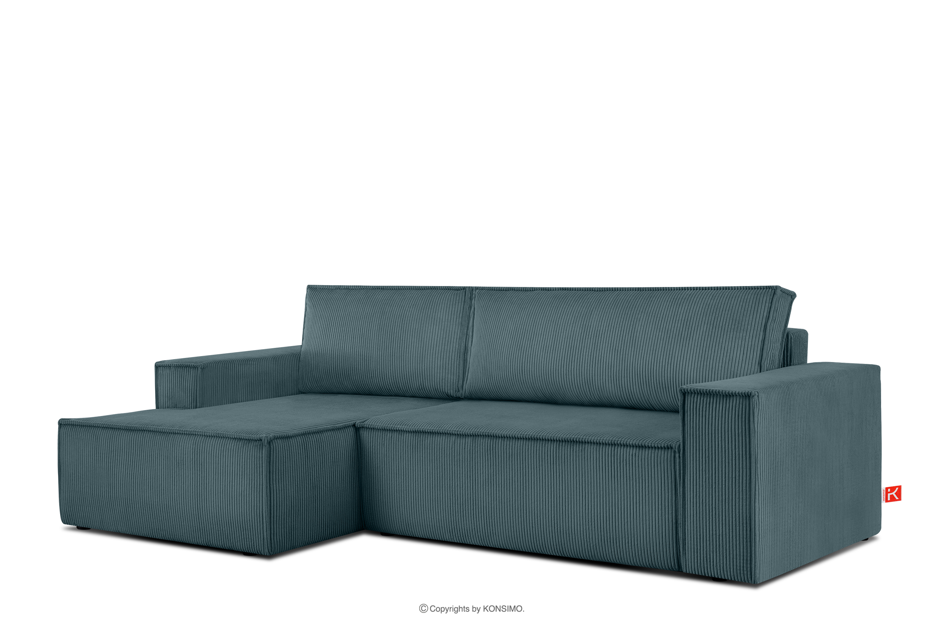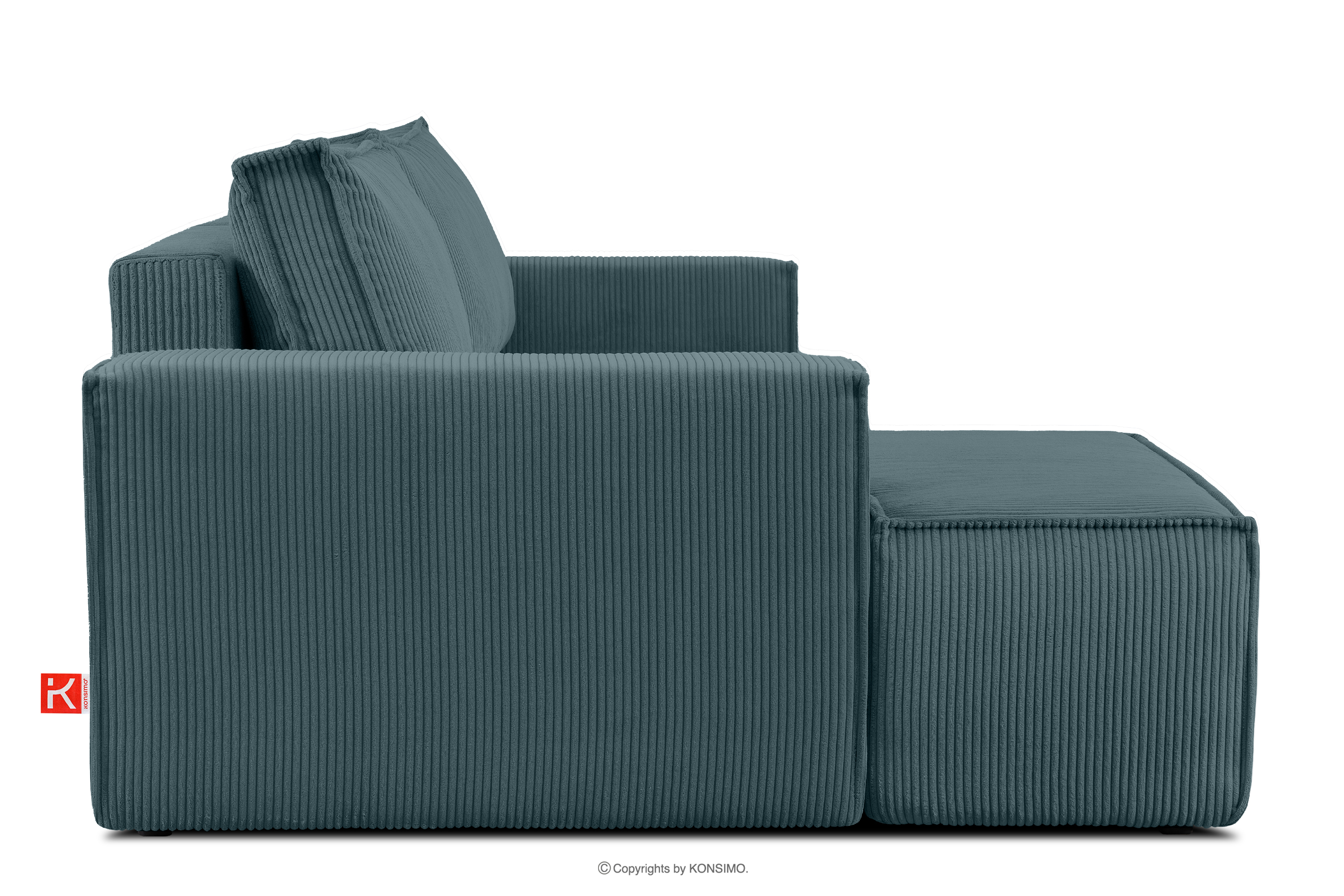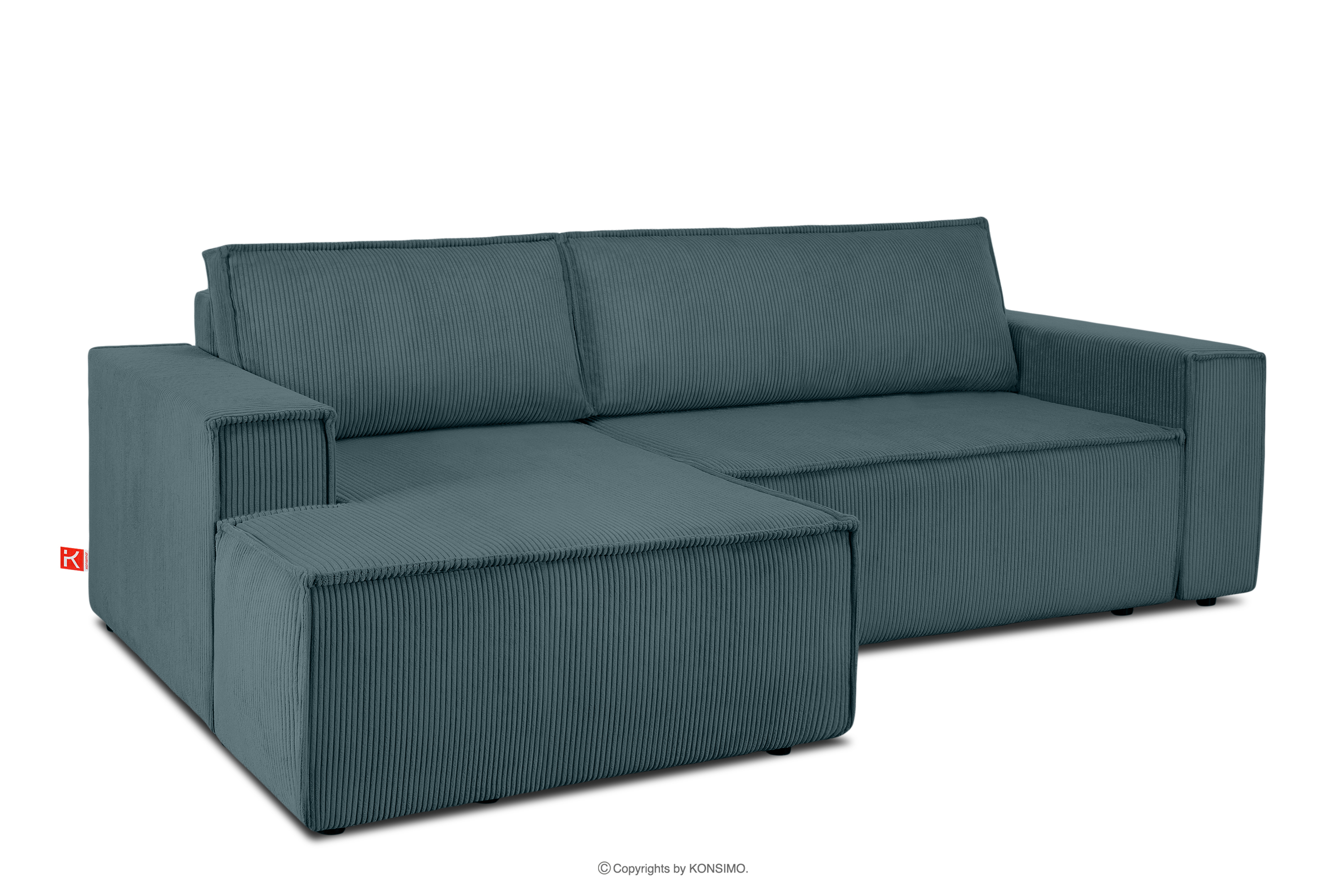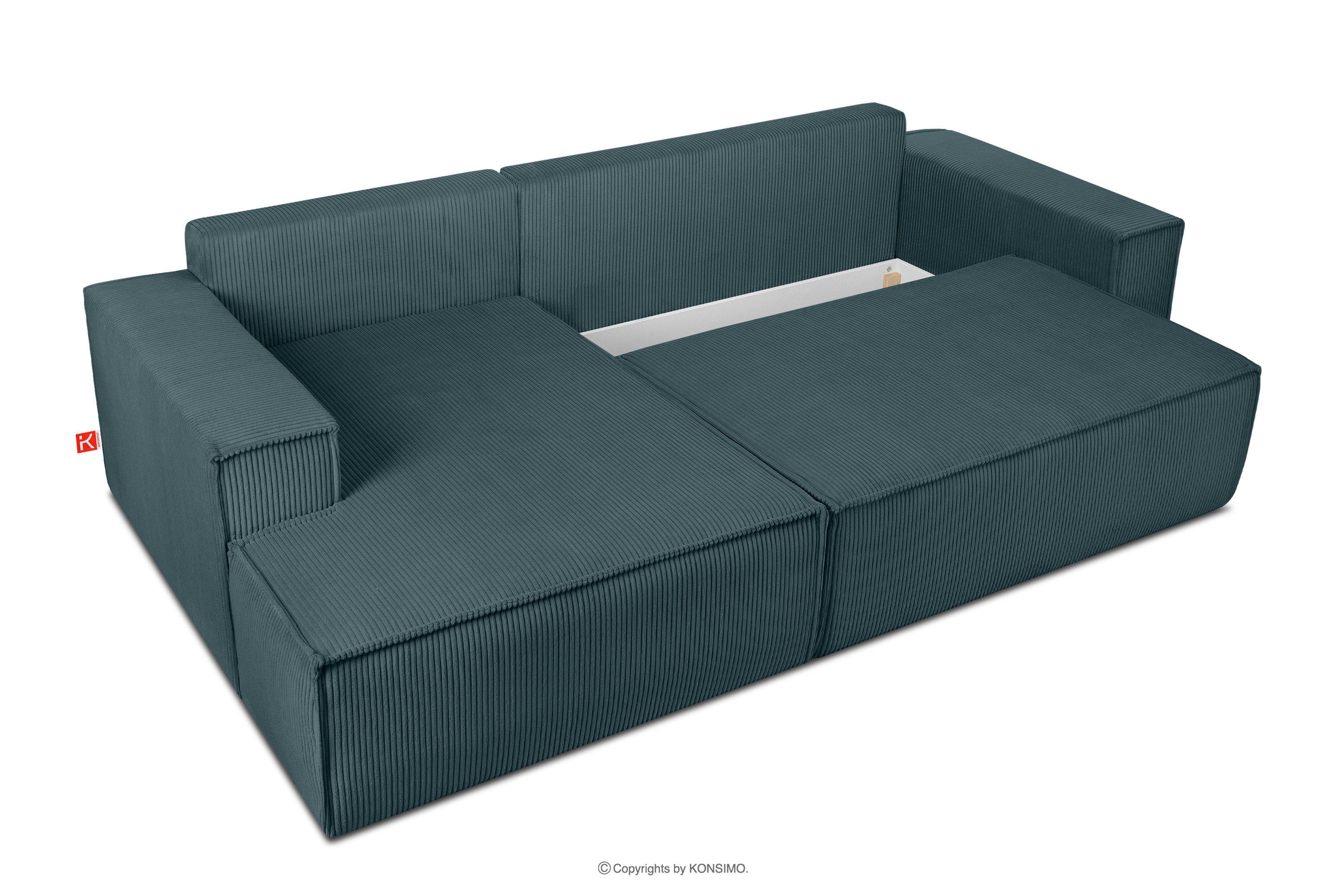NAPI Kordstoff-Ecksofa links fürs Wohnzimmer mit Schlaffunktion & Bettkasten in blaugrün