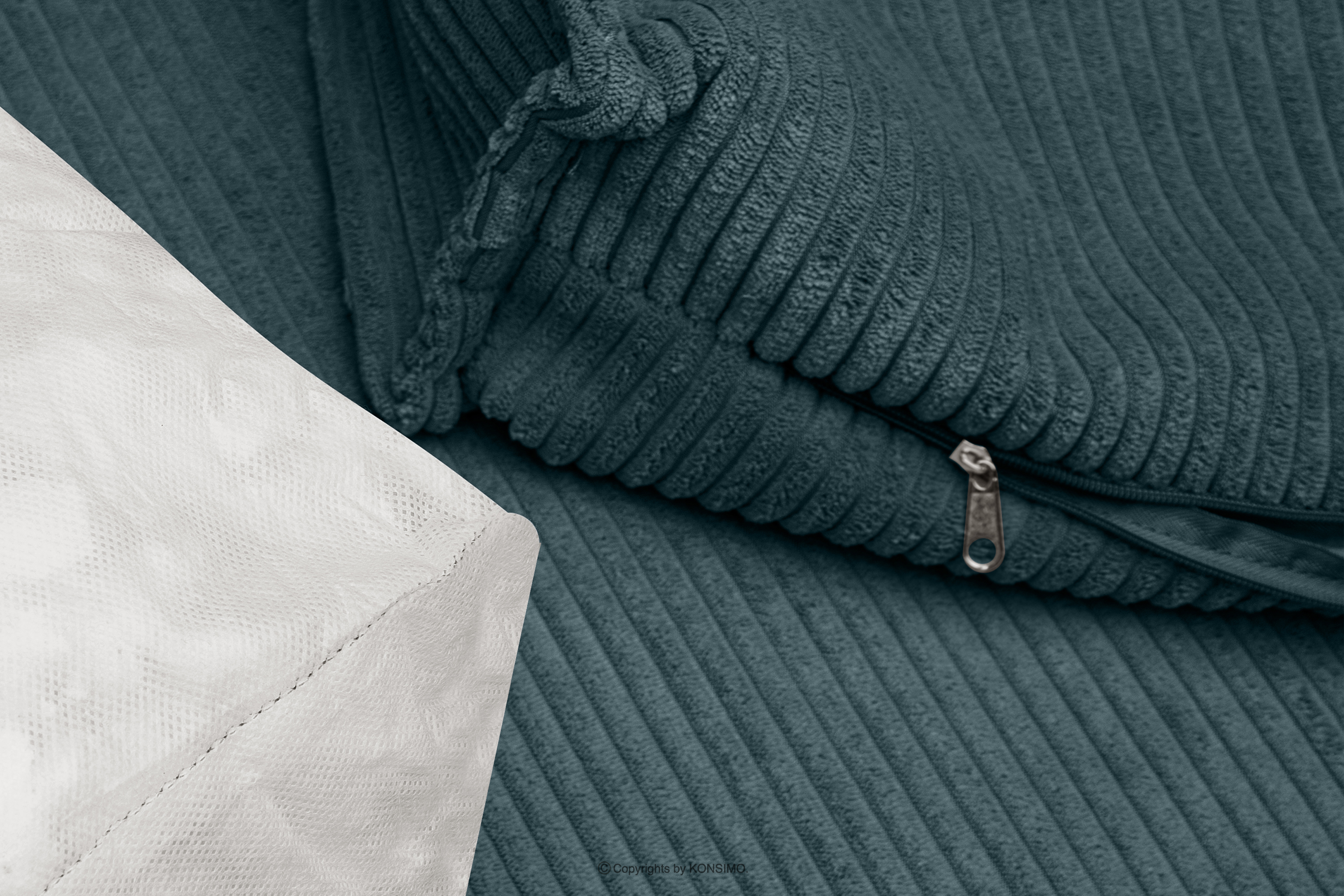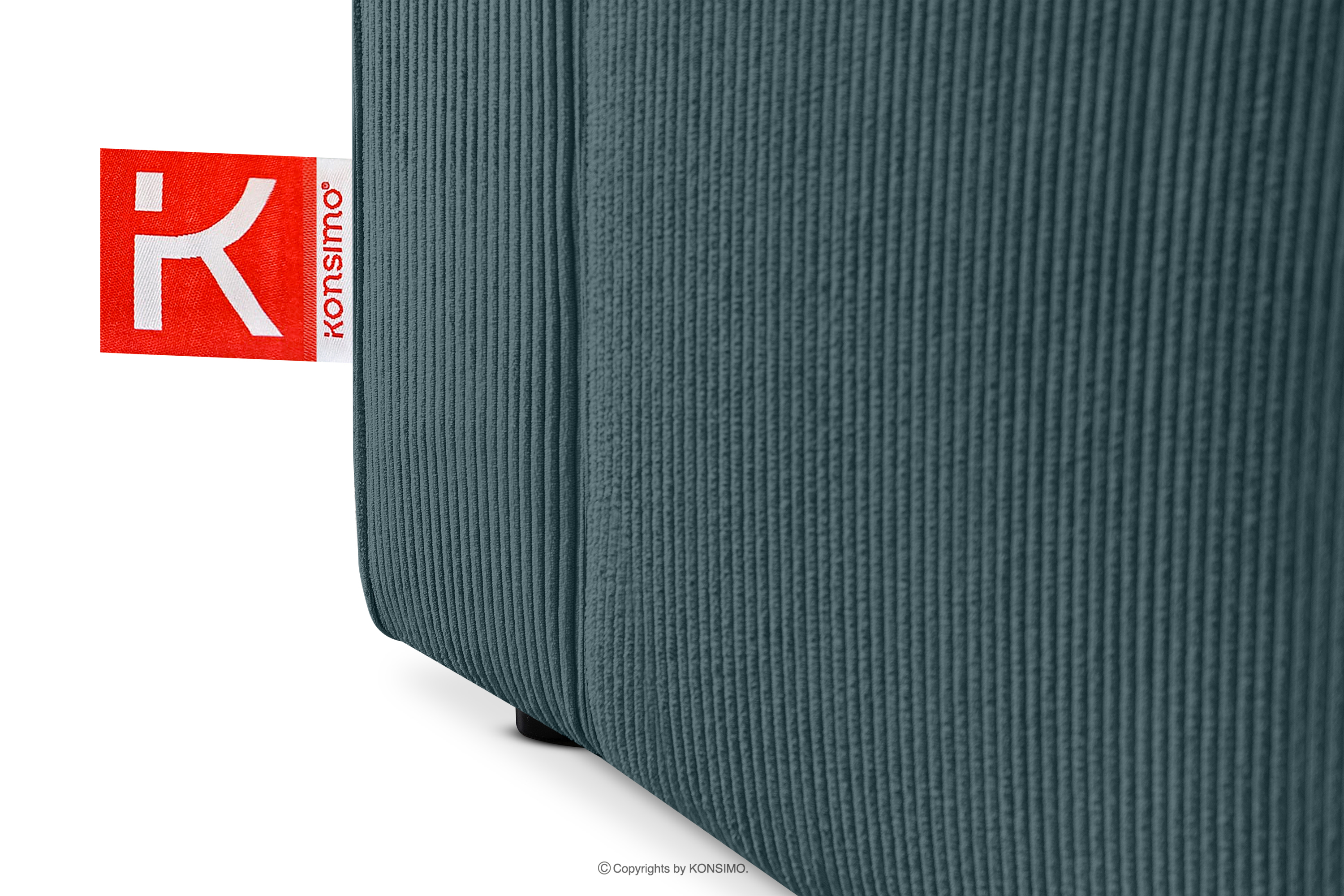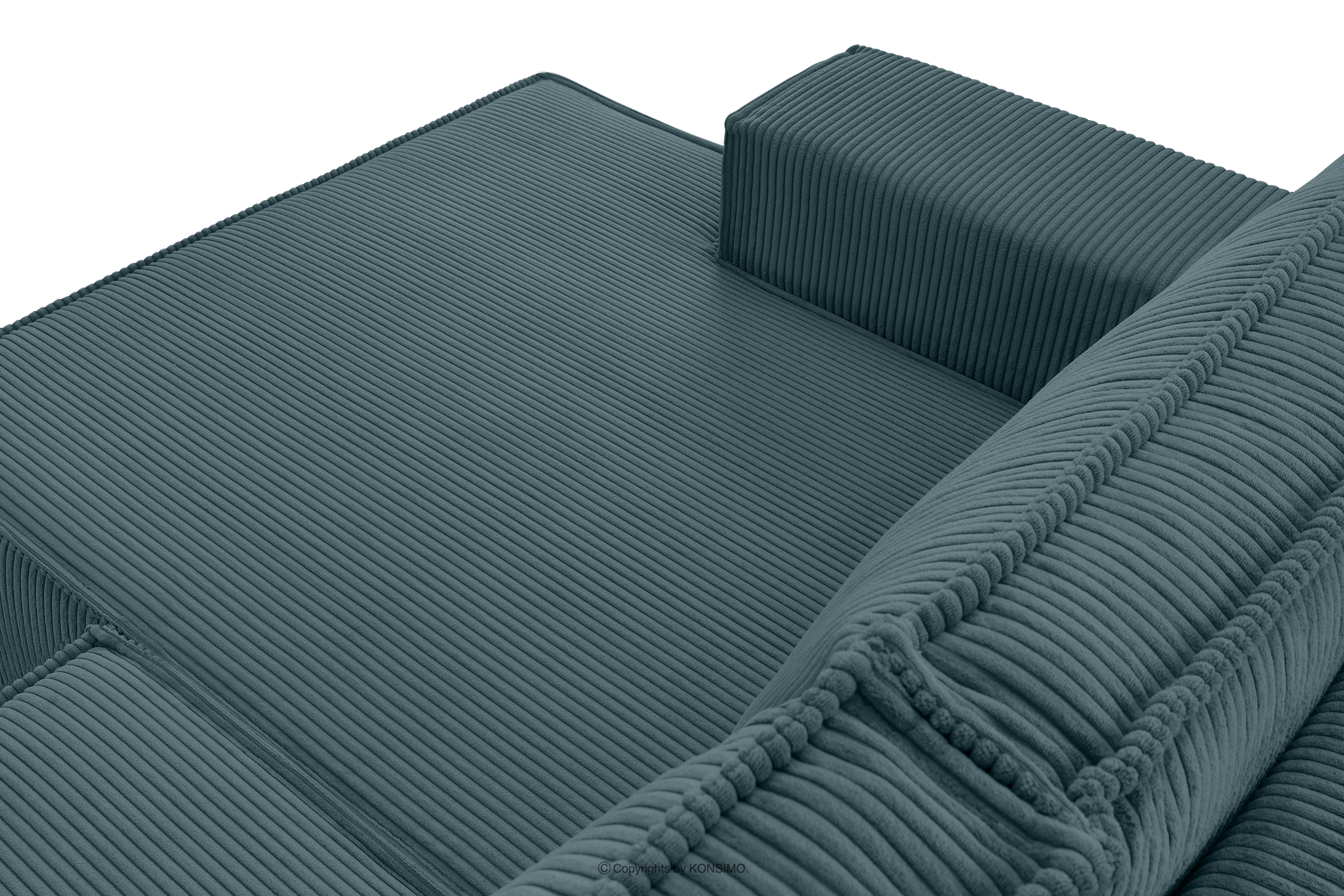Das blaue Kordstoff-Liegesofa für das Wohnzimmer zieht die Blicke auf sich und hebt sich so von anderen Möbeln ab. Die gesamte Polsterung dieses außergewöhnlichen Möbelstücks ist aus feinem Kordstoff gefertigt, der nicht nur einen angenehmen Komfort, sondern auch eine lang anhaltende, makellose Ästhetik garantiert. Mit diesem Stoff sieht Ihre NAPI-Ecke immer perfekt aus, unabhängig von der Zeit und den Bedingungen der Nutzung.