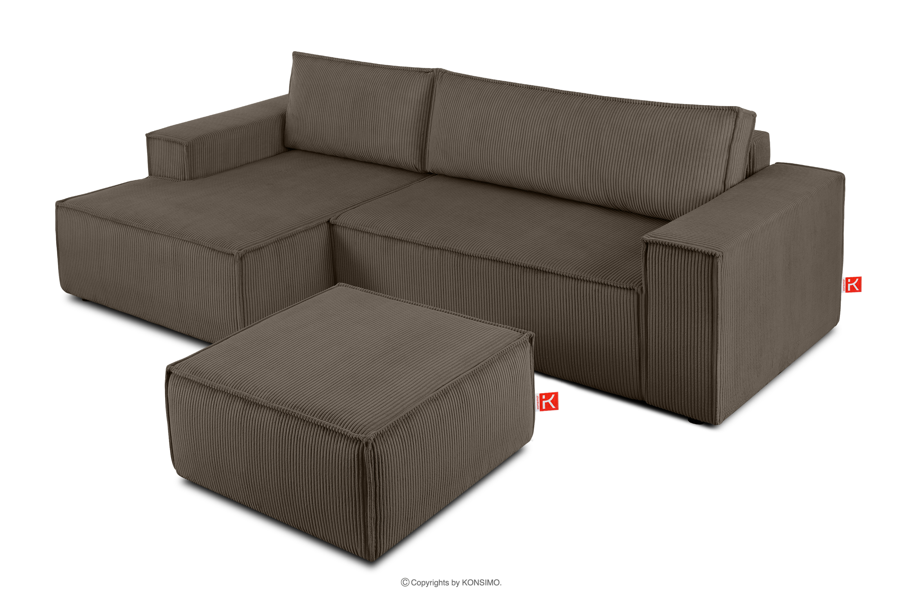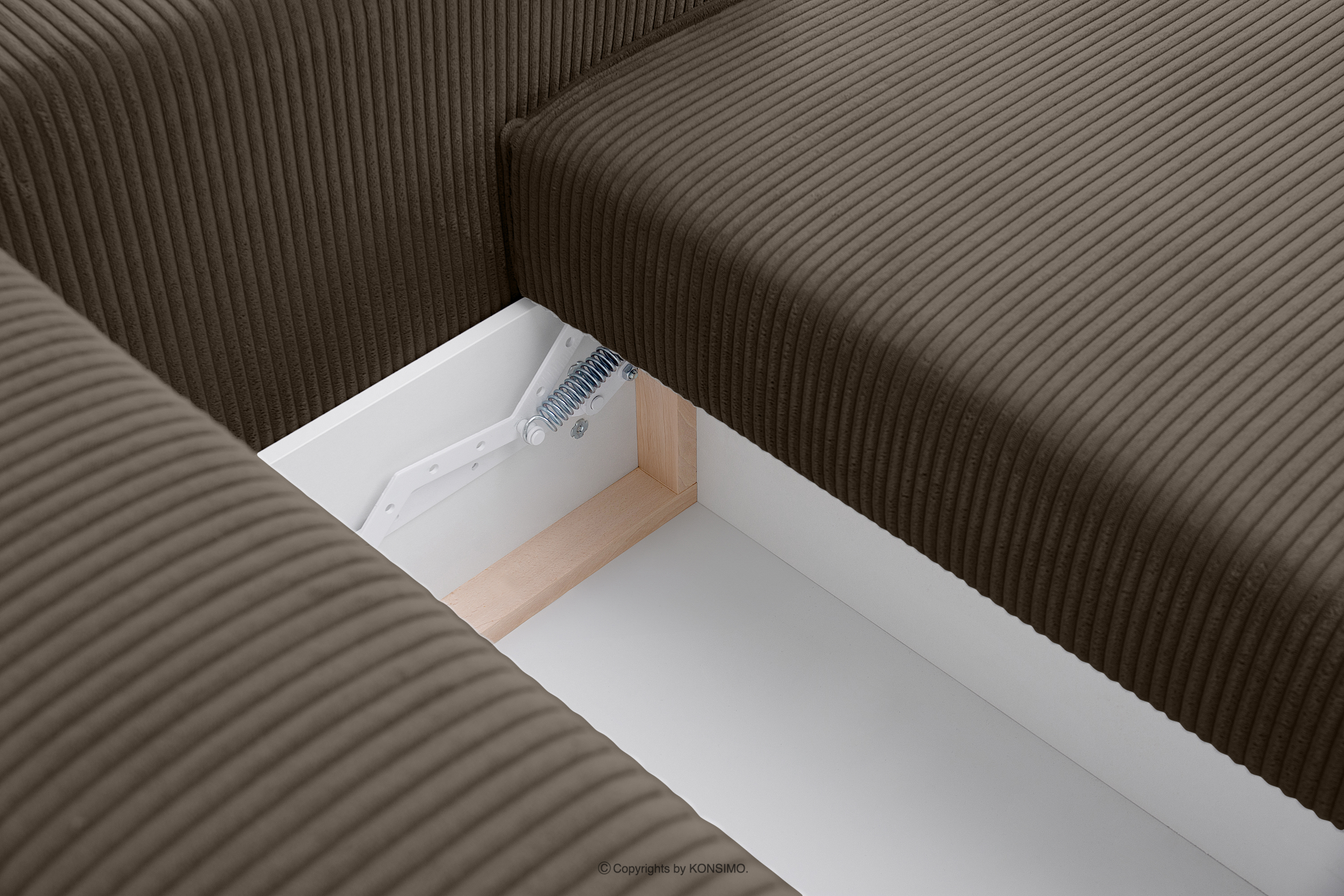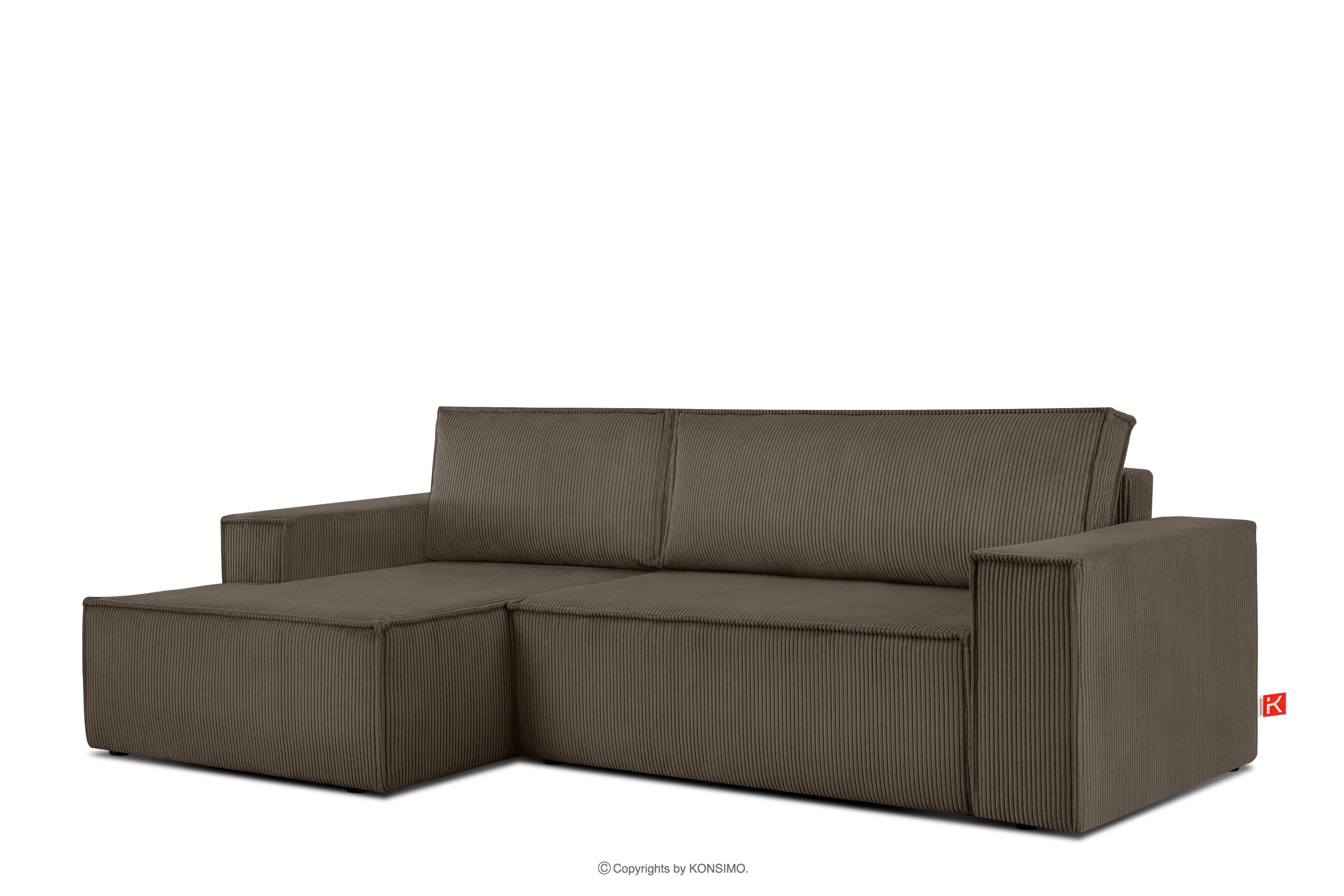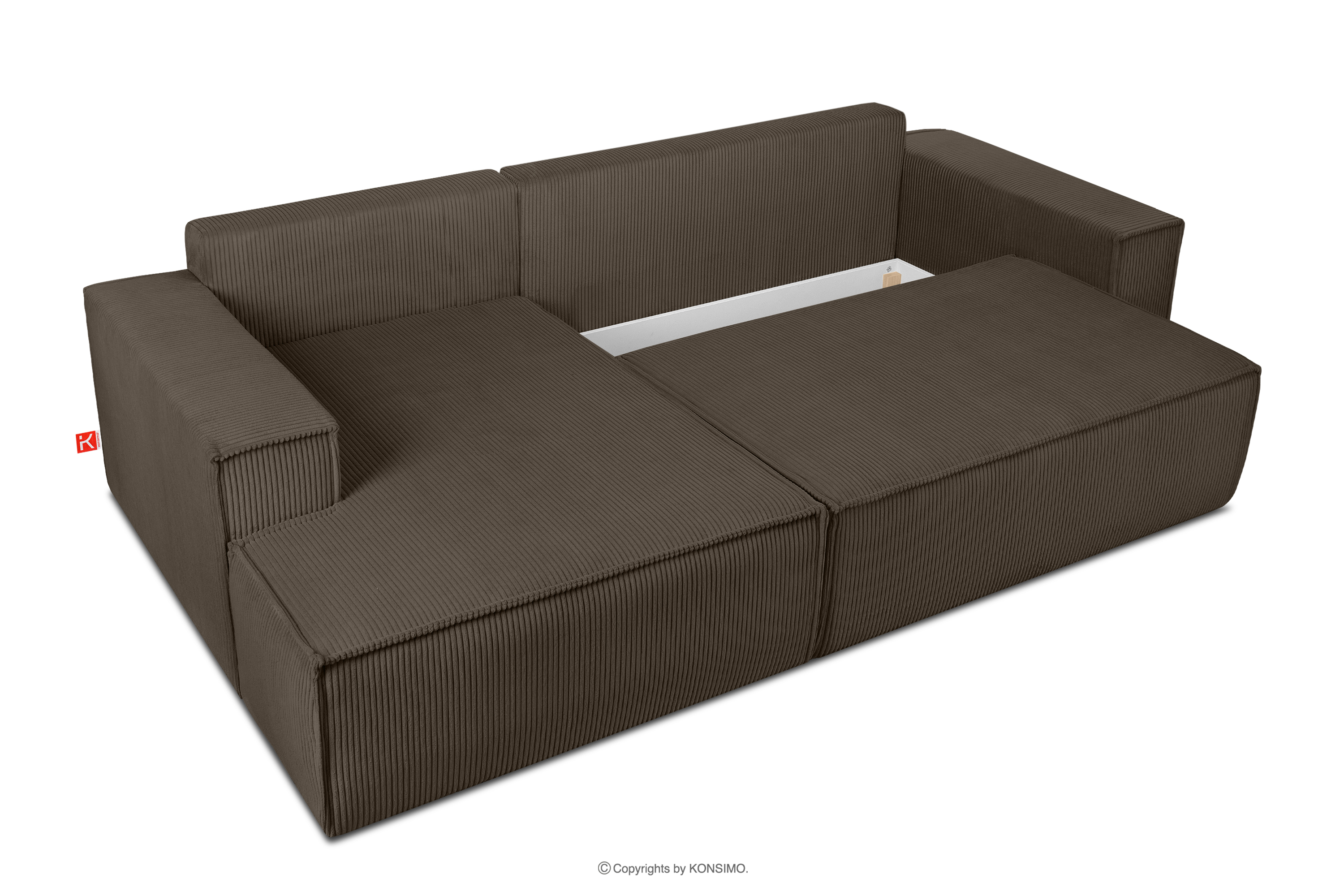 NAPI Kordstoff-Ecksofa links fürs Wohnzimmer mit Schlaffunktion & Bettkasten in braun