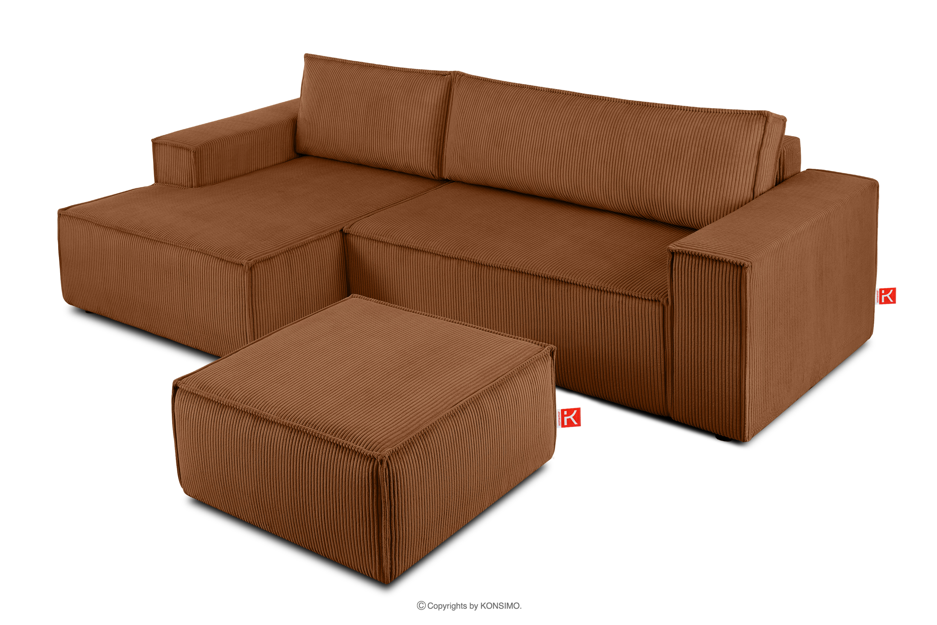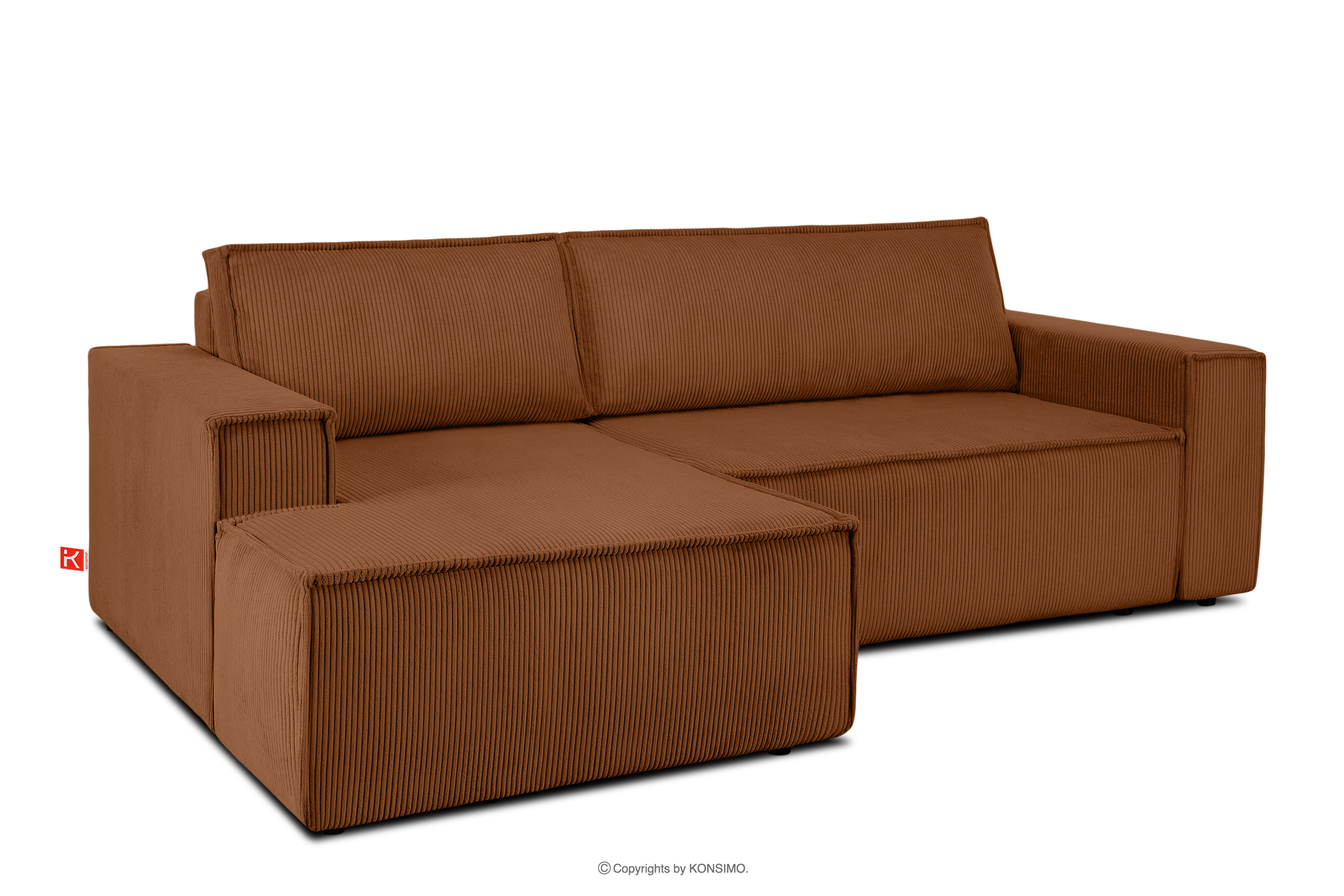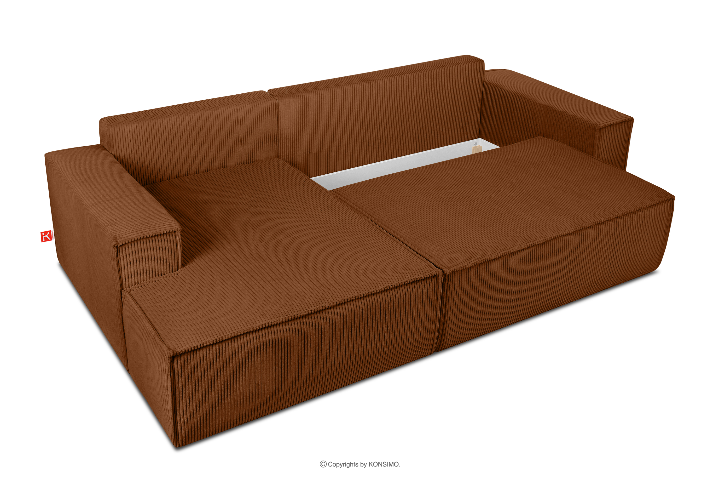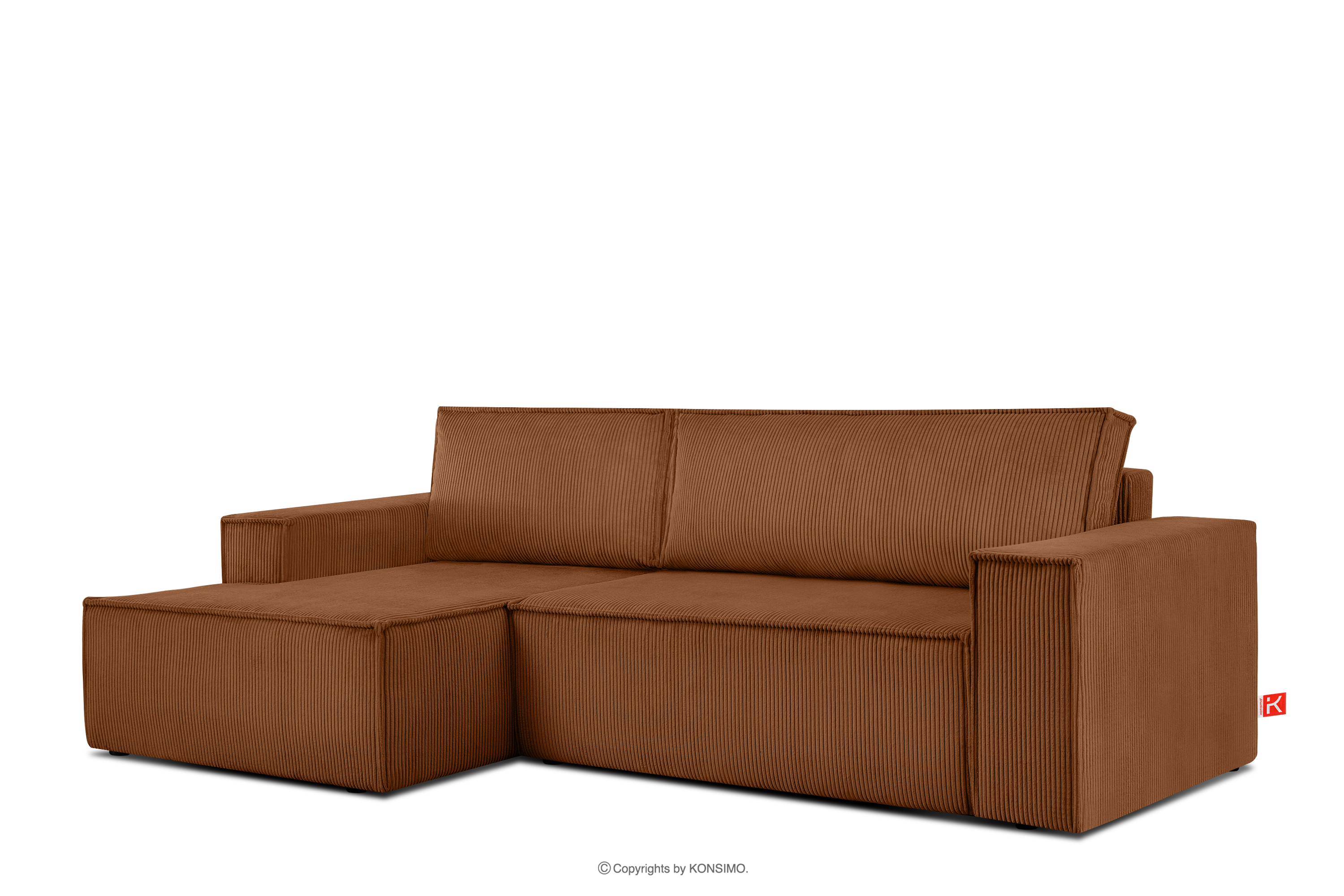 NAPI Kordstoff-Ecksofa links fürs Wohnzimmer mit Schlaffunktion & Bettkasten in rot