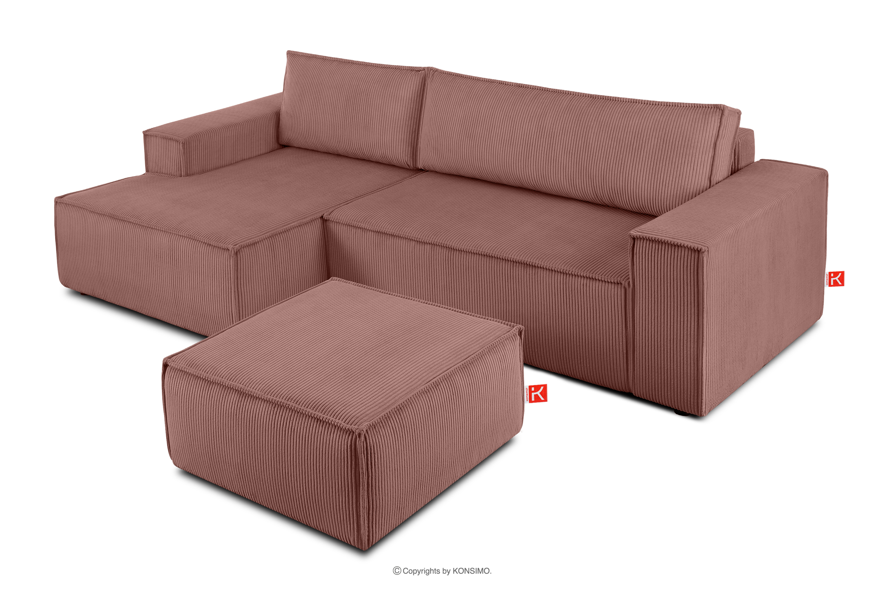 NAPI Kordstoff-Ecksofa links fürs Wohnzimmer mit Schlaffunktion für Wohnzimmer in rosa