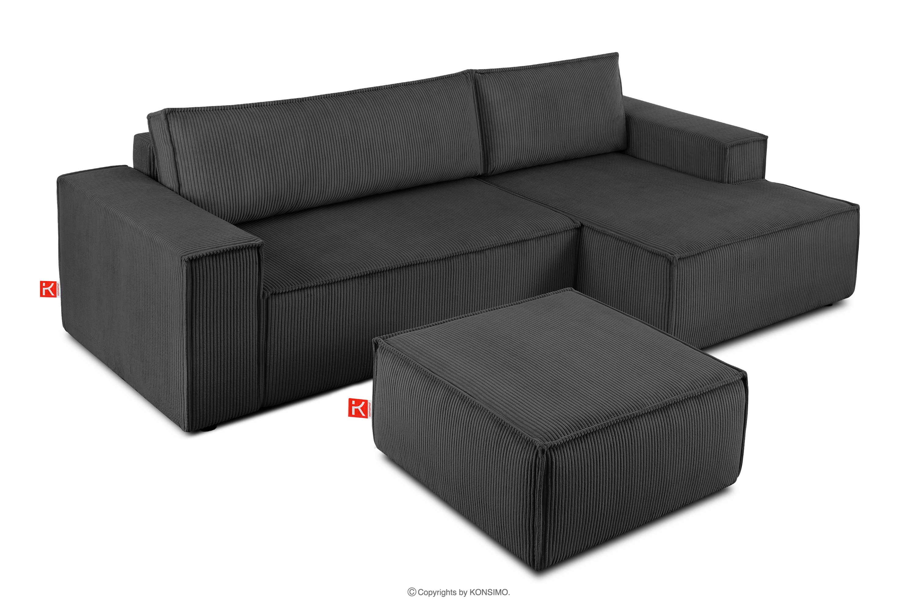 Kordstoff-Ecksofa rechts mit Schlaffunktion & Bettkasten in dunkelgrau NAPI - Farbe dunkelgrau