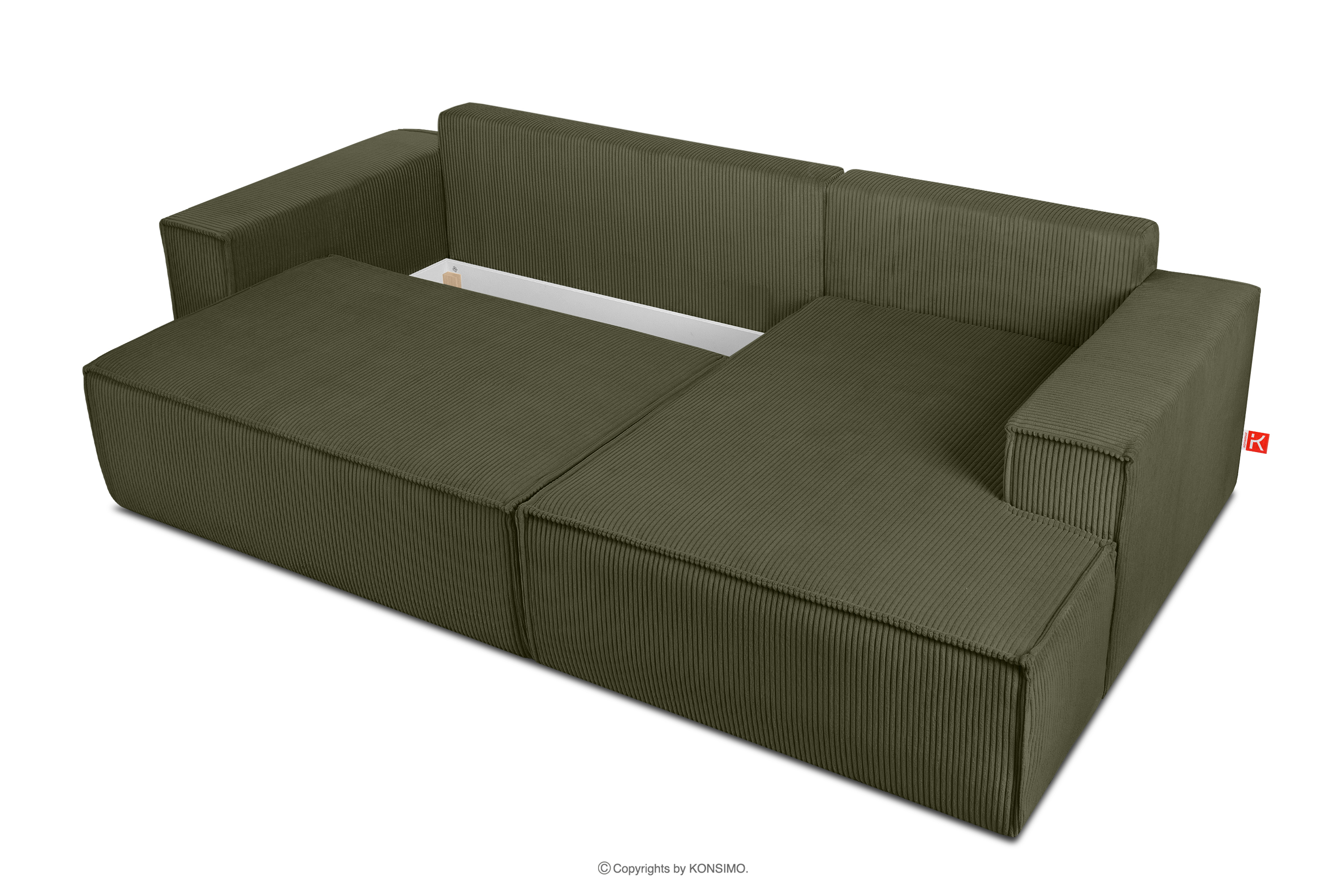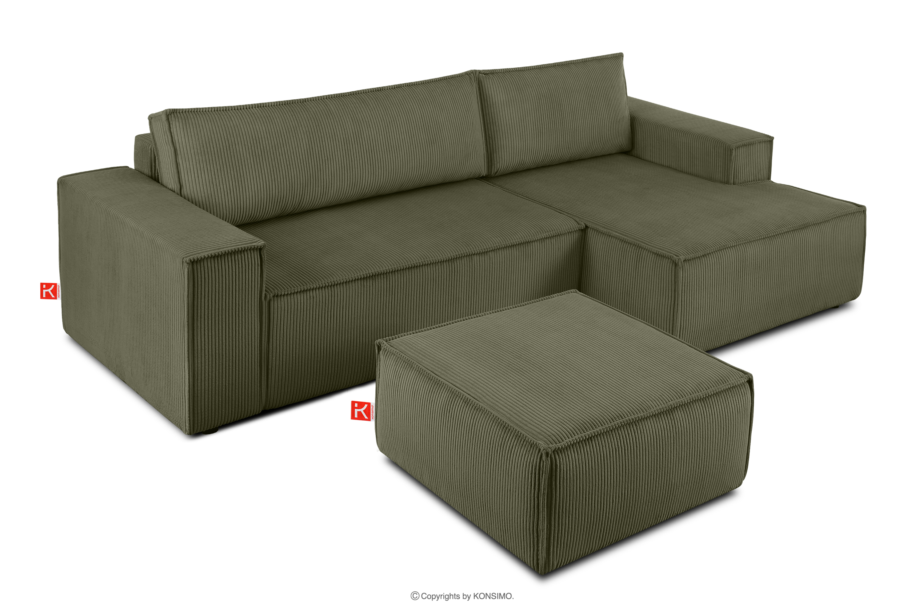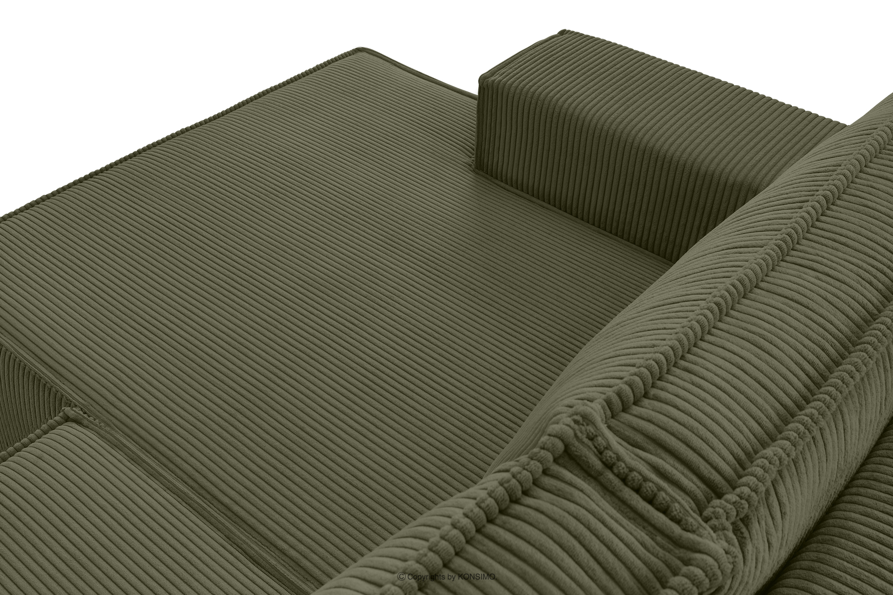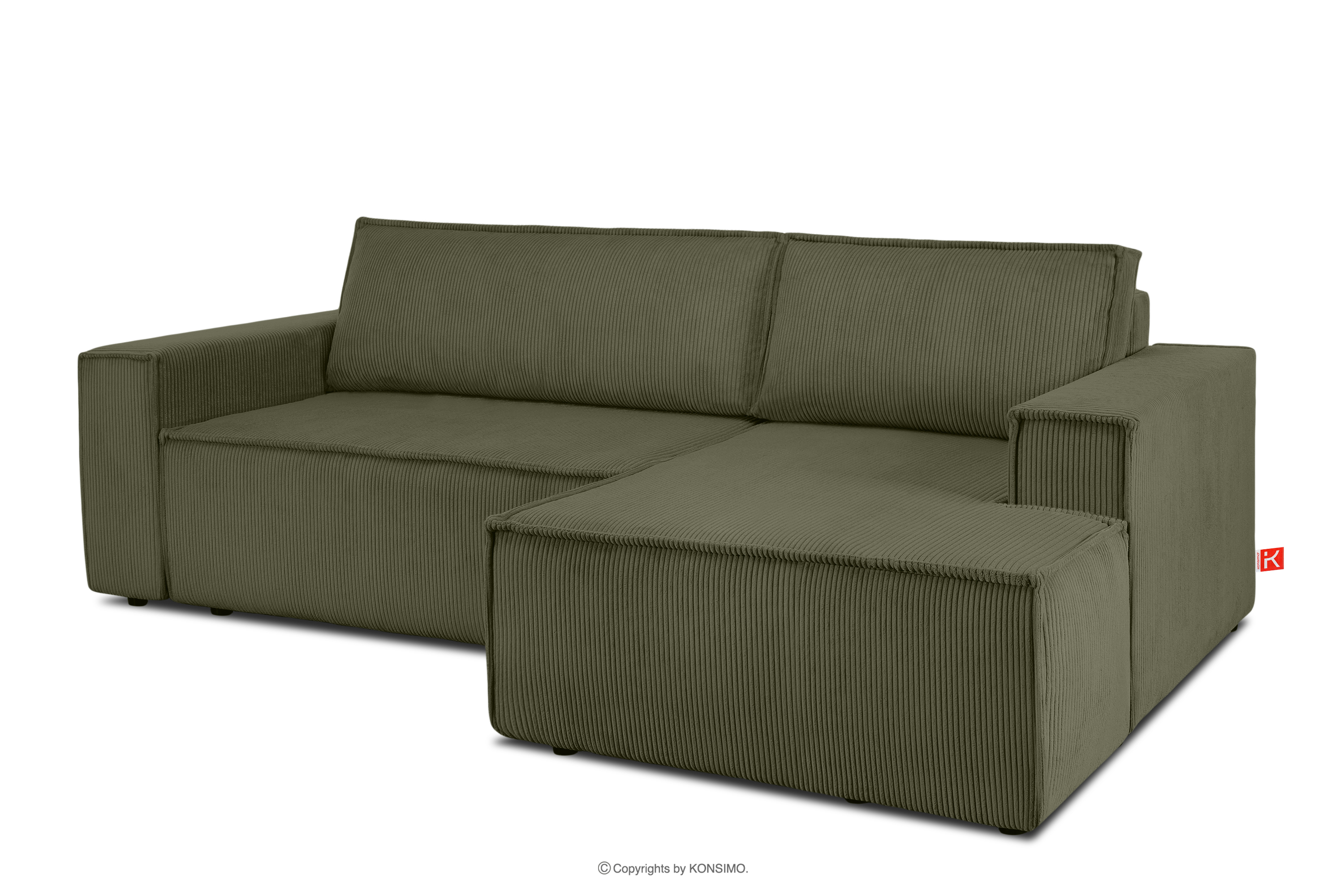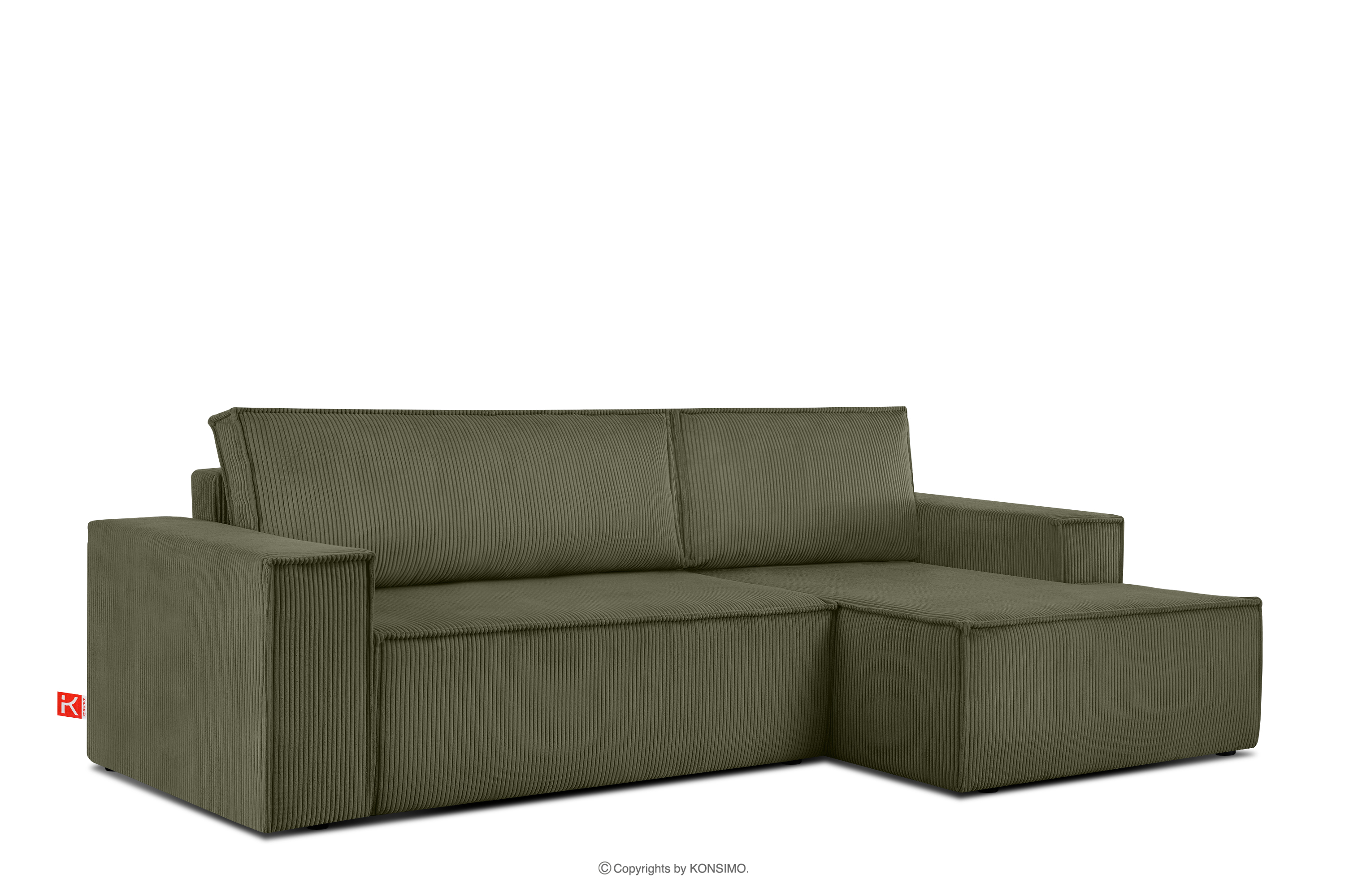 NAPI Kordstoff-Ecksofa rechts mit Schlaffunktion & Bettkasten in olivgrün