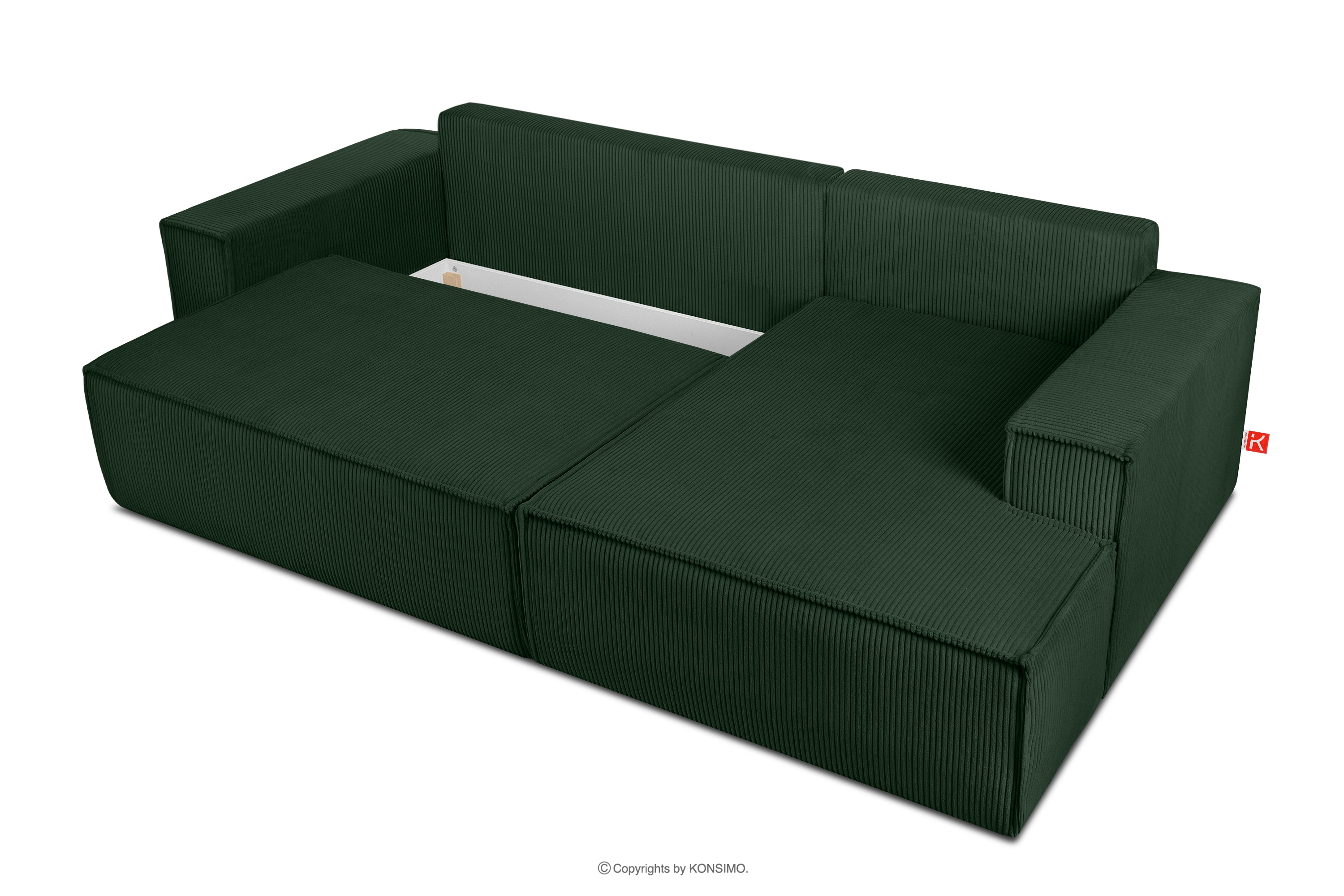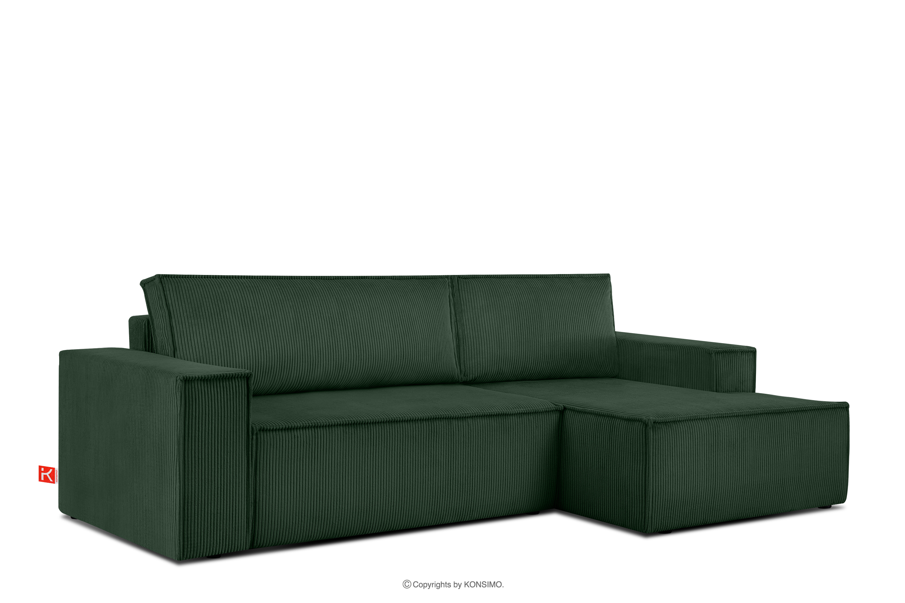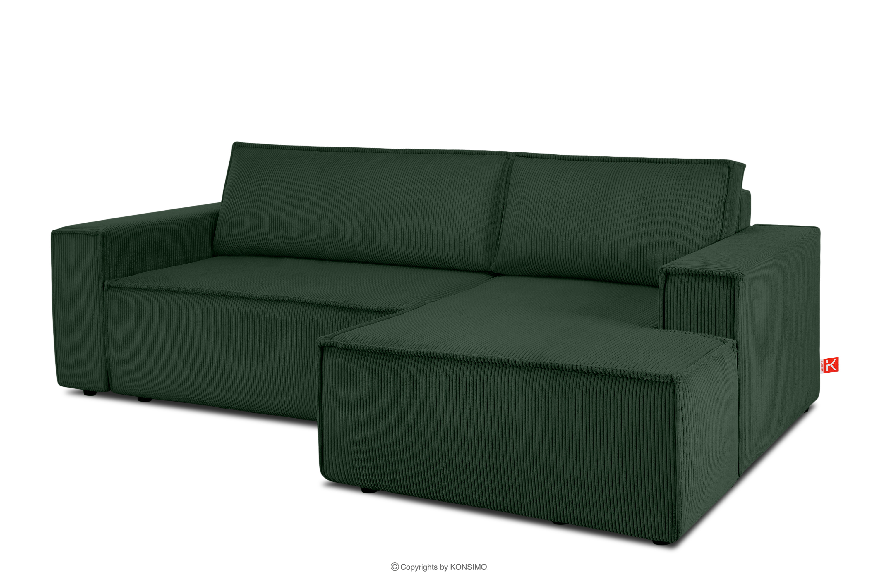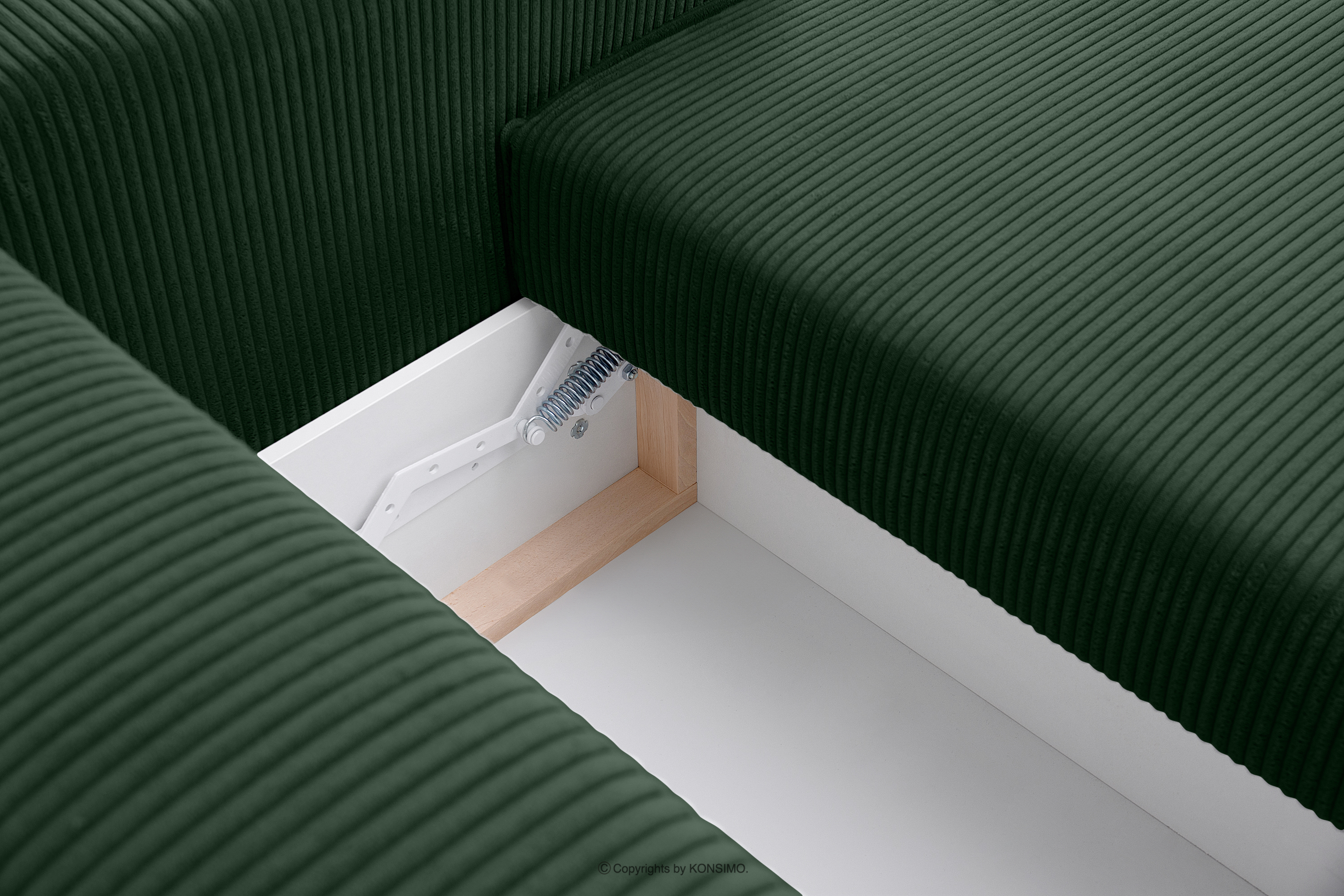 NAPI Kordstoff-Ecksofa rechts mit Schlaffunktion & Bettkasten in dunkelgrün