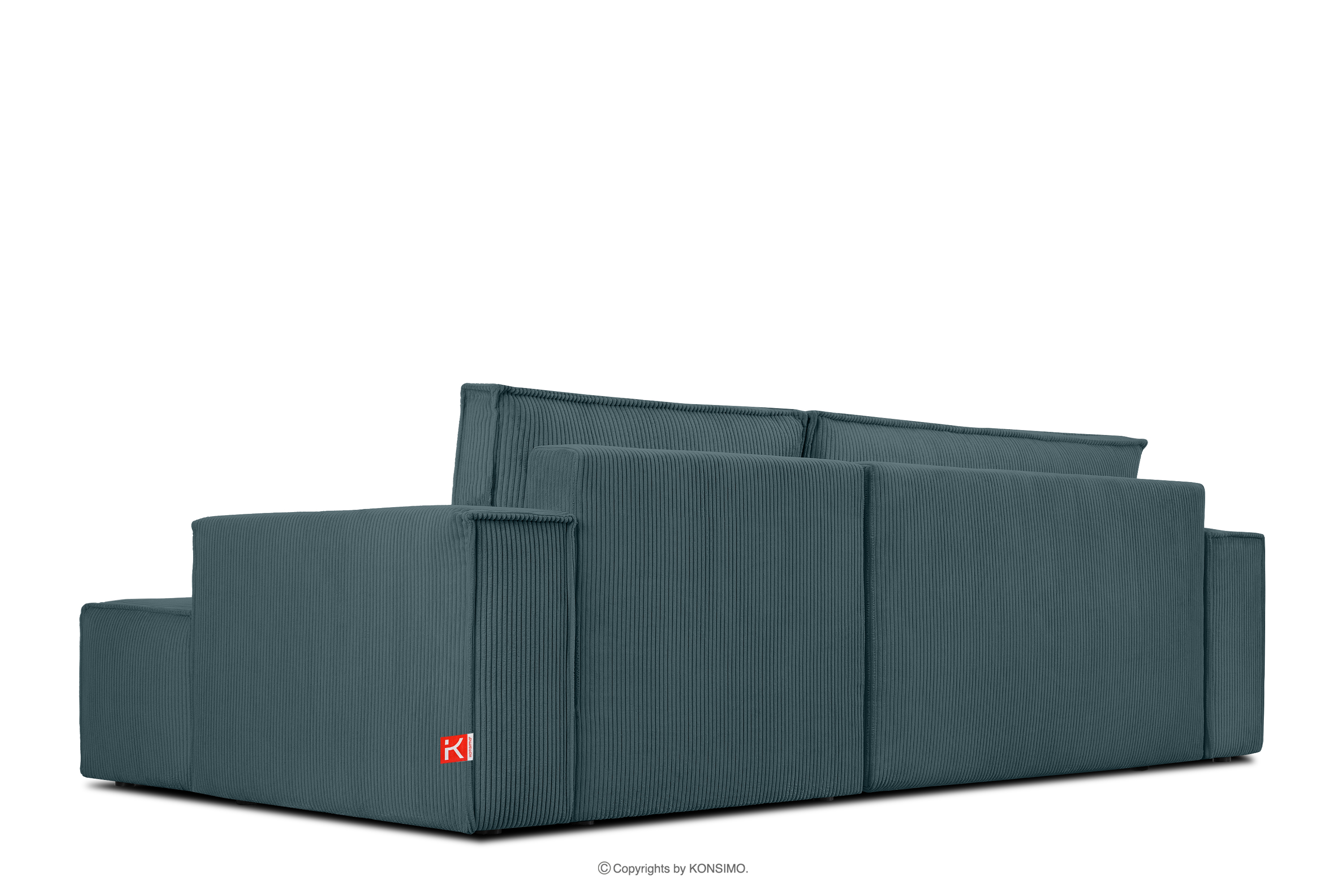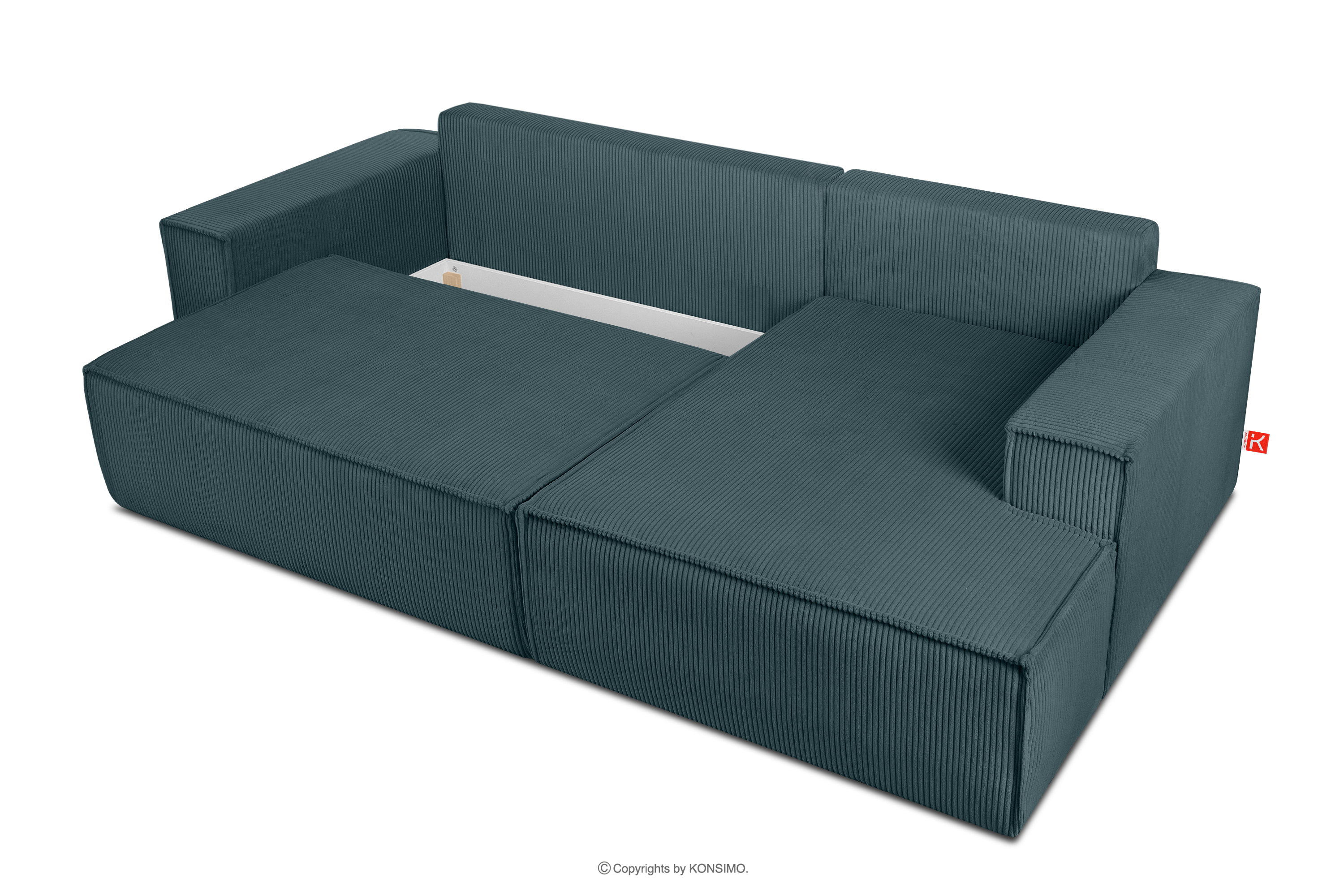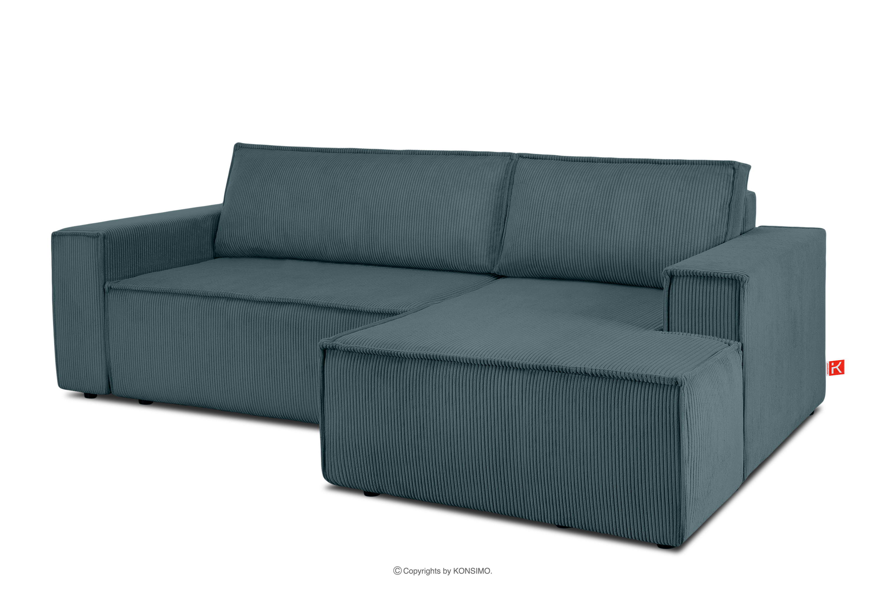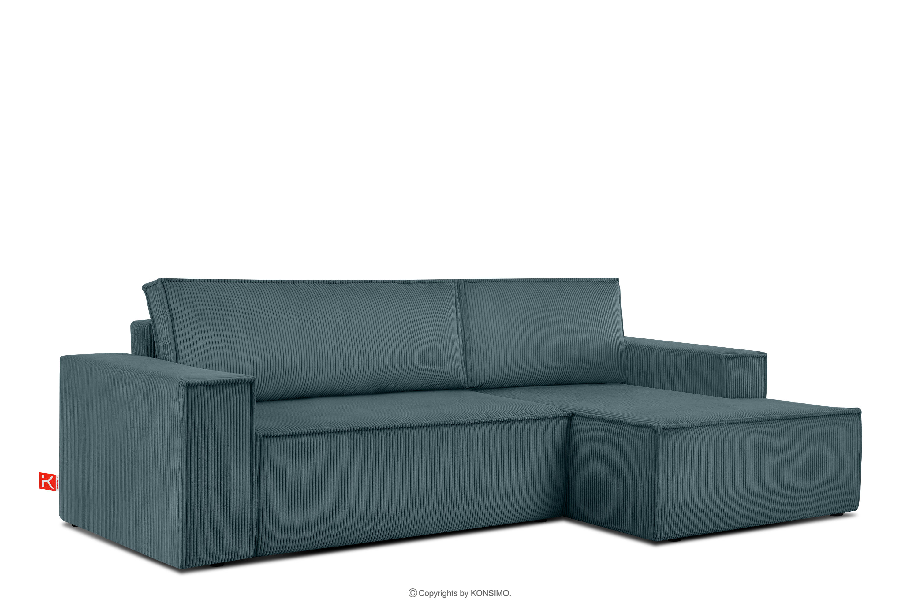 NAPI Kordstoff-Ecksofa rechts mit Schlaffunktion & Bettkasten in blau