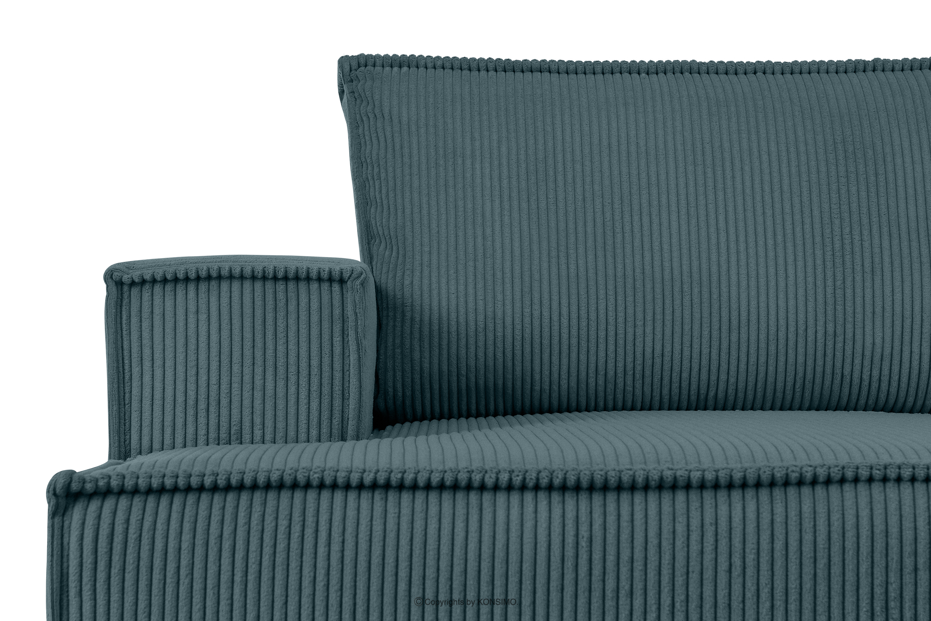 Das aufklappbare Ecksofa mit Bettkasten aus blauem Kordstoff zieht die Blicke auf sich und hebt sich so von anderen Möbeln ab. Die gesamte Polsterung dieses außergewöhnlichen Möbelstücks besteht aus feinem Kordstoff, der nicht nur einen angenehmen Sitzkomfort, sondern auch eine lang anhaltende, makellose Ästhetik garantiert. Mit diesem Stoff sieht Ihre NAPI-Ecke immer perfekt aus, unabhängig von der Zeit und den Bedingungen der Nutzung.