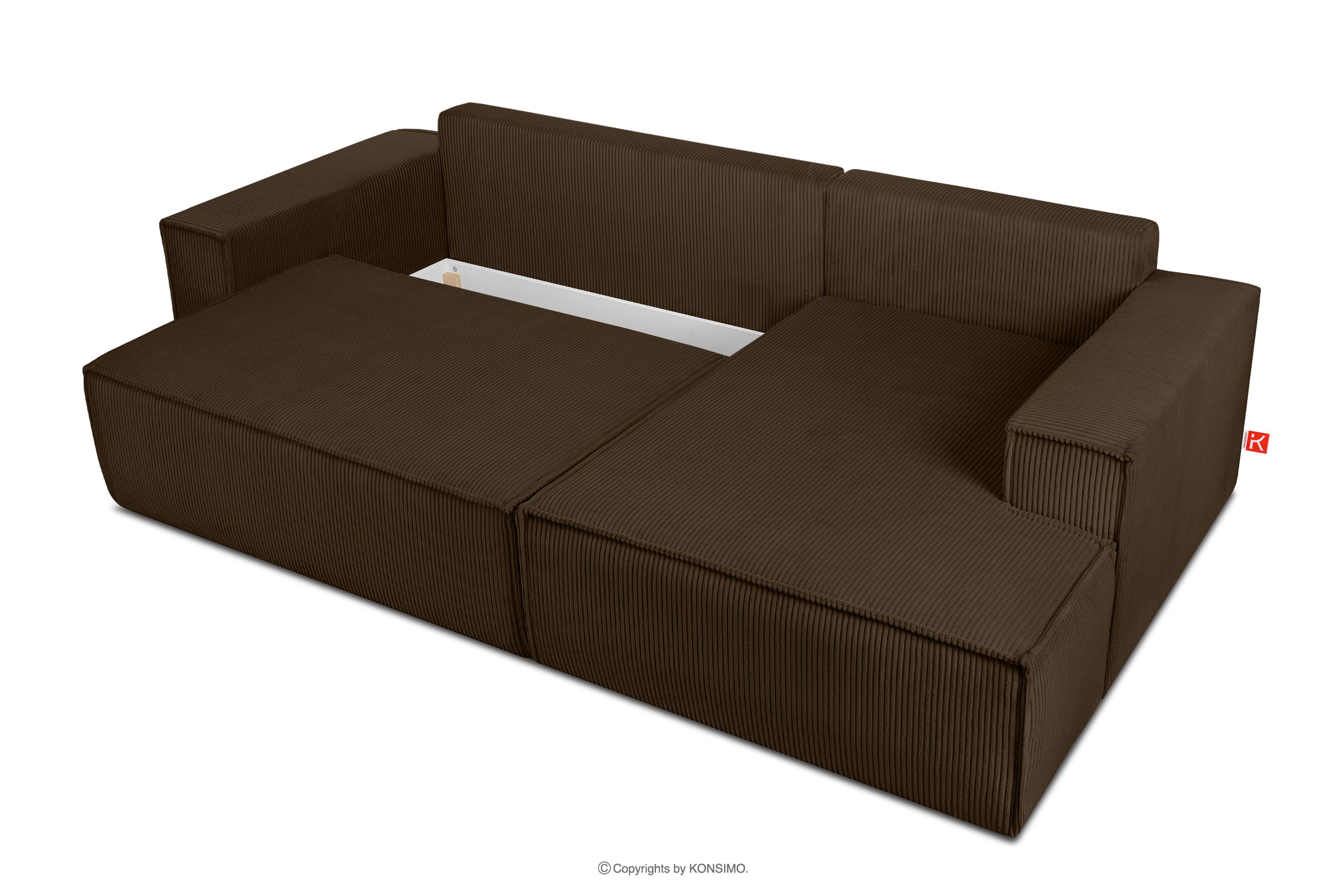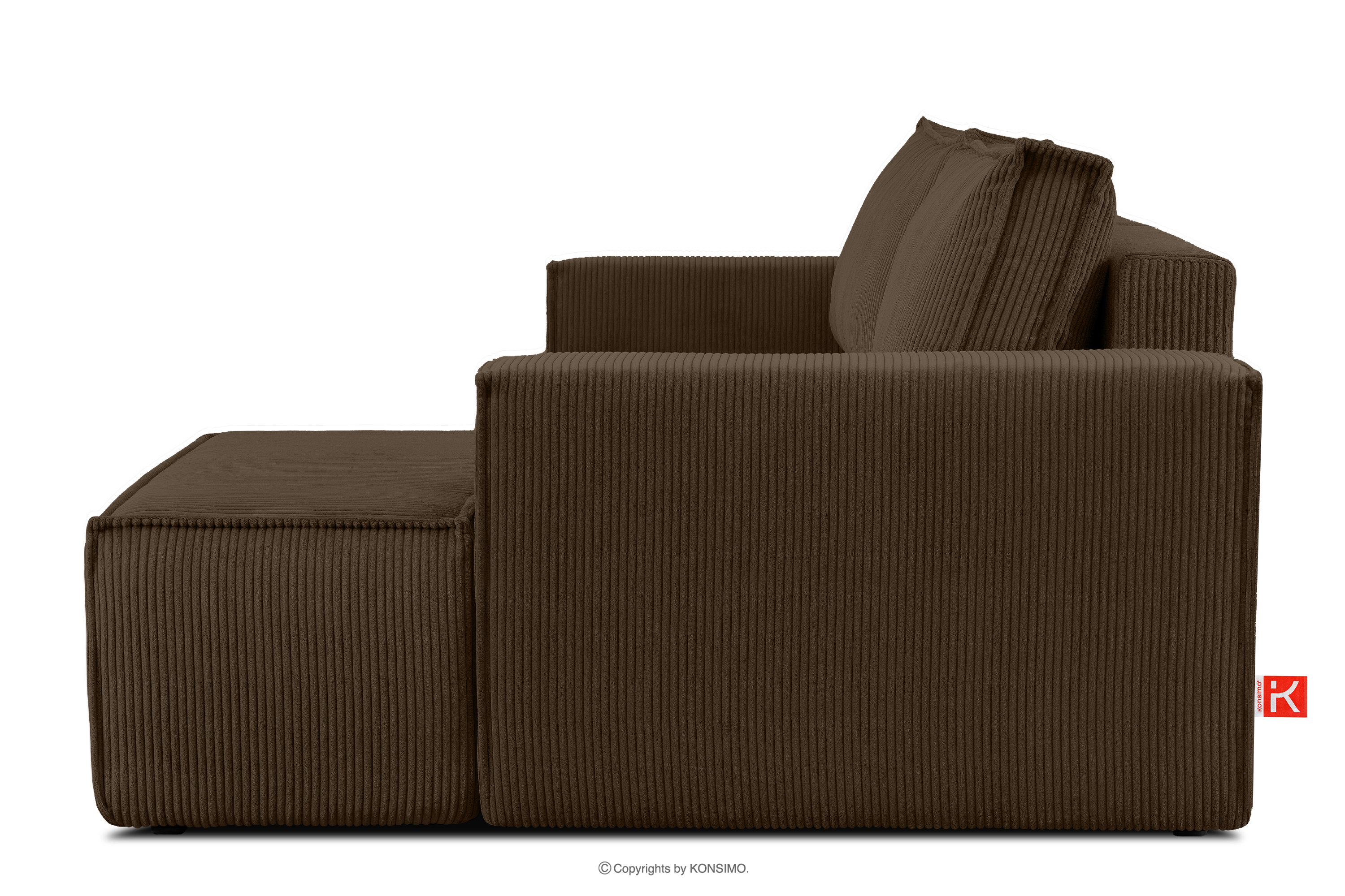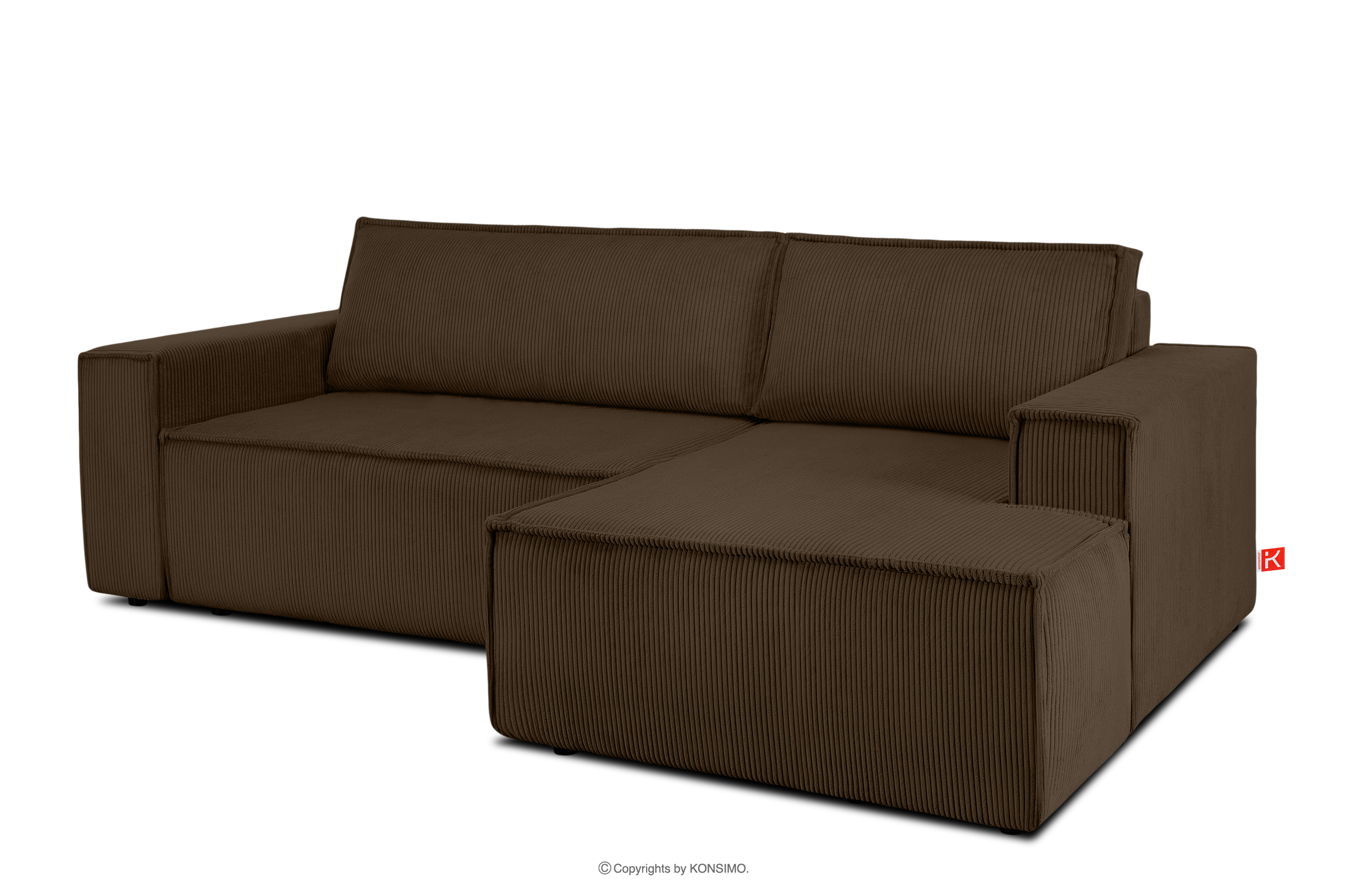 NAPI Kordstoff-Ecksofa rechts mit Schlaffunktion & Bettkasten in dunkelbraun