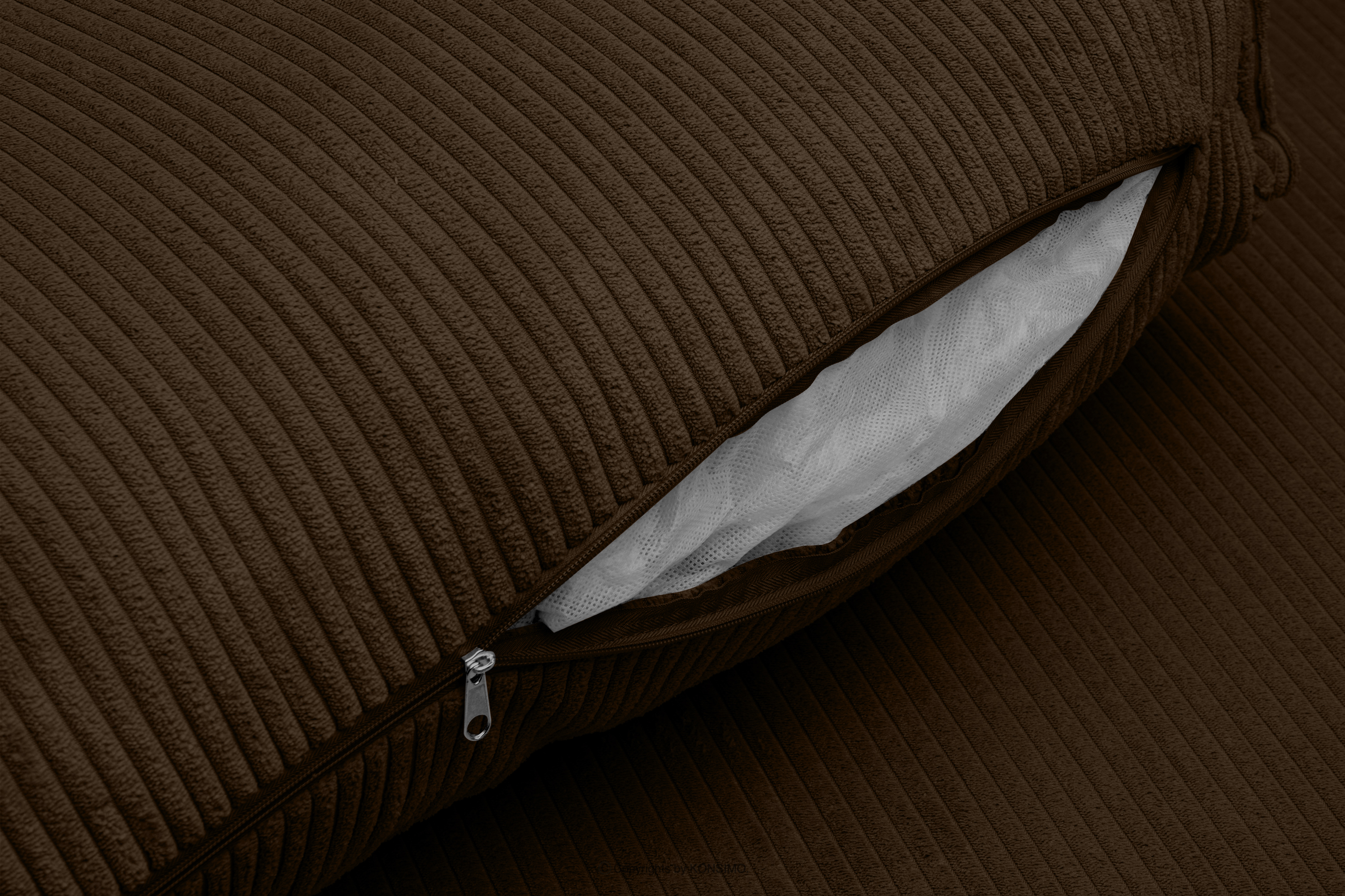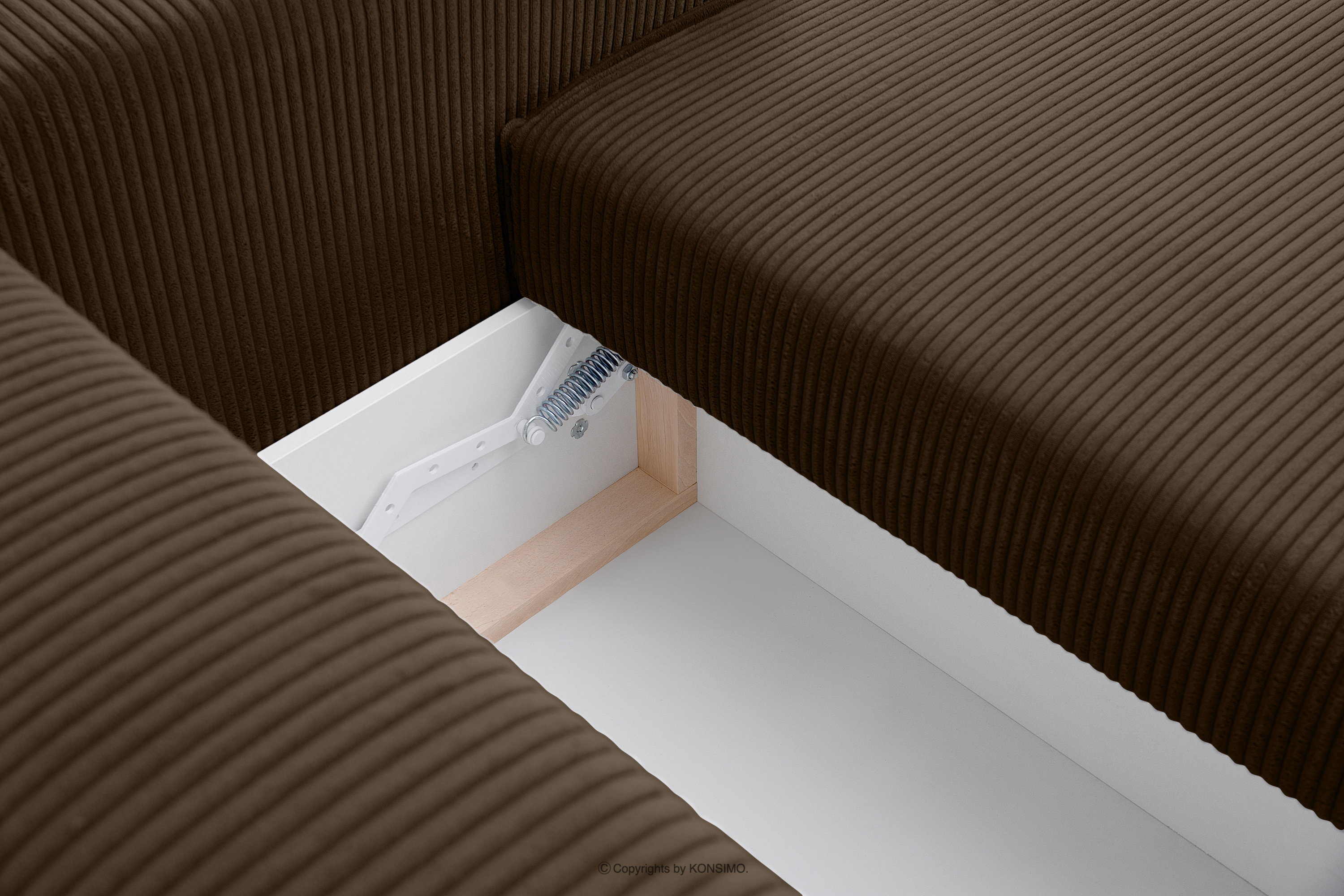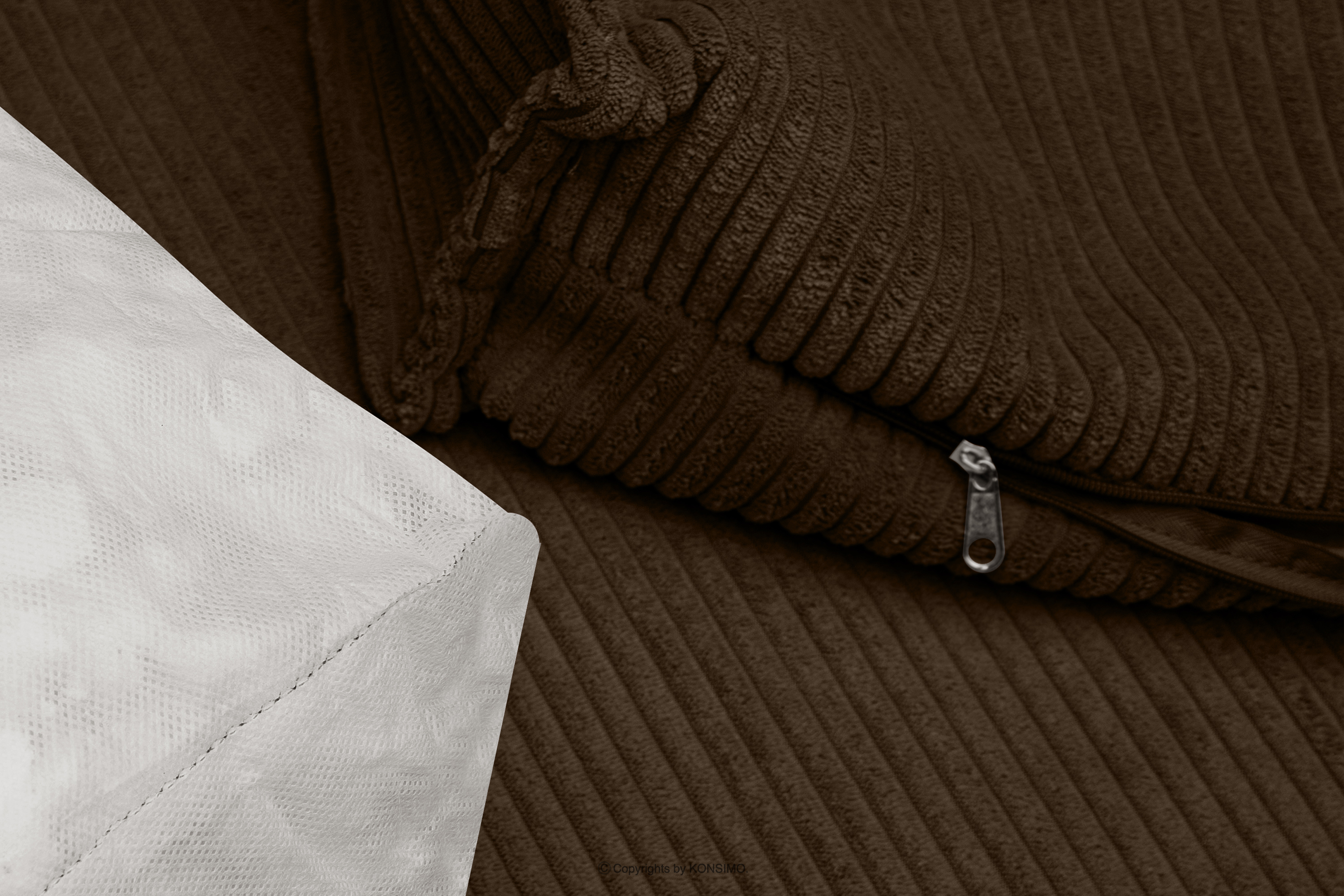 Das klappbare Ecksofa mit Bettkasten aus dunkelbraunem Kordstoff zieht die Blicke auf sich und hebt sich so von anderen Möbeln ab. Die gesamte Polsterung dieses einzigartigen Möbelstücks ist aus feinem Kordstoff gefertigt, der nicht nur einen angenehmen Komfort, sondern auch eine lang anhaltende, makellose Ästhetik garantiert. Mit diesem Stoff sieht Ihre NAPI-Ecke immer perfekt aus, unabhängig von der Zeit und den Bedingungen der Nutzung.