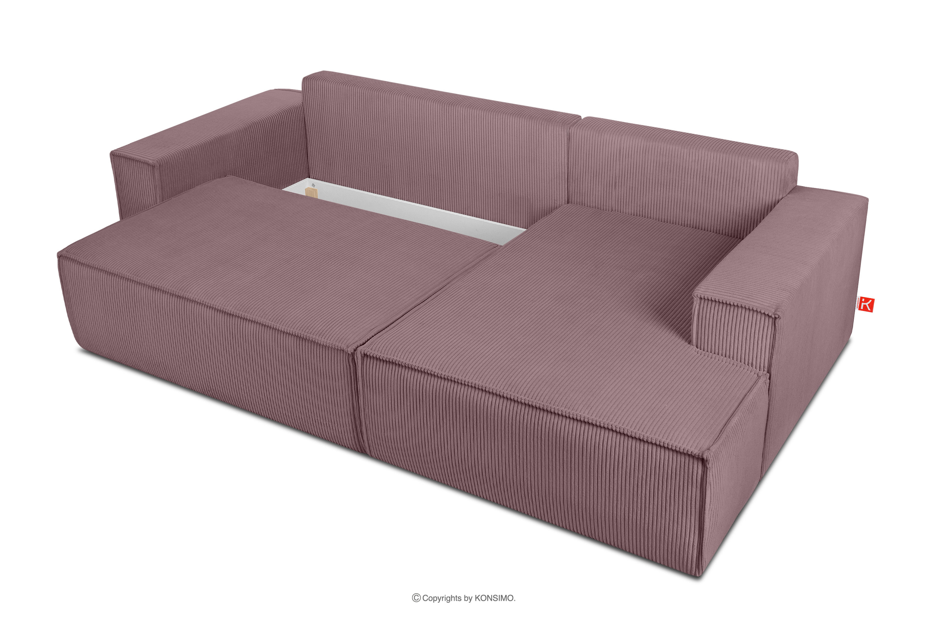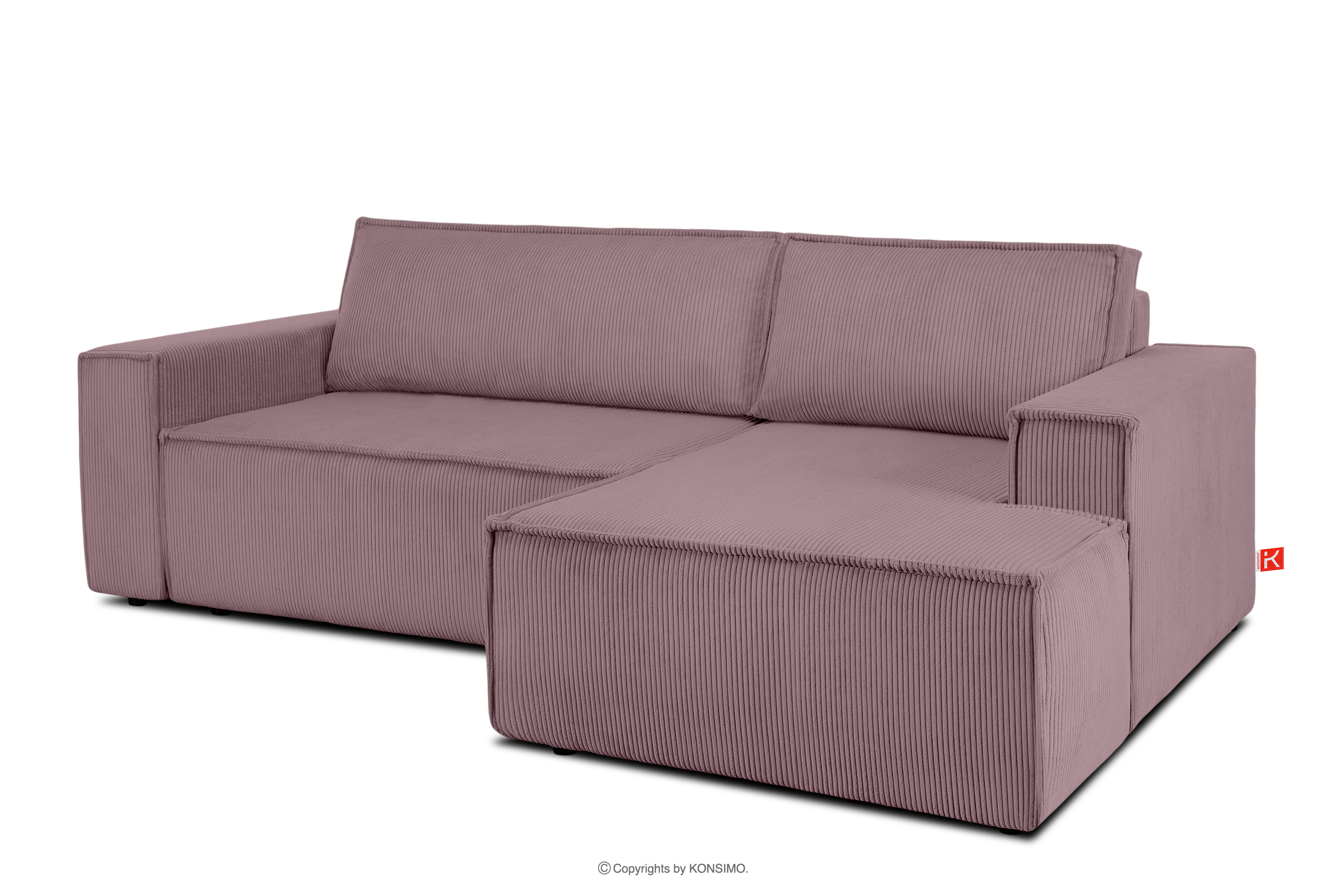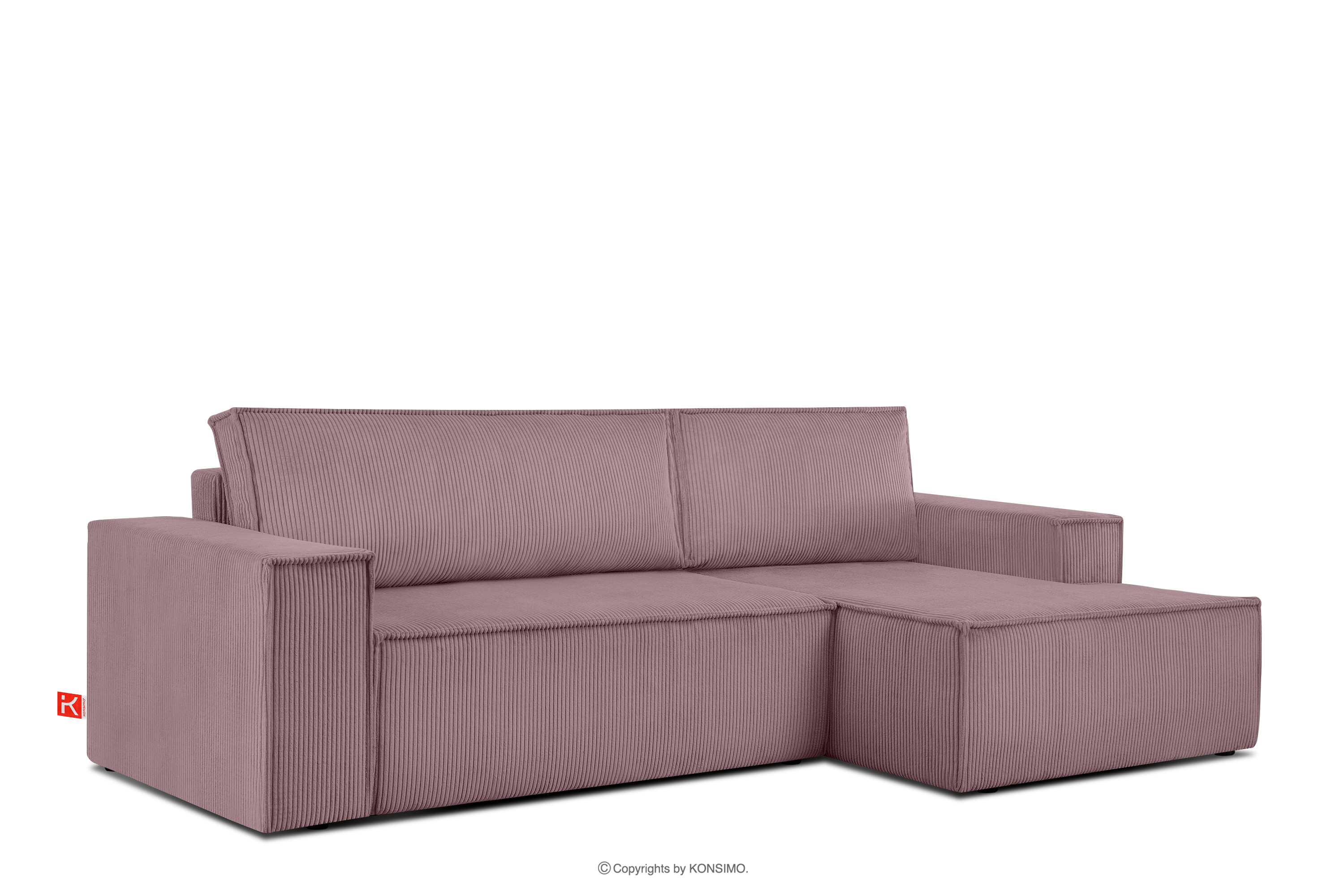 NAPI Kordstoff-Ecksofa rechts mit Schlaffunktion & Bettkasten in hellviolett