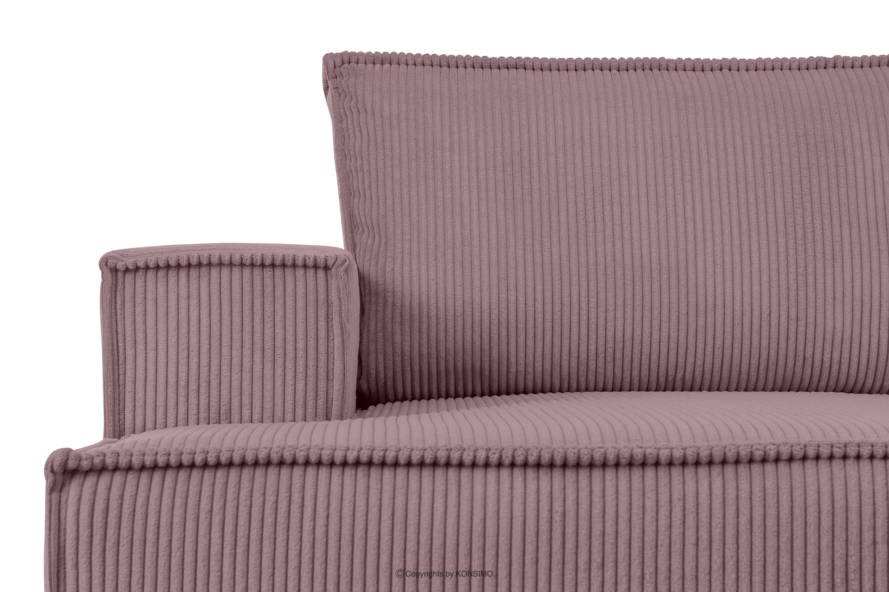 Das klappbare Ecksofa mit Bettkasten aus hellviolettem Kordstoff zieht die Aufmerksamkeit auf sich und hebt sich so von anderen Möbeln ab. Die gesamte Polsterung dieses einzigartigen Möbelstücks besteht aus feinem Kordstoff, der nicht nur einen angenehmen Komfort, sondern auch eine lang anhaltende, tadellose Ästhetik garantiert. Mit diesem Stoff sieht Ihre NAPI-Ecke immer perfekt aus, unabhängig von der Zeit und den Bedingungen der Nutzung.