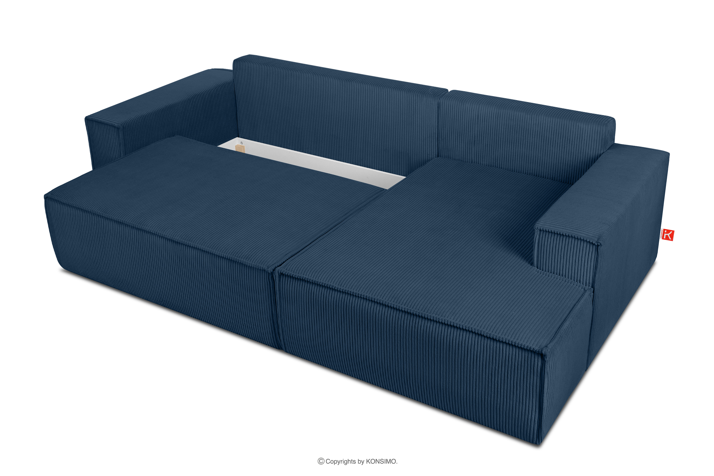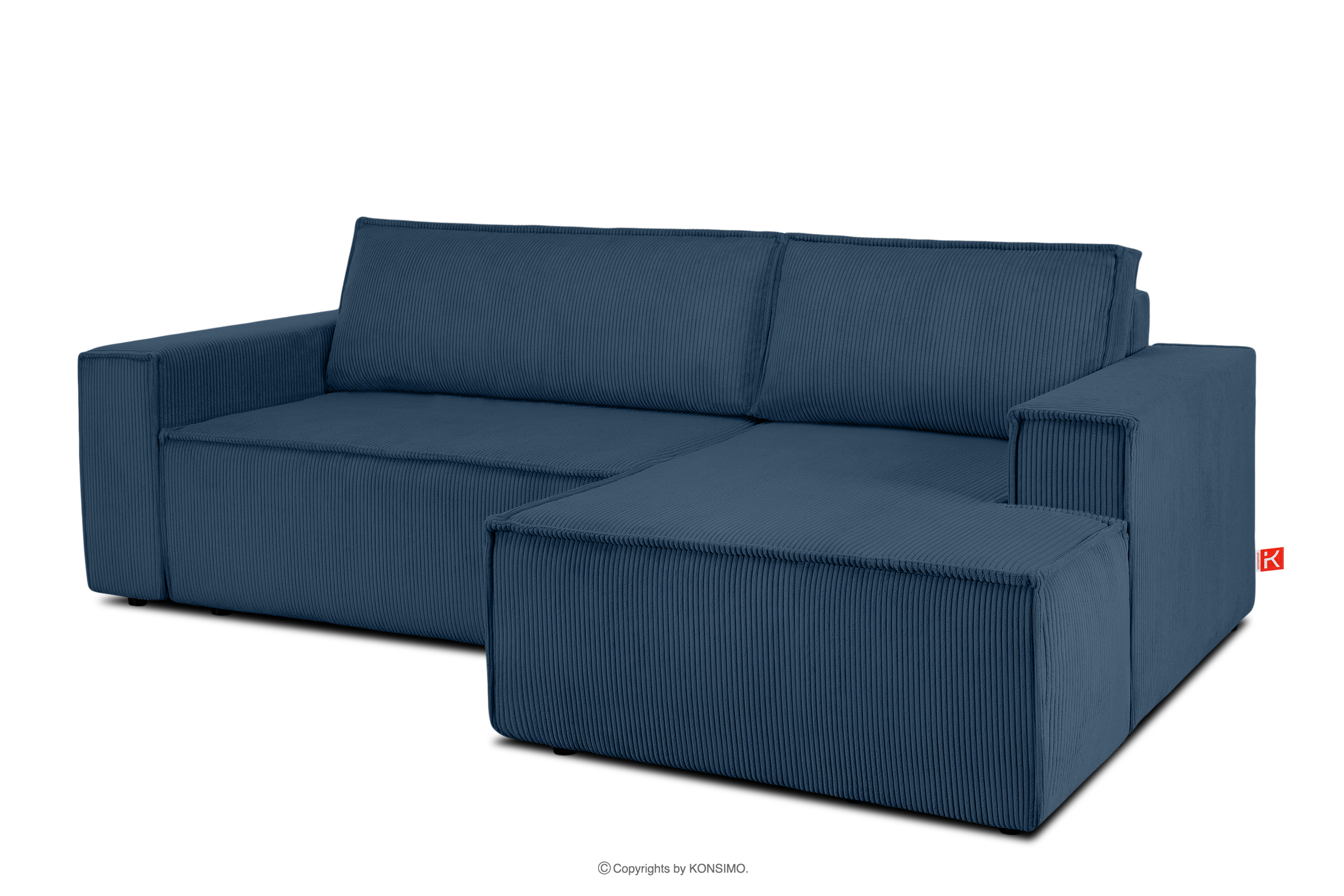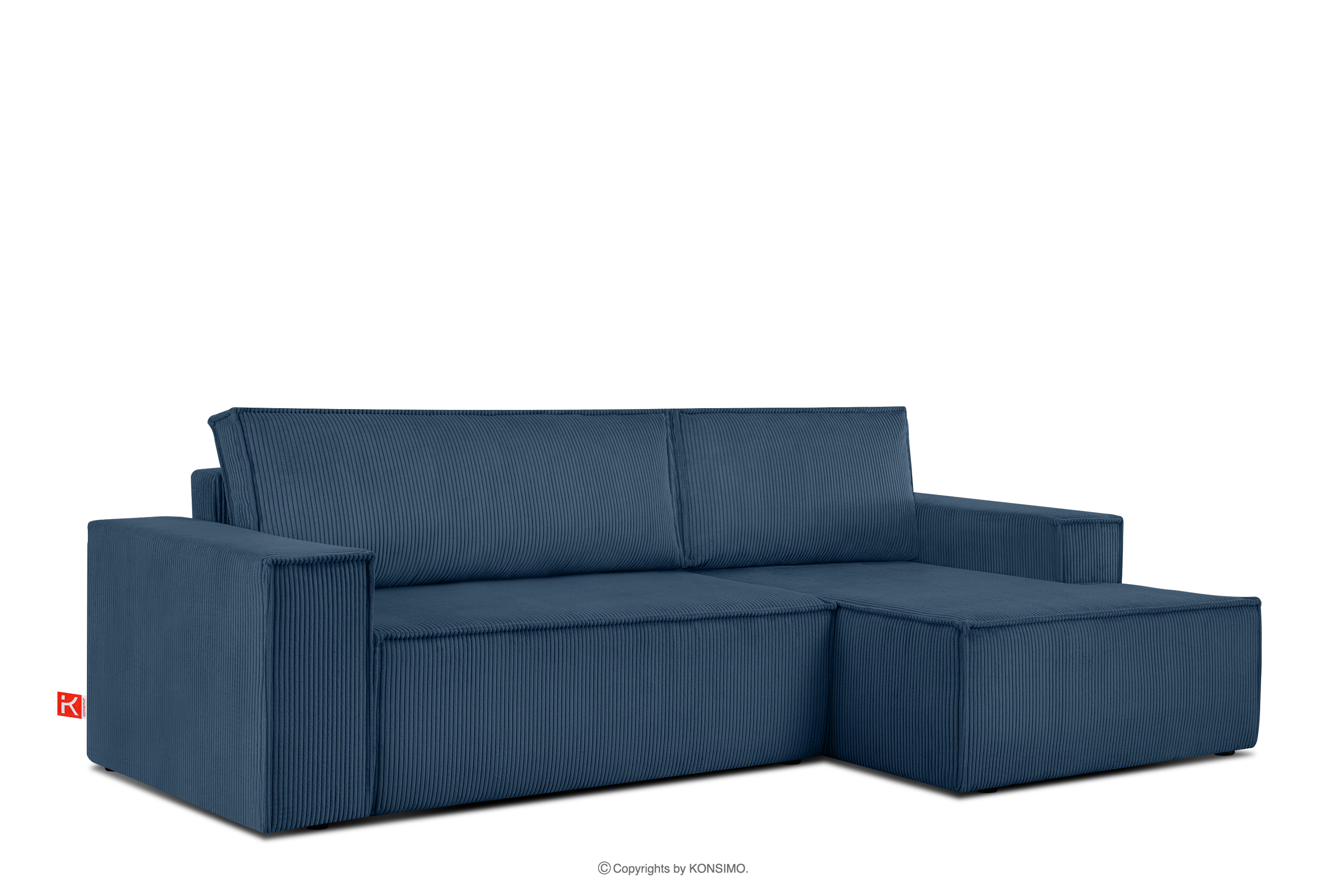 NAPI Kordstoff-Ecksofa rechts mit Schlaffunktion & Bettkasten in marineblau