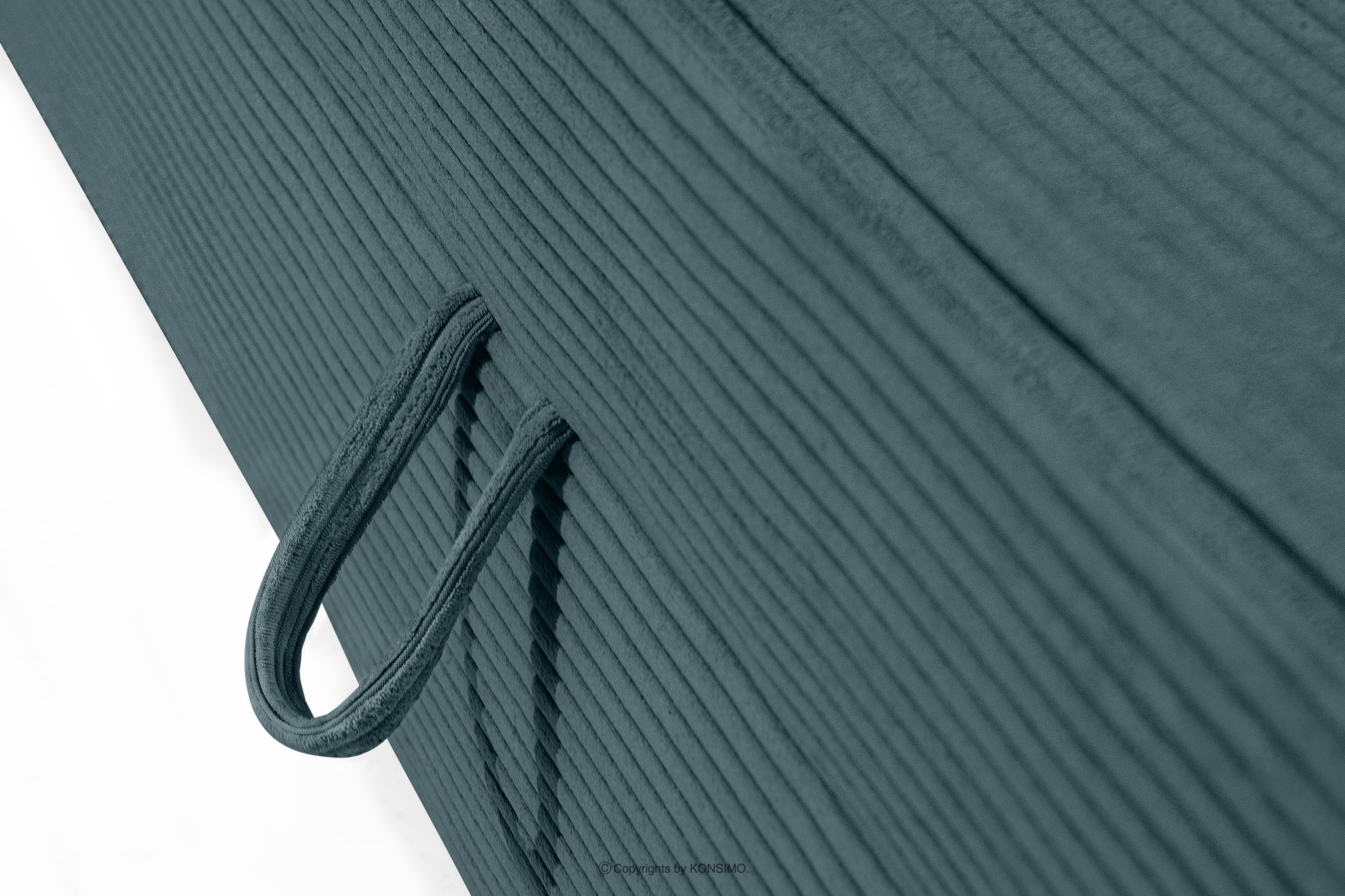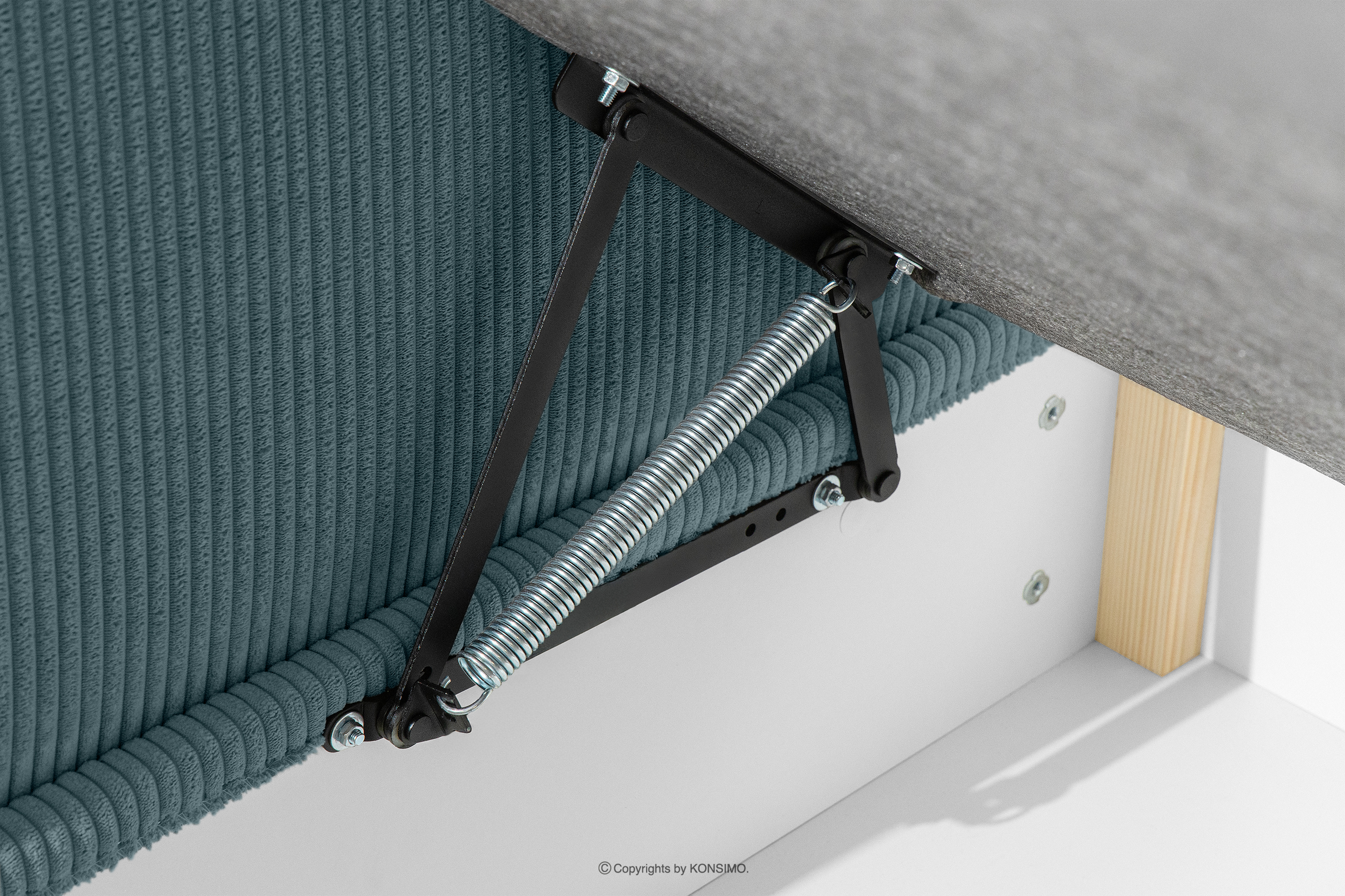 Das 80 cm lange Einzelbett aus blauem Kordstoff ist eine perfekte Kombination aus Funktionalität, Komfort und modernem Design, die perfekt zum Stil zeitgenössischer Innenräume passt. Es ist bis ins kleinste Detail durchdacht und bietet nicht nur Schlafkomfort, sondern auch ein ästhetisches Aussehen, das jedes Schlafzimmer schmückt. Seine solide Konstruktion basiert auf einem robusten Rahmen, der Stabilität und Langlebigkeit garantiert.