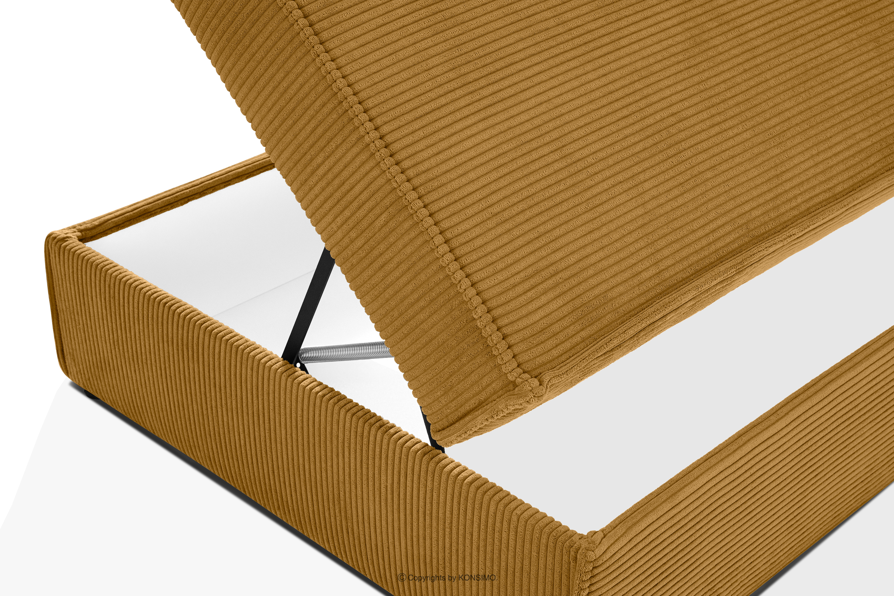 Das Einzelbett 90 cm aus gelbem Kordstoff ist eine perfekte Kombination aus Funktionalität, Komfort und modernem Design, die perfekt zum Stil zeitgenössischer Innenräume passt. Es ist bis ins kleinste Detail durchdacht und bietet nicht nur Schlafkomfort, sondern auch ein ästhetisches Aussehen, das jedes Schlafzimmer schmückt. Seine solide Konstruktion basiert auf einem robusten Rahmen, der Stabilität und Langlebigkeit garantiert.