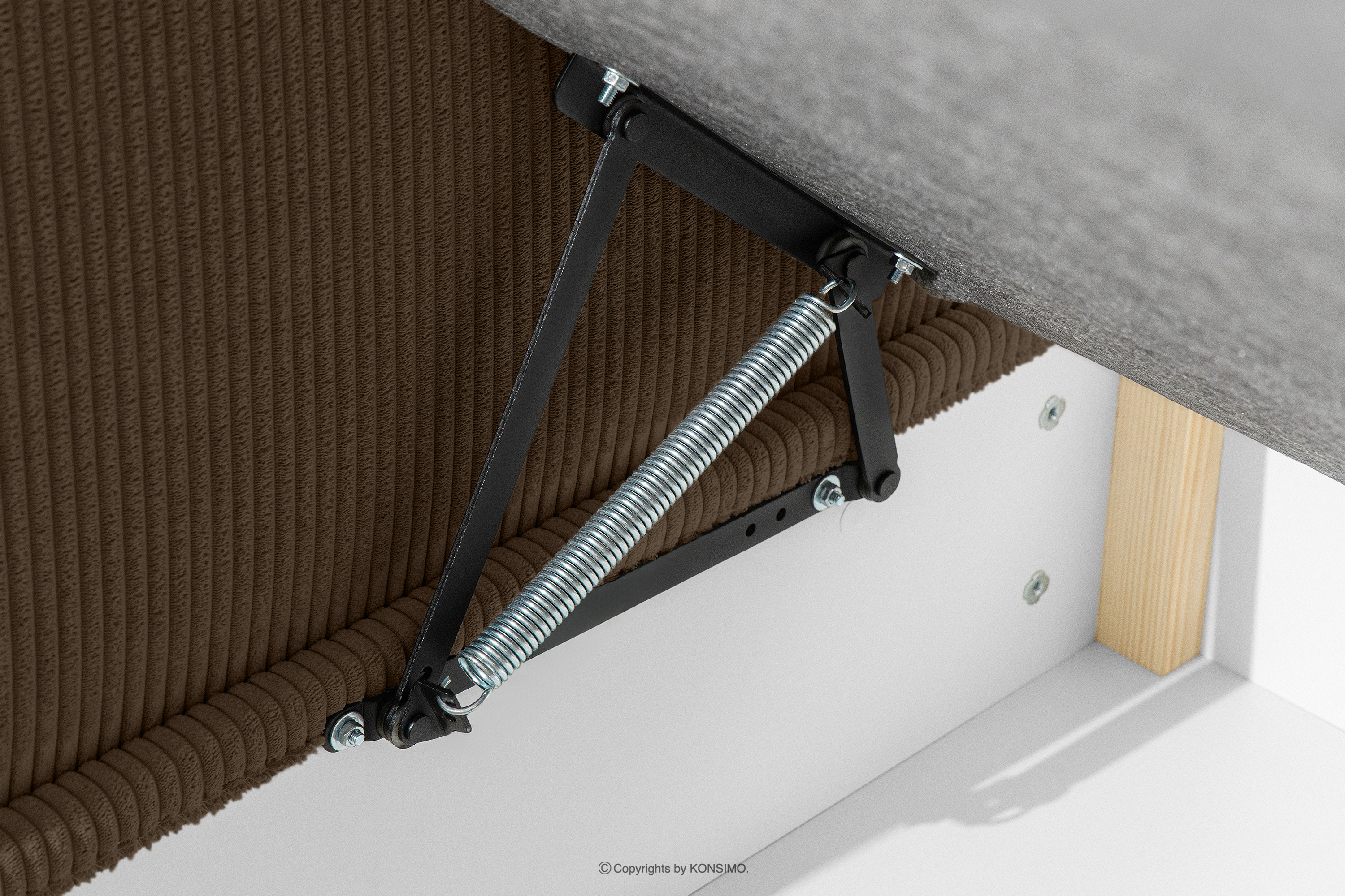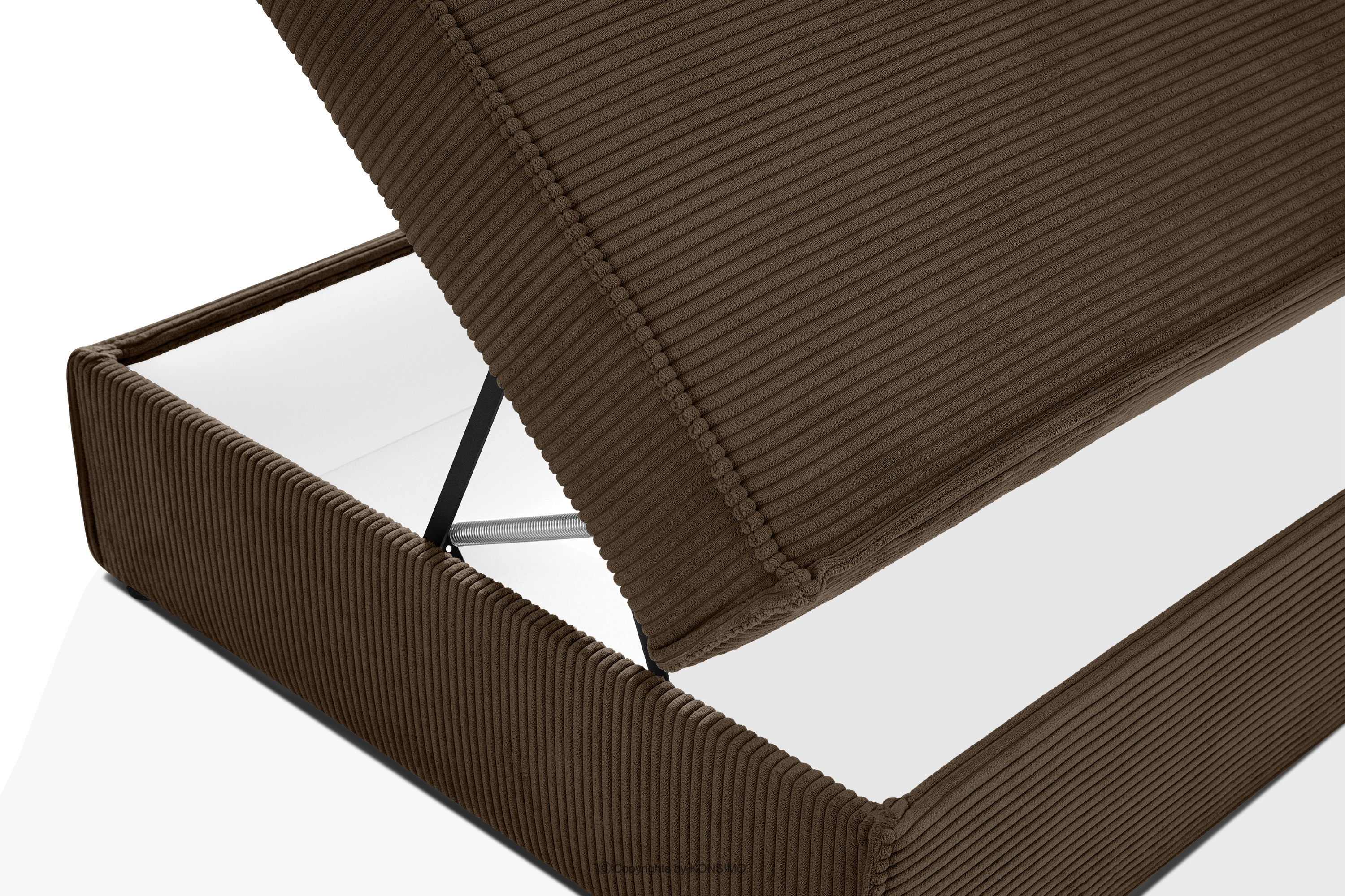 Die Kombination aus Bonellfedern und HR35-Schaumstoff im Sitz schafft eine ergonomische und langlebige Liegefläche, die verformungsbeständig ist und über viele Jahre hinweg Komfort bietet. Ovat und Filz werden auch im Sitz verwendet, was die gesamte Struktur stärkt und den Komfort erhöht. Eine Besonderheit ist der geräumige Bettkasten, der eine äußerst funktionelle Ergänzung zu diesem Modell darstellt. Er ermöglicht die Aufbewahrung von Bettzeug, Decken oder Kissen und spart Platz in Schränken und Kommoden.