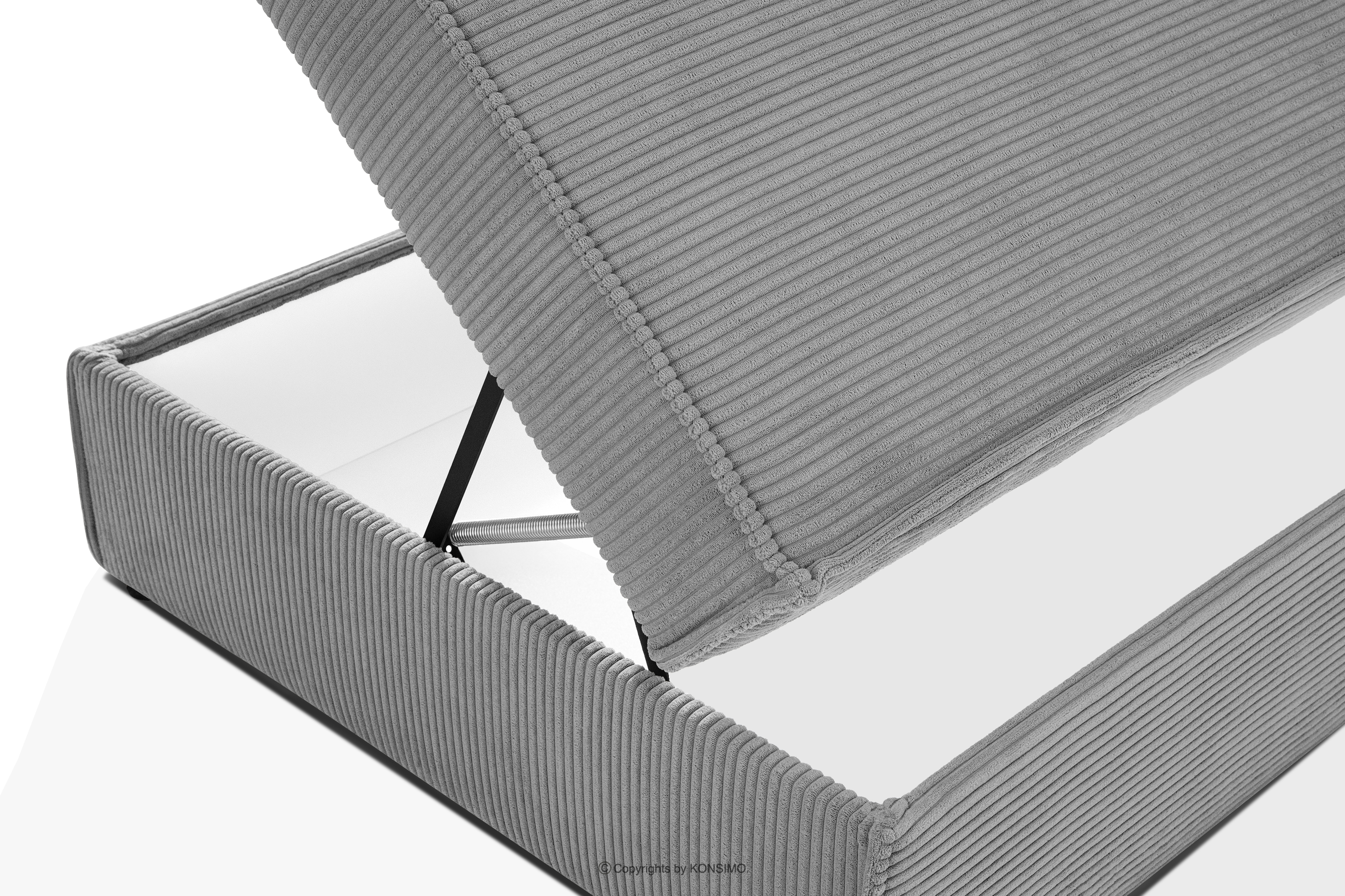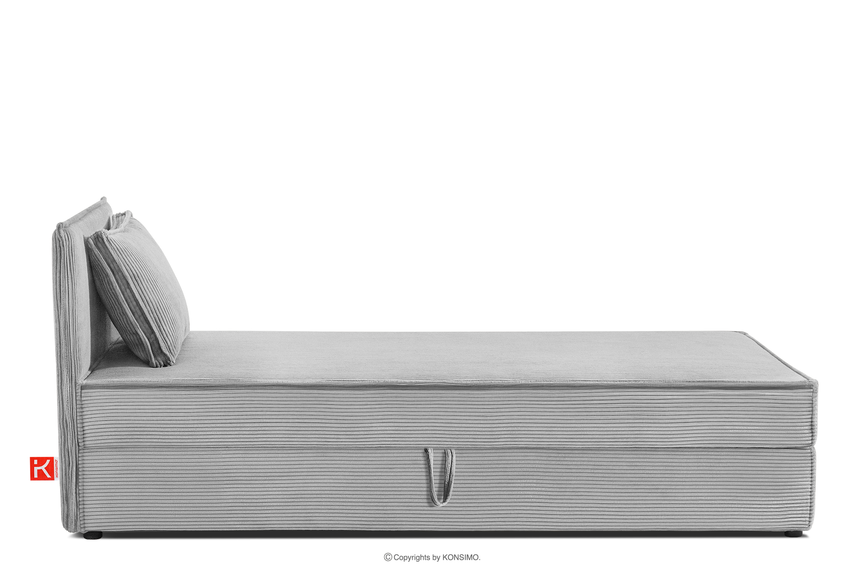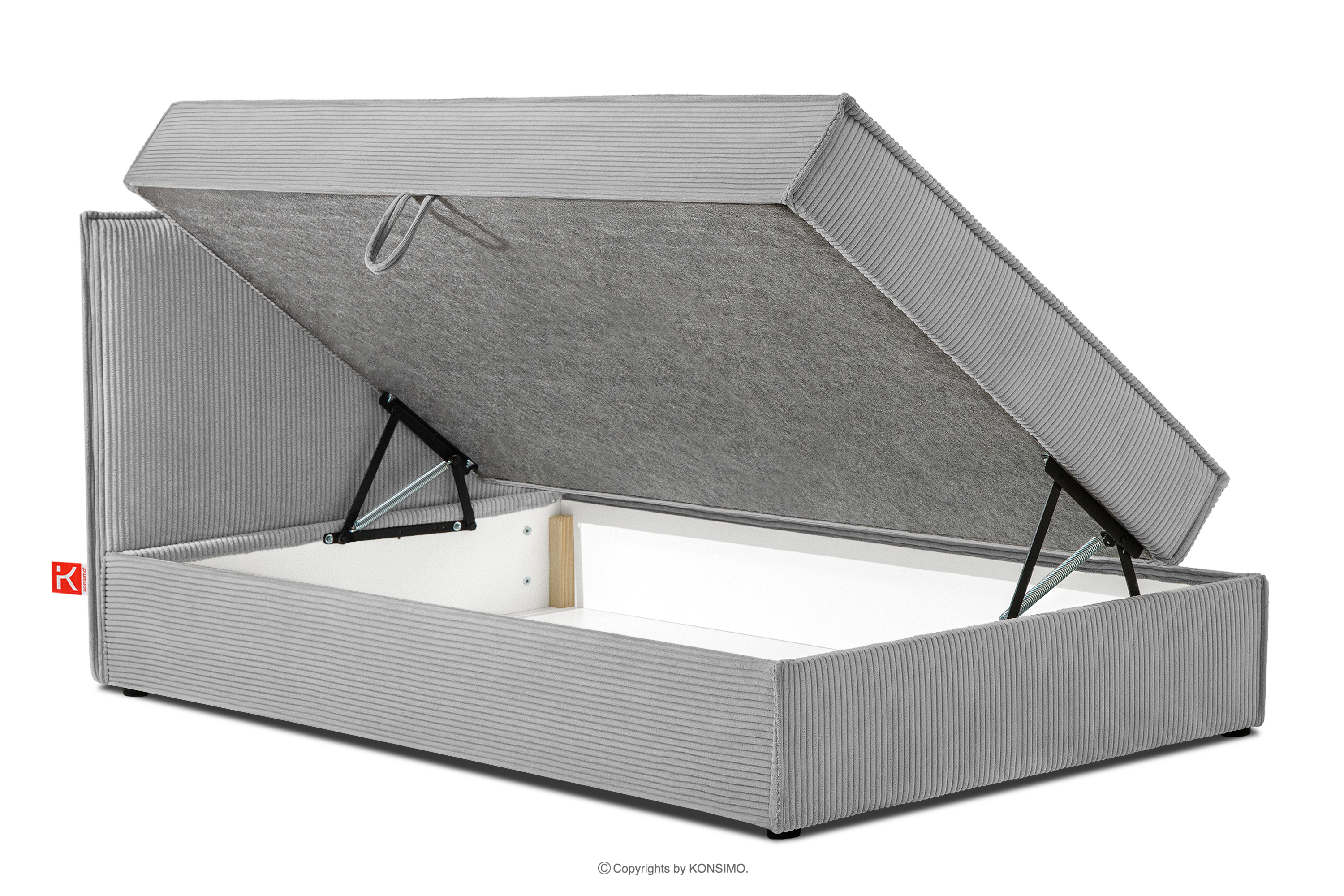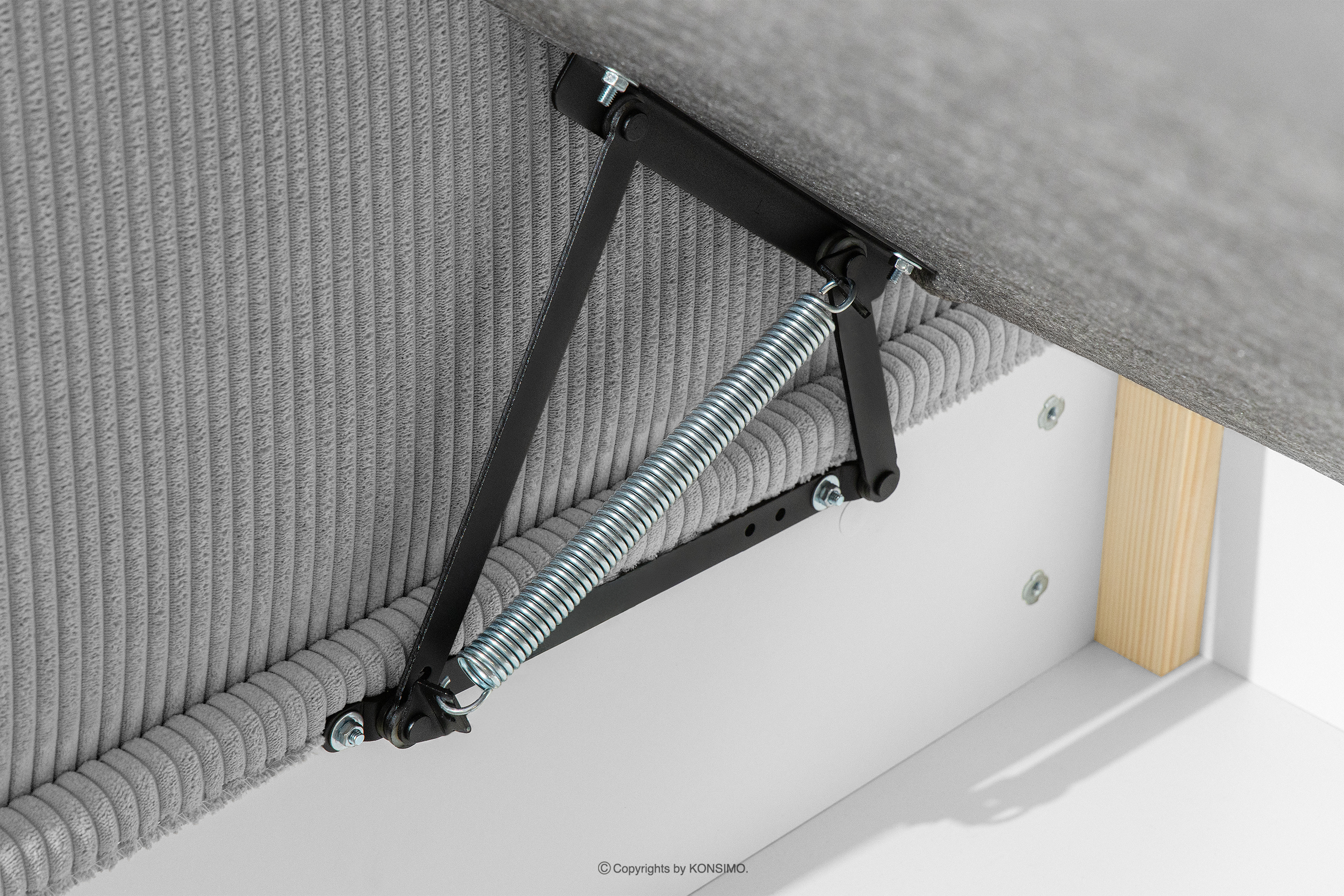 Das 100 cm lange Einzelbett aus Kordstoff in Hellgrau ist eine perfekte Kombination aus Funktionalität, Komfort und modernem Design, die perfekt zum Stil zeitgenössischer Innenräume passt. Es ist bis ins kleinste Detail durchdacht und bietet nicht nur Schlafkomfort, sondern auch ein ästhetisches Aussehen, das jedes Schlafzimmer schmückt. Seine solide Konstruktion basiert auf einem robusten Rahmen, der Stabilität und Langlebigkeit garantiert.