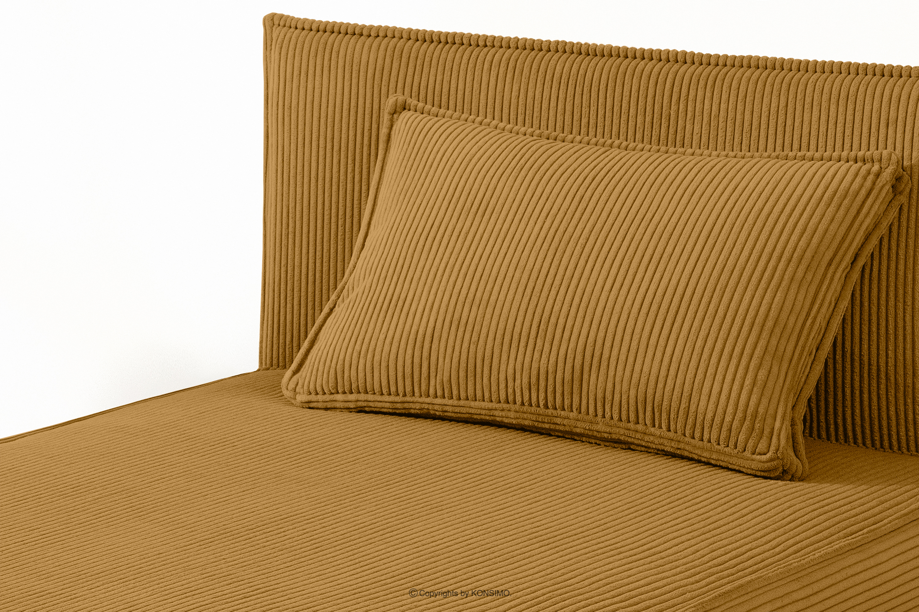 Das 100 cm lange Einzelbett aus gelbem Kordstoff ist eine perfekte Kombination aus Funktionalität, Komfort und modernem Design, die perfekt zum Stil zeitgenössischer Innenräume passt. Es ist bis ins kleinste Detail durchdacht und bietet nicht nur Schlafkomfort, sondern auch ein ästhetisches Aussehen, das jedes Schlafzimmer schmückt. Seine solide Konstruktion basiert auf einem robusten Rahmen, der Stabilität und Langlebigkeit garantiert.