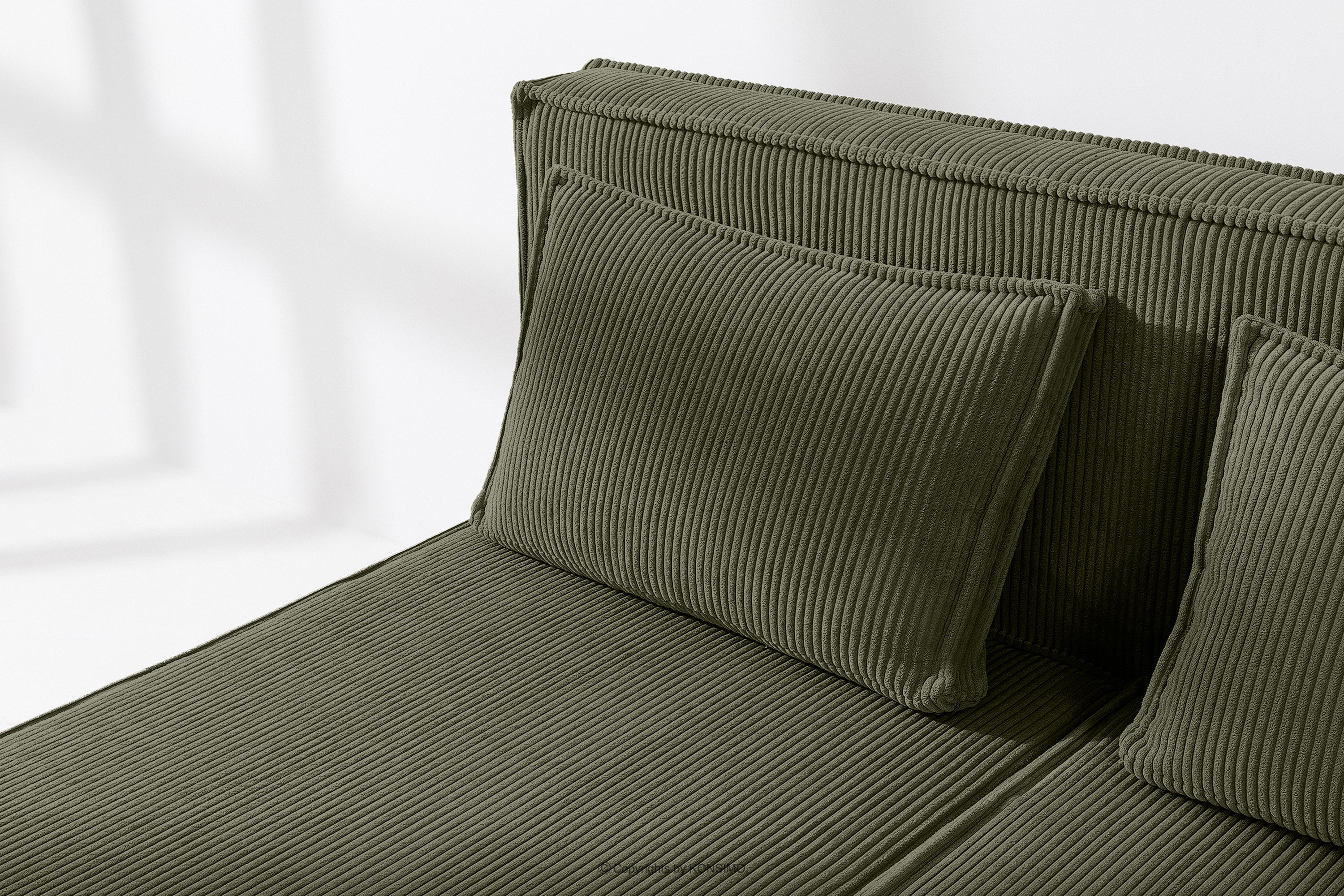 Das 140 cm lange Doppelbett aus olivgrünem Kordstoff ist eine perfekte Kombination aus Funktionalität, Komfort und modernem Design, die perfekt zum Stil zeitgenössischer Innenräume passt. Es ist bis ins kleinste Detail durchdacht und bietet nicht nur Schlafkomfort, sondern auch ein ästhetisches Aussehen, das jedes Schlafzimmer schmückt. Seine solide Konstruktion basiert auf einem robusten Rahmen, der Stabilität und Langlebigkeit garantiert.