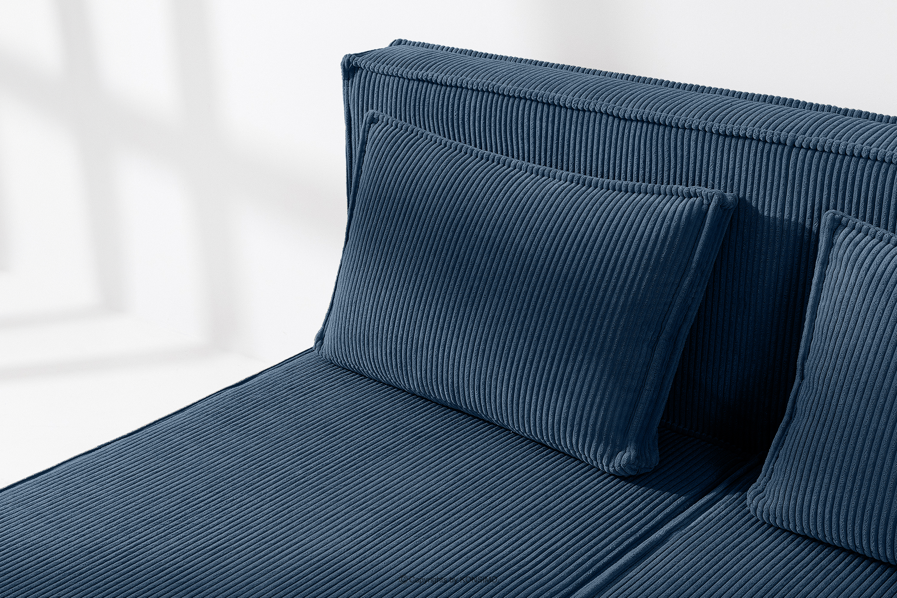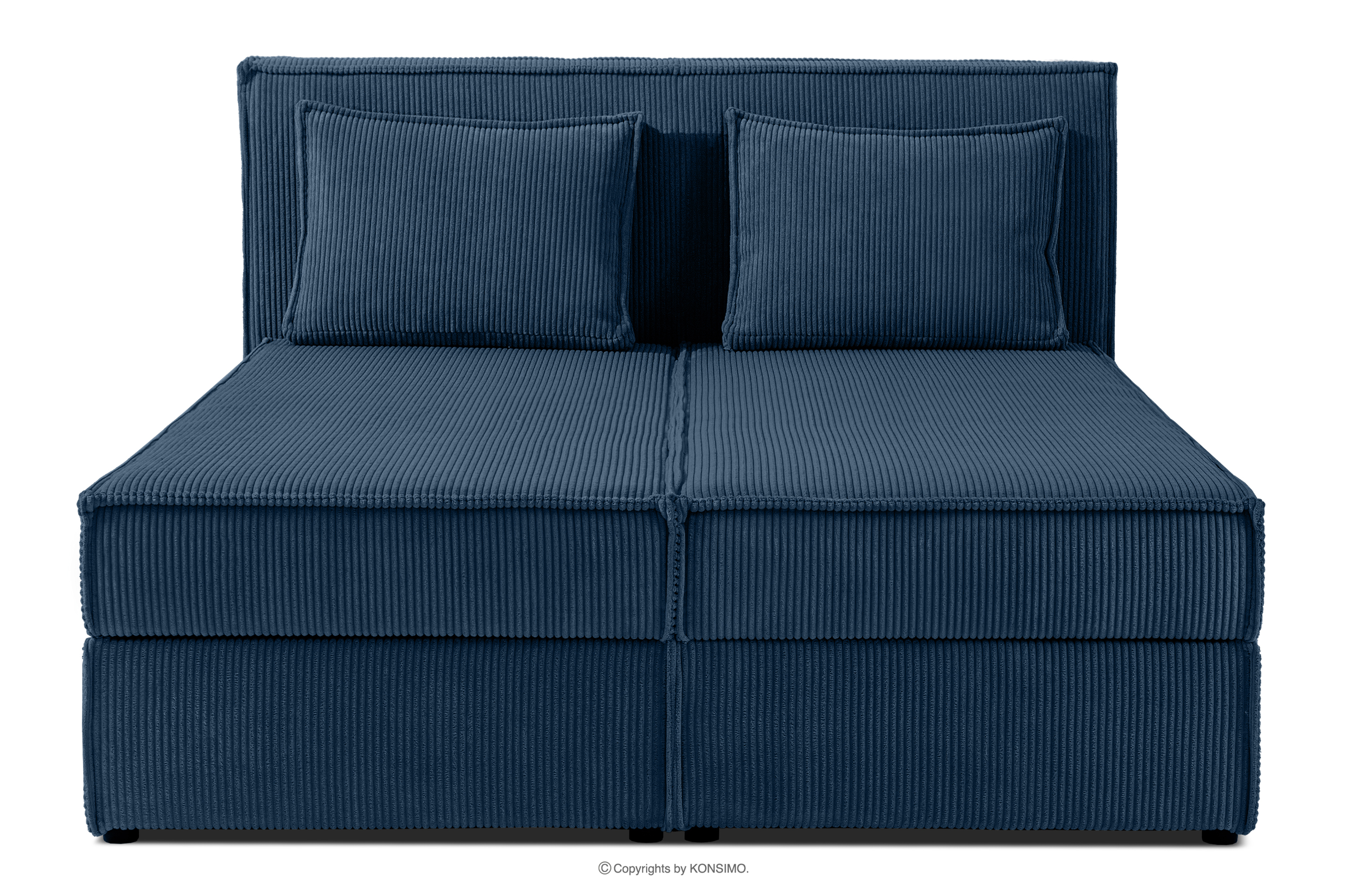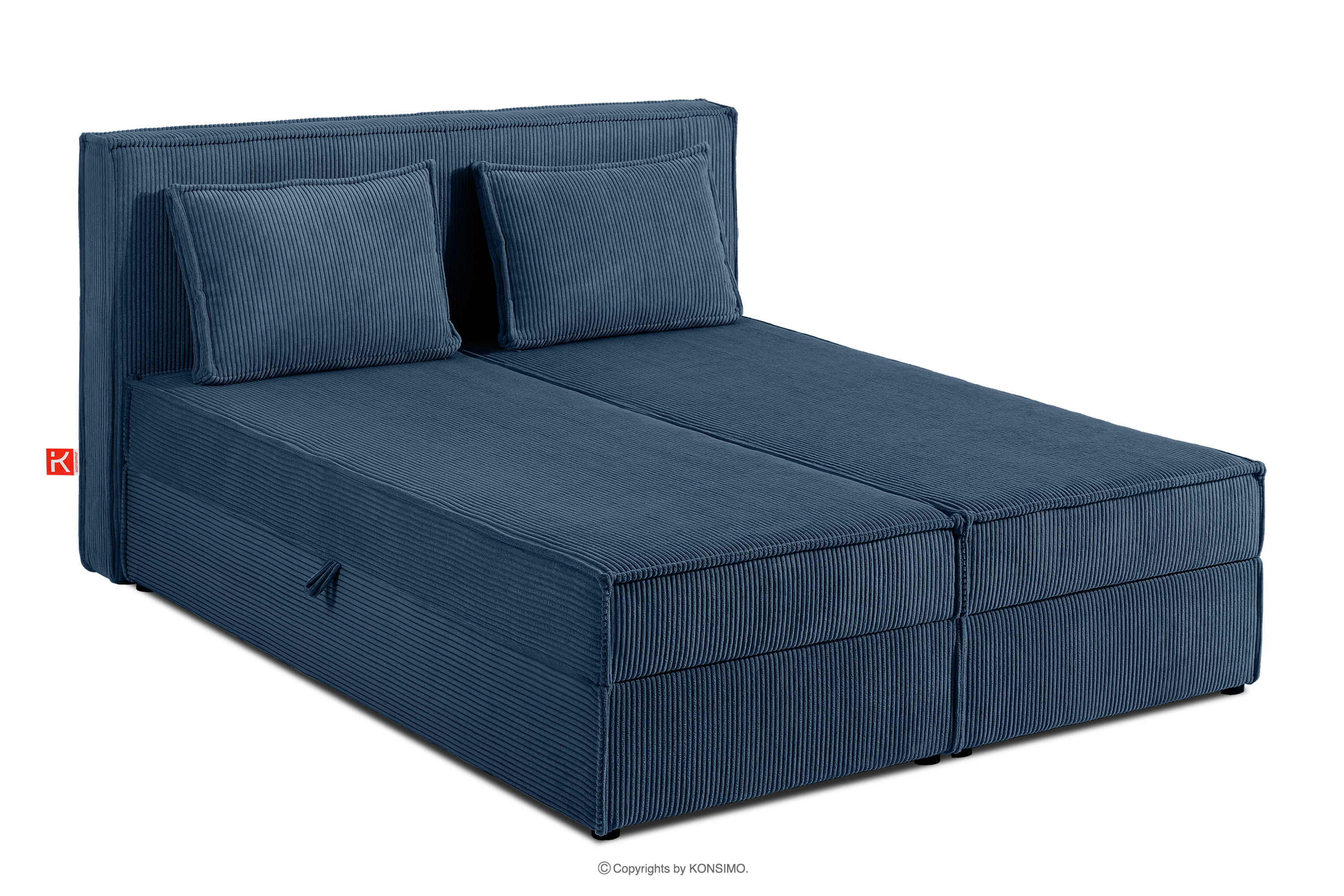 Das 140 cm lange Bett mit Bettkasten aus Kordstoff in Marineblau ist eine perfekte Kombination aus Funktionalität, Komfort und modernem Design, die perfekt zum Stil zeitgenössischer Innenräume passt. Es ist bis ins kleinste Detail durchdacht und bietet nicht nur Schlafkomfort, sondern auch ein ästhetisches Aussehen, das jedes Schlafzimmer schmückt. Seine solide Konstruktion basiert auf einem robusten Rahmen, der Stabilität und Langlebigkeit garantiert.