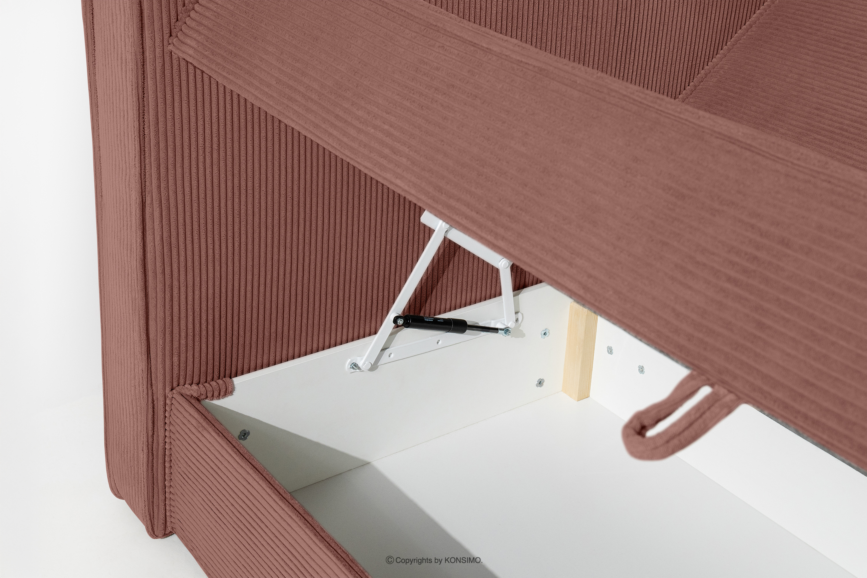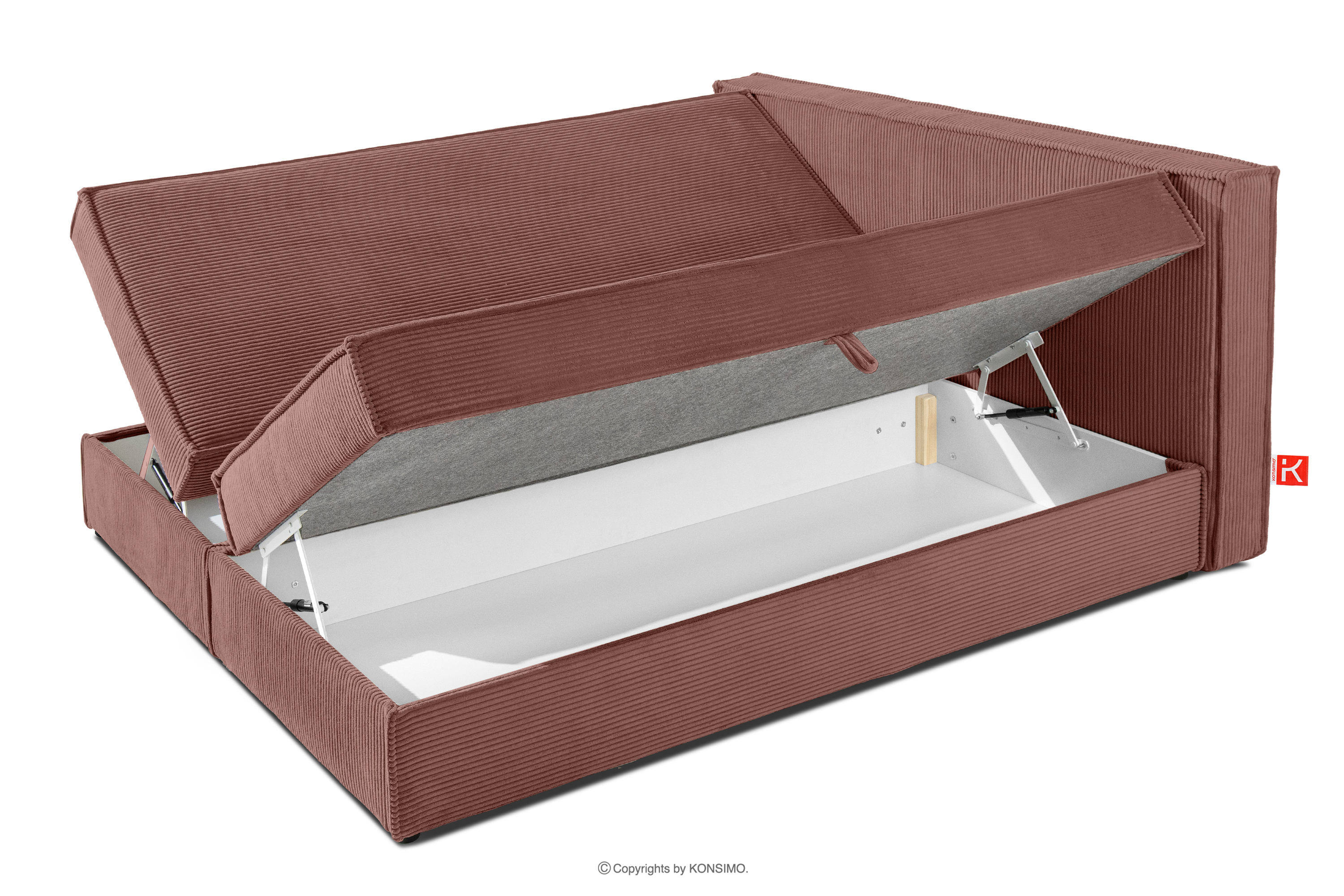 für das Produkt Bett 160 cm mit Bettkasten aus Kordstoff rosa