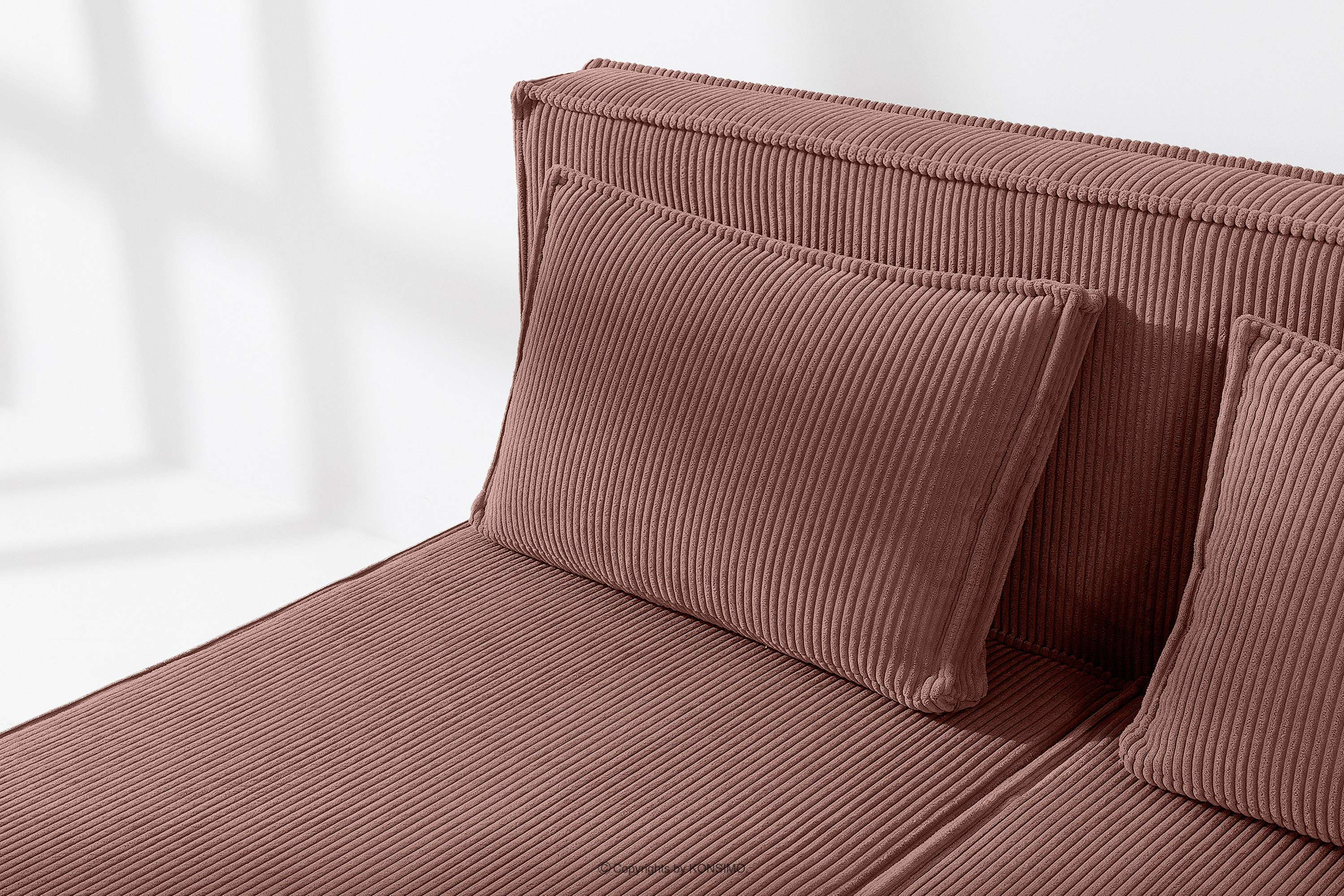 Das 160 cm lange Bett mit Bettkasten aus rosa Kordstoff ist eine perfekte Kombination aus Funktionalität, Komfort und modernem Design, die perfekt zum Stil zeitgenössischer Innenräume passt. Es wurde bis ins kleinste Detail durchdacht und bietet nicht nur Schlafkomfort, sondern auch ein ästhetisches Aussehen, das jedes Schlafzimmer schmückt. Seine solide Konstruktion basiert auf einem robusten Rahmen, der Stabilität und Langlebigkeit garantiert.