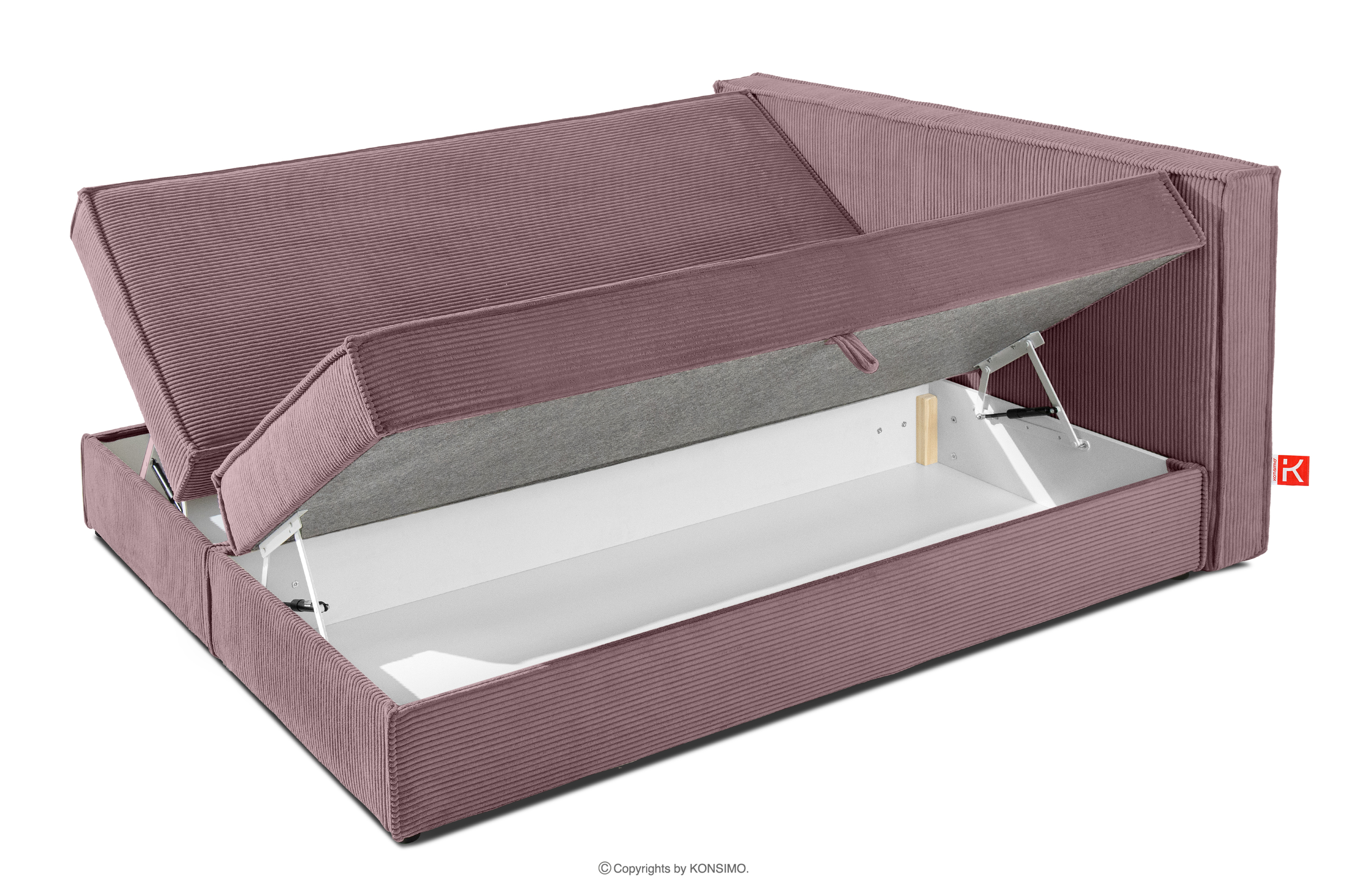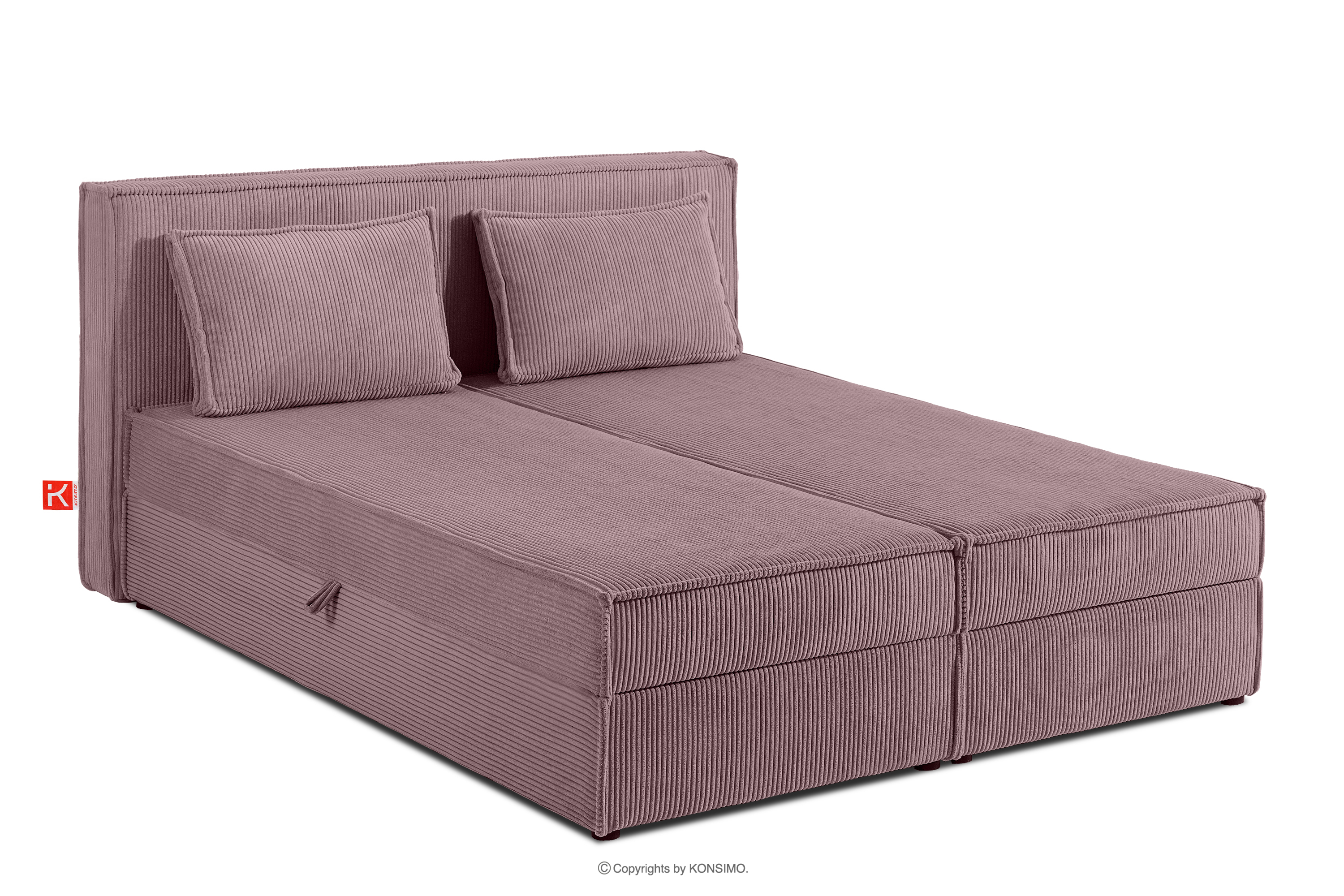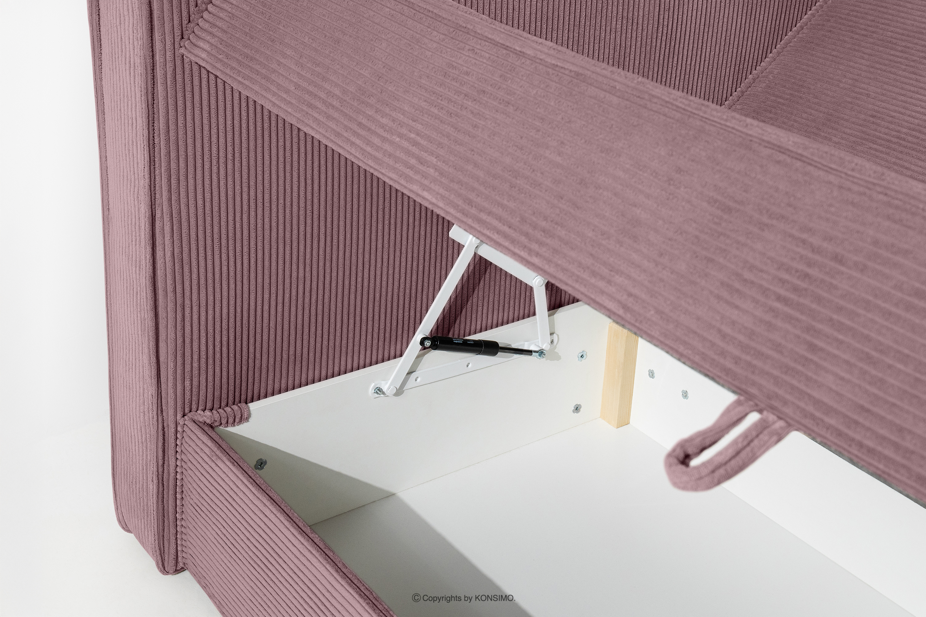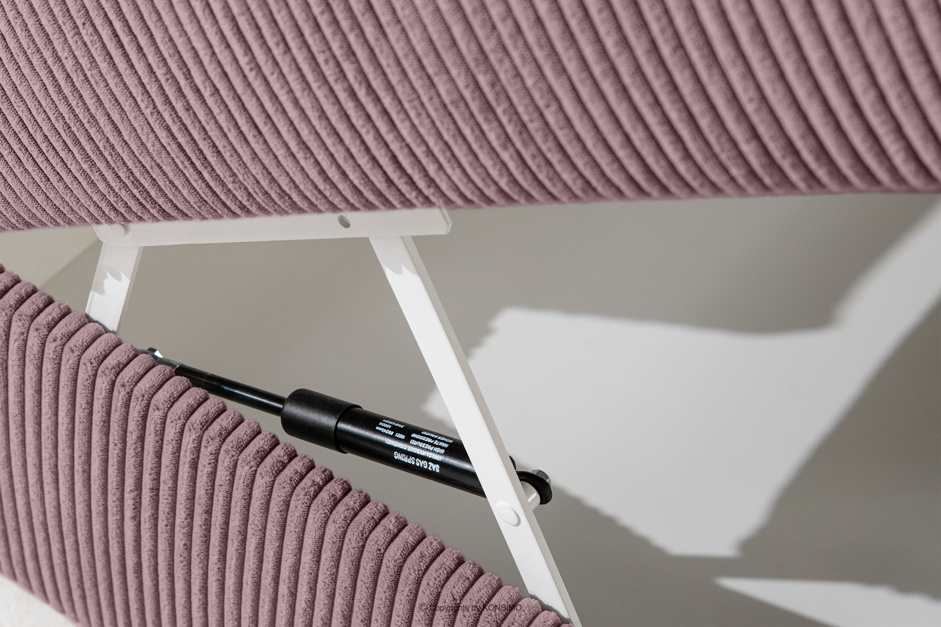 Das Bett 160 cm mit Bettkasten aus Kordstoff in Hellviolett ist eine perfekte Kombination aus Funktionalität, Komfort und modernem Design, die perfekt zum Stil zeitgenössischer Innenräume passt. Das Bett ist bis ins kleinste Detail durchdacht und bietet nicht nur Schlafkomfort, sondern auch ein ästhetisches Aussehen, das zur Dekoration jedes Schlafzimmers wird.