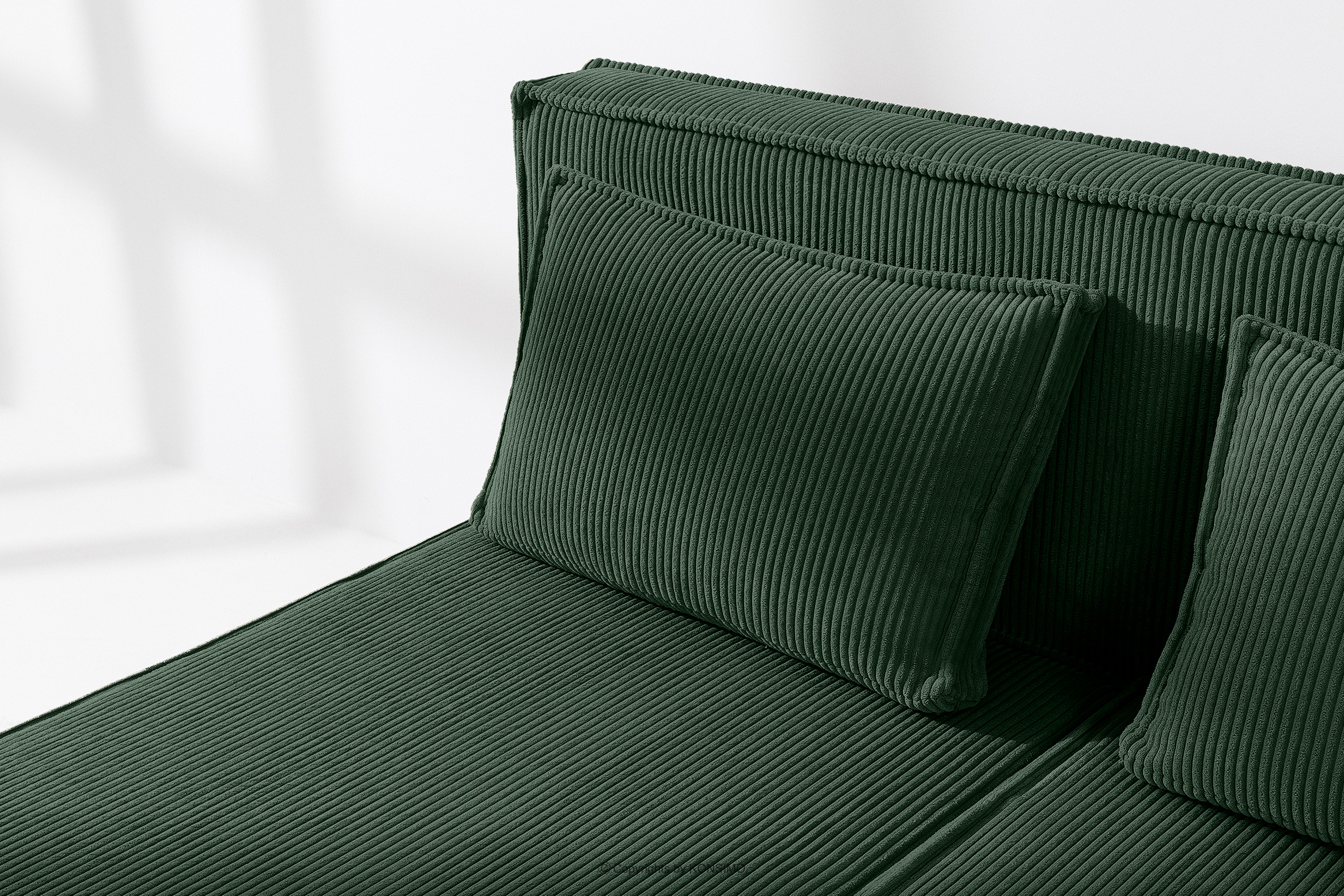 Das 180 cm lange Doppelbett aus dunkelgrünem Kordstoff ist eine perfekte Kombination aus Funktionalität, Komfort und modernem Design, die perfekt zum Stil zeitgenössischer Innenräume passt. Es ist bis ins kleinste Detail durchdacht und bietet nicht nur Schlafkomfort, sondern auch ein ästhetisches Aussehen, das jedes Schlafzimmer schmückt. Seine solide Konstruktion basiert auf einem robusten Rahmen, der Stabilität und Langlebigkeit garantiert.
