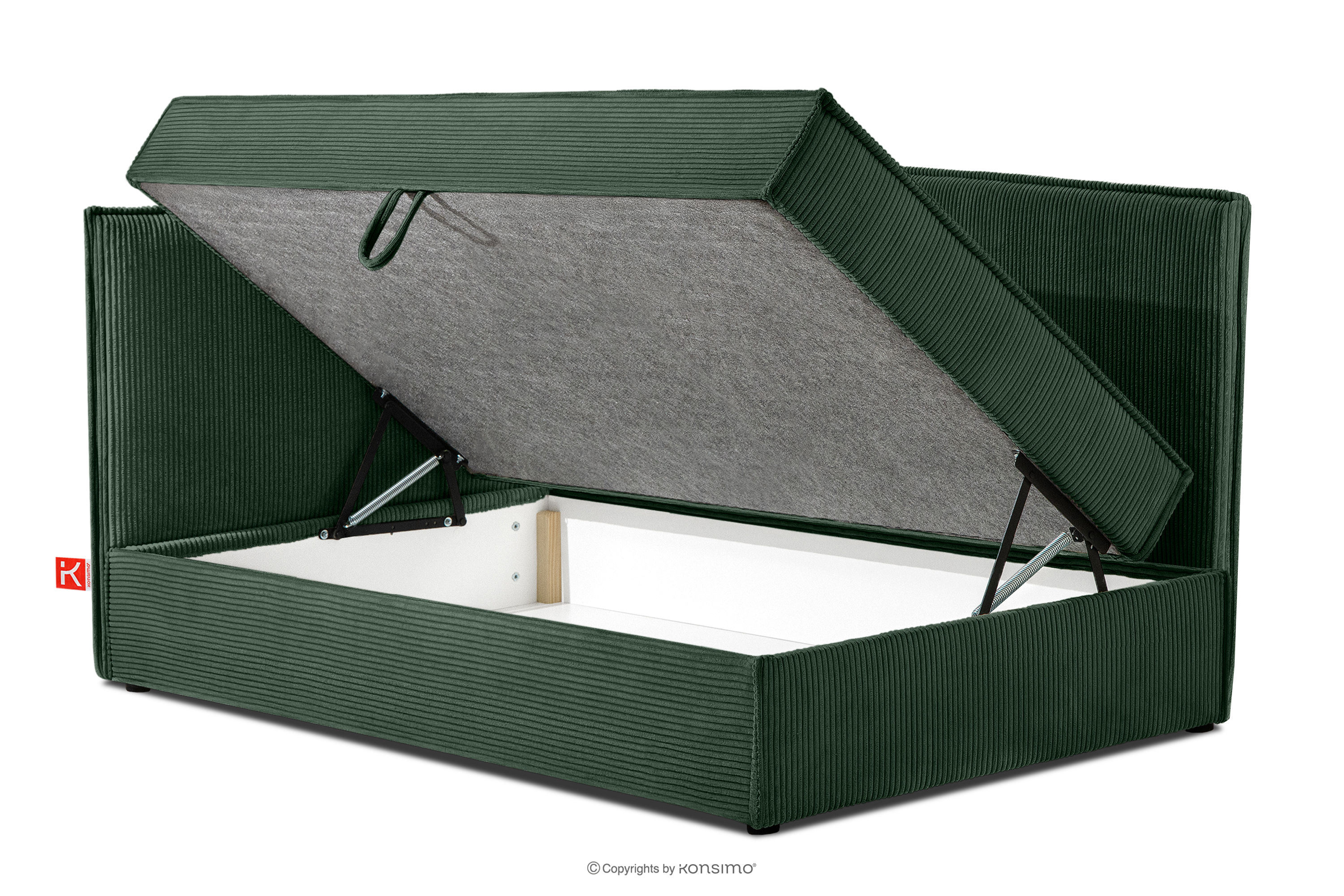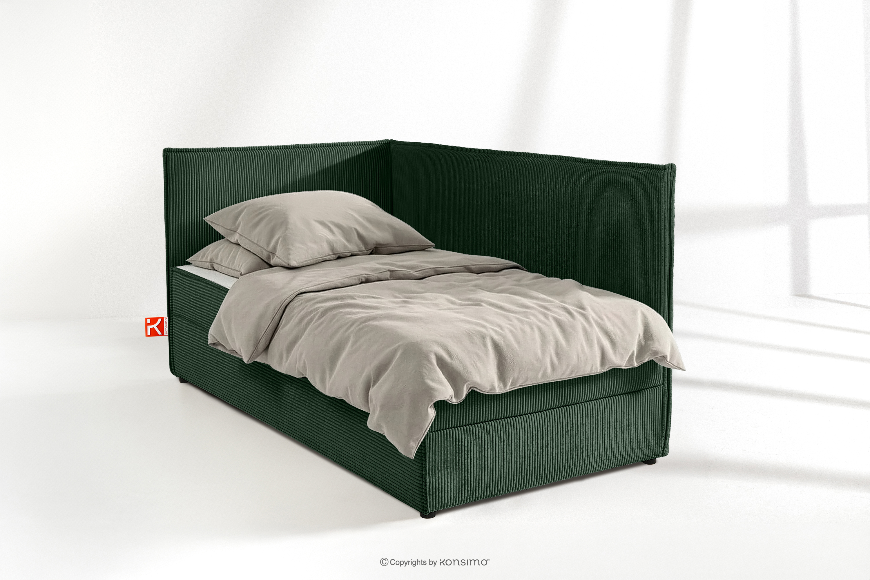 ROTI Mehr aus der Kollektion Boxspringbett 90 cm für Jugendliche mit Rückenlehne aus dunkelgrünem Kordstoff- Farbe dunkelgrün