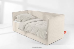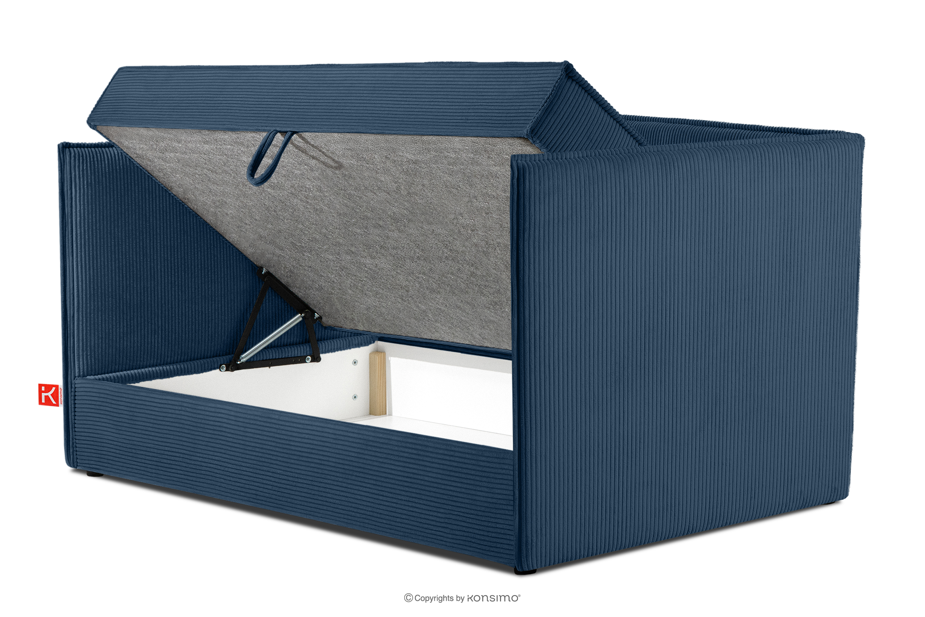 Boxspringbett mit Sofalehne aus Kordstoff 90 cm marineblau es ist die perfekte Kombination aus Funktionalität, Komfort und modernem Design, die sich hervorragend in den Stil zeitgenössischer Innenräume einfügt. Mit viel Liebe zum Detail gefertigt, bietet es nicht nur Schlafkomfort, sondern auch ein ästhetisches Erscheinungsbild, das jedes Schlafzimmer verschönert. Seine solide Konstruktion basiert auf einem robusten Gestell, das Stabilität und Langlebigkeit garantiert.