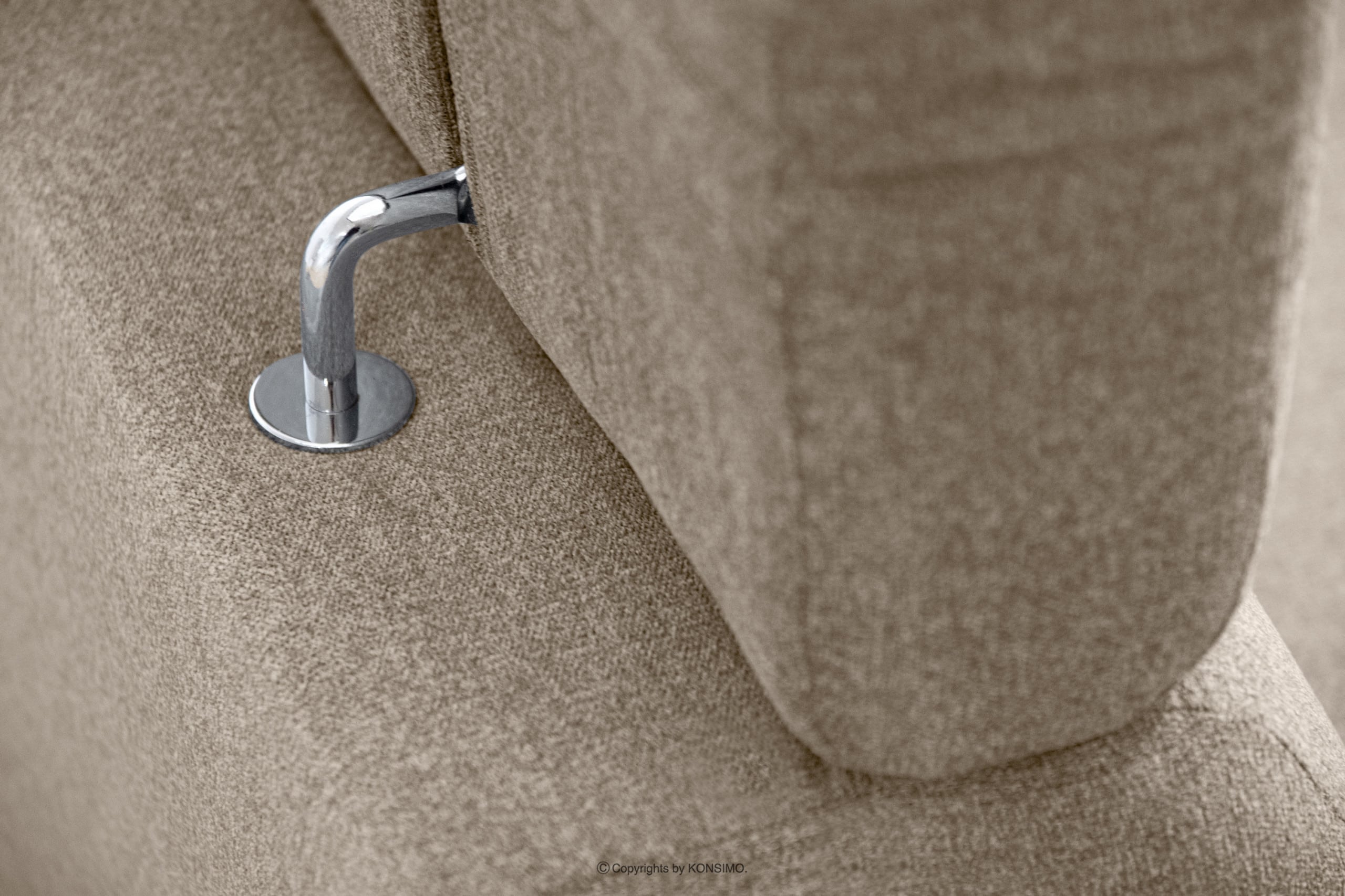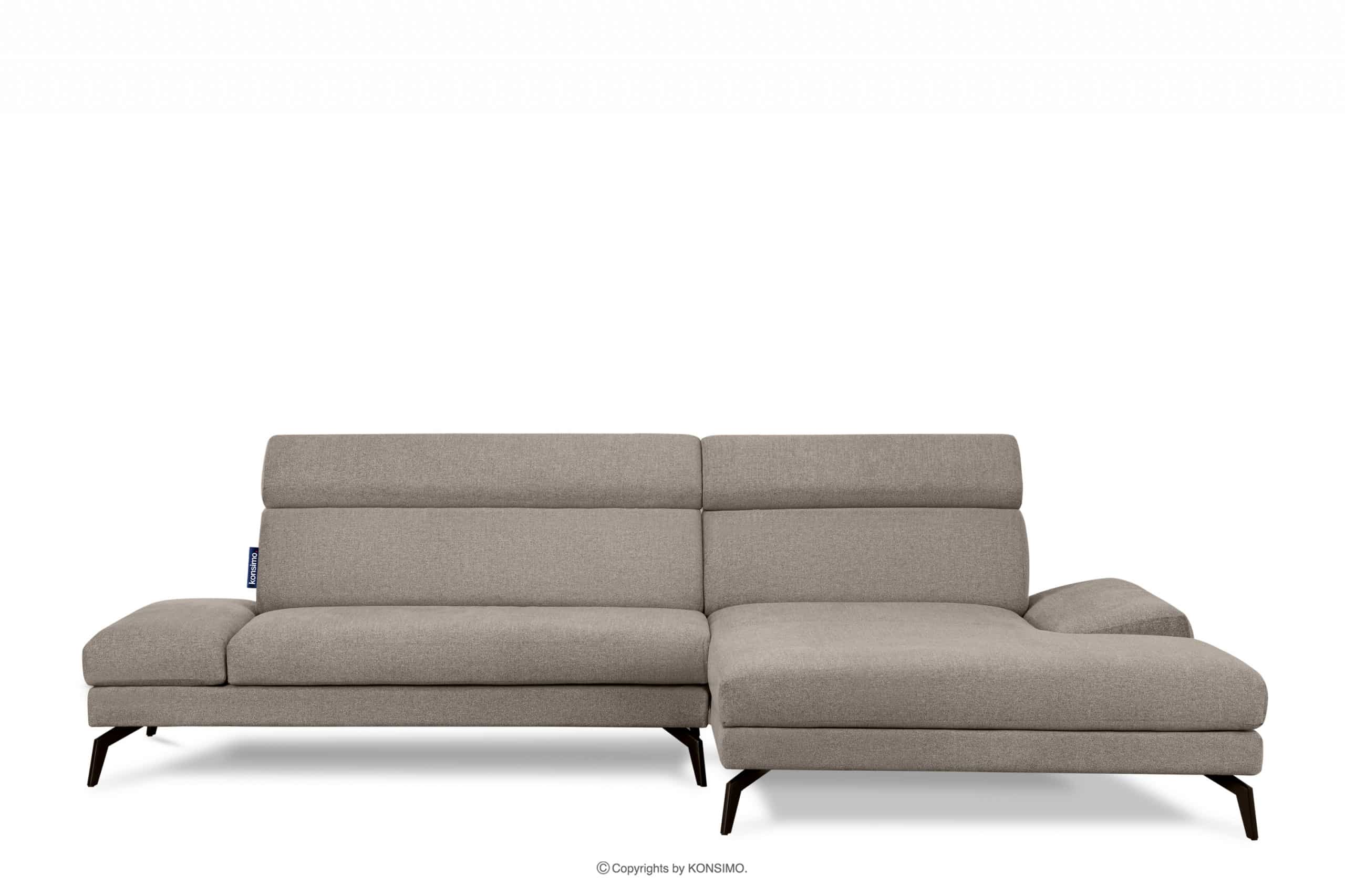Das beigefarbene Ecksofa mit verstellbaren Kopfstützen ist eine perfekte Wahl für ein geräumiges, stilvolles Wohnzimmer. Dank seiner großen Abmessungen eignet es sich besonders gut für größere Räume - die ganze Familie findet darauf Platz! Das Sofa ist mit hochwertigem, strapazierfähigem Stoff bezogen, der sich durch seine Langlebigkeit und hohe Abriebfestigkeit auszeichnet.