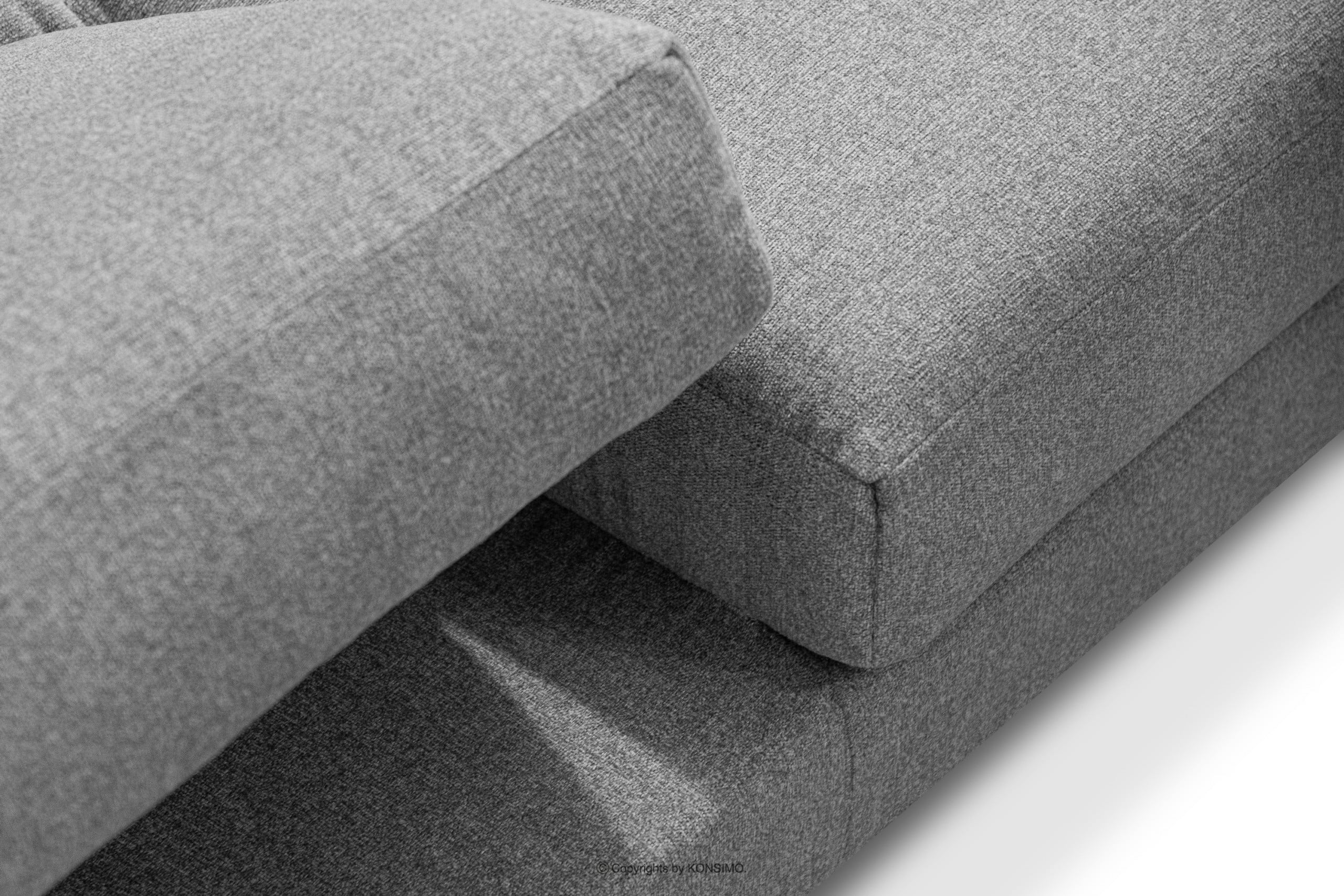 Moderne graue Ecksofa mit verstellbaren Kopfstützen ist die perfekte Wahl für ein geräumiges, stilvolles Wohnzimmer. Dank seiner großen Abmessungen eignet es sich besonders gut für größere Räume - die ganze Familie findet darauf Platz! Das Sofa ist mit hochwertigem, strapazierfähigem, geflochtenem Stoff bezogen, der sich durch hohe Haltbarkeit und Abriebfestigkeit auszeichnet.