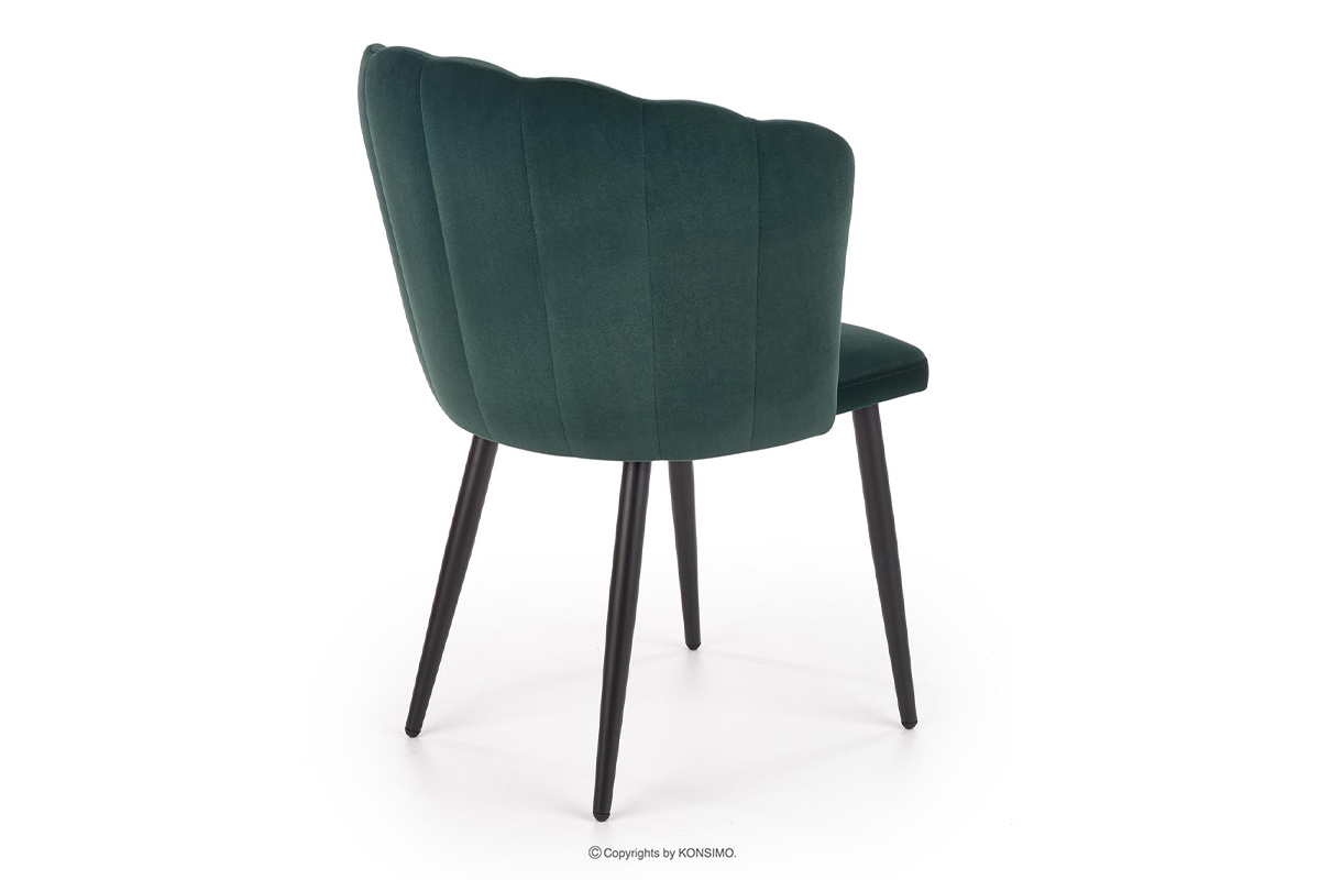 Ein einzigartiger Polsterstuhl mit einer originellen, muschelförmigen Form, der sofort ins Auge fällt. Die moderne Konstruktion auf einem schlanken, pulverbeschichteten Metallgestell garantiert sowohl Stabilität als auch ein leichtes, stilvolles Design. Der Veloursbezug ist äußerst angenehm anzufassen und leicht zu reinigen. Die sorgfältige Steppung unterstreicht nicht nur die einzigartige Form des Sitzes, sondern verleiht dem Möbelstück auch einen exklusiven Charakter.