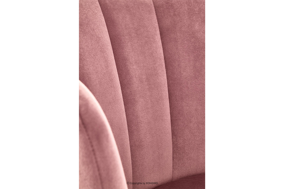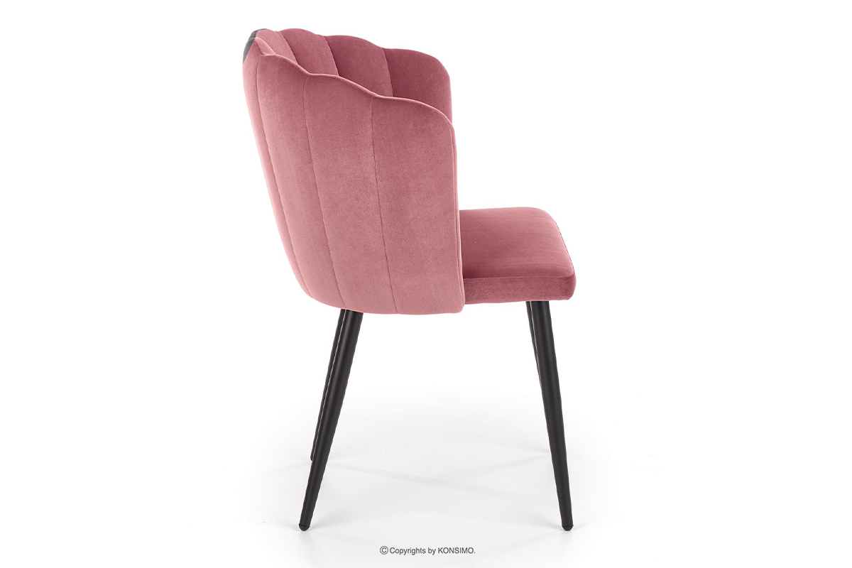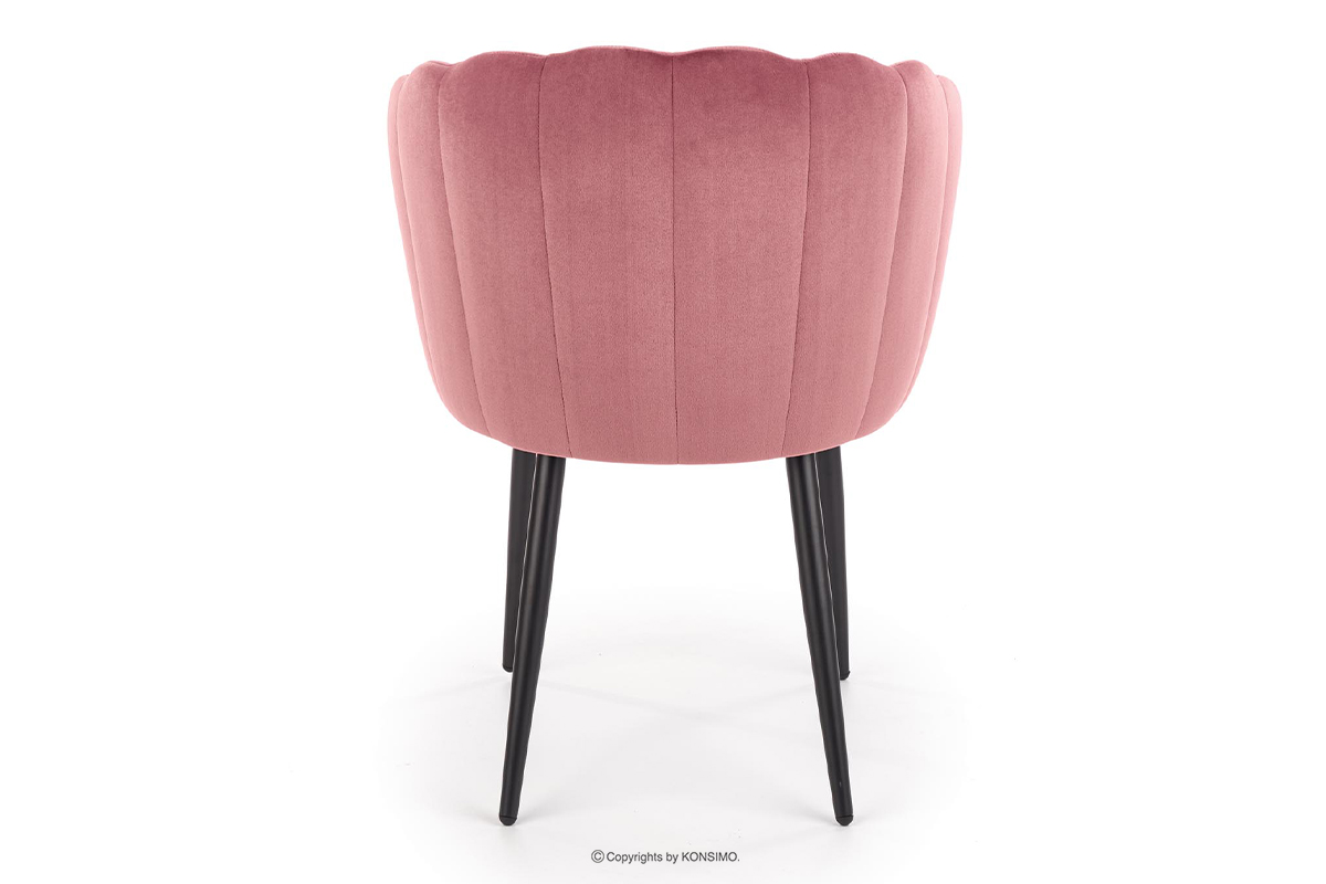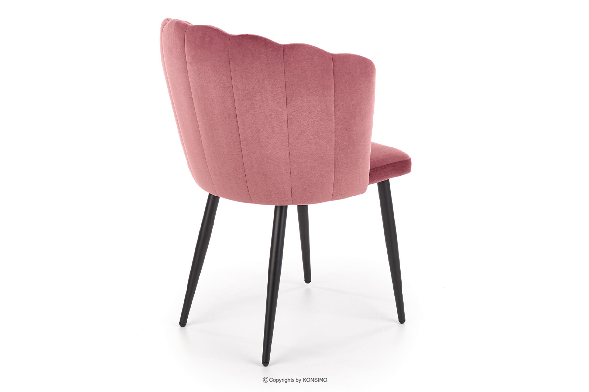 Ein einzigartiger Polsterstuhl mit einer originellen, muschelförmigen Form, der sofort ins Auge fällt. Die moderne Konstruktion auf einem schlanken, pulverbeschichteten Metallgestell garantiert sowohl Stabilität als auch ein leichtes, stilvolles Design. Der Veloursbezug ist äußerst angenehm anzufassen und leicht zu reinigen. Die sorgfältige Steppung unterstreicht nicht nur die einzigartige Form des Sitzes, sondern verleiht dem Möbelstück auch einen exklusiven Charakter.